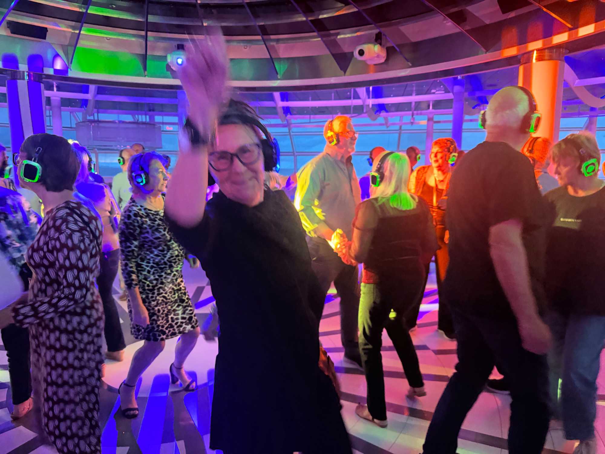 Après le repas, direction la discothèque silencieuse — un concept amusant où chacun porte un casque et choisit sa propre ambiance musicale. Sur la piste, certains dansaient sur de la pop, d’autres sur du rétro ou de l’électro, créant un spectacle aussi drôle que surprenant, sans un bruit… sauf les rires !