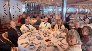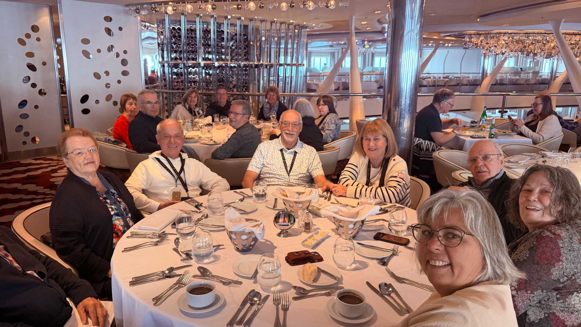 La merveilleuse équipe d’animation s’est surpassée pour transformer le centre en véritable aréna gonflable. Chacun a trouvé sa stratégie… ou a simplement laissé la magie du Drake décider du trajet de la pierre. Un moment léger, complice, parfait pour oublier un instant les vagues de 3 à 5 mètres qui nous bercent depuis ce matin.Encore une belle activité où l’esprit d’équipe et le plaisir étaient au rendez-vous! Un bravo particulier à Maurice et Hélène nos fières participants. Après une si belle activité, notre groupe s’est retrouvé pour un dîner rassembleur au Silhouette, un repas à la carte où chacun a pu savourer autant les plats que la compagnie.