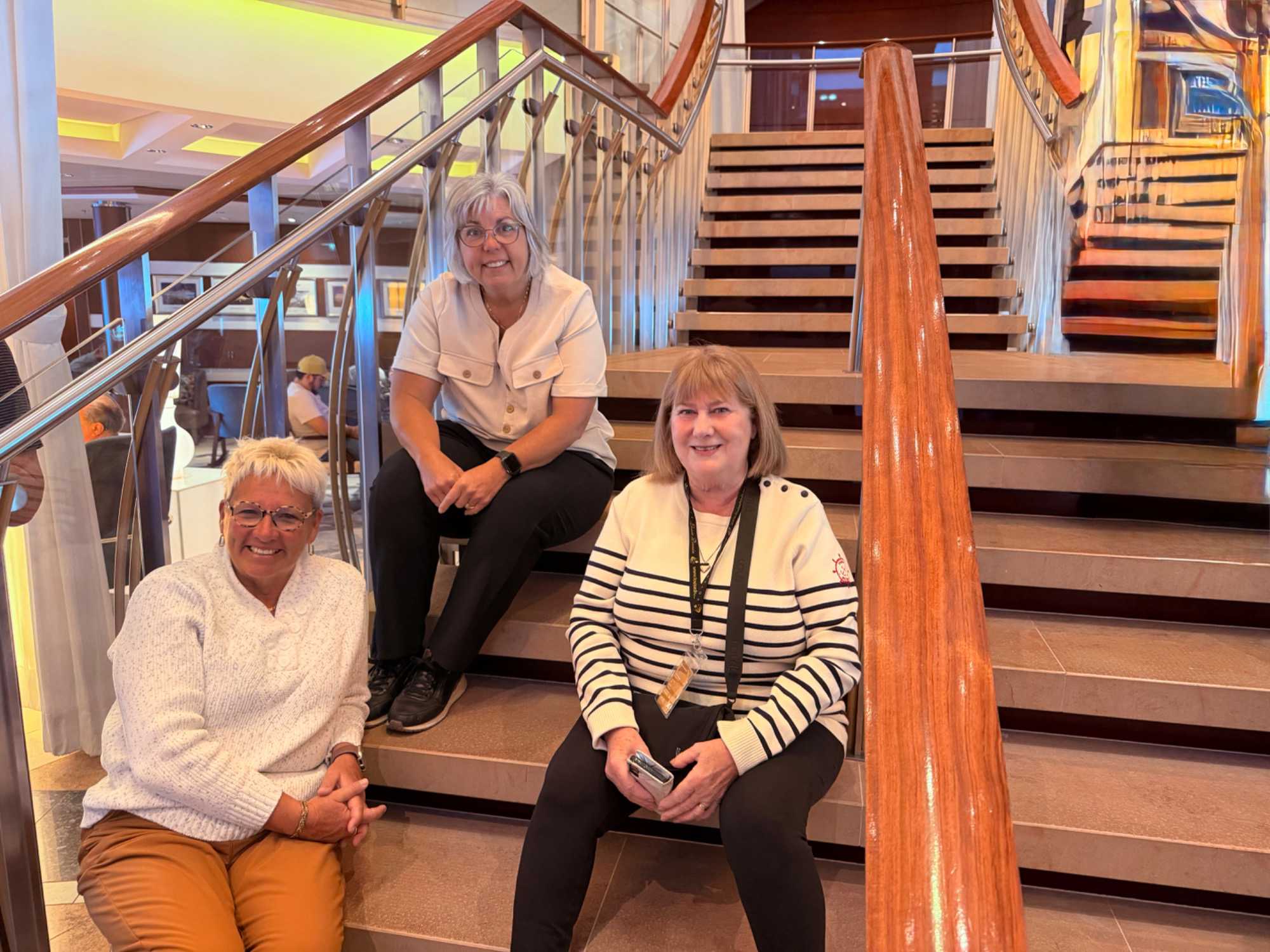 Les espaces communs se remplissent rapidement. Certains profitent du temps libre pour trier leurs photos, revoir leurs vidéos, échanger leurs impressions. D’autres se dirigent vers les ponts extérieurs pour prendre l’air, marcher un peu, observer l’horizon ou simplement savourer la transition. Le navire avance, régulier, et la vie à bord s’organise autour de ce mouvement continu.