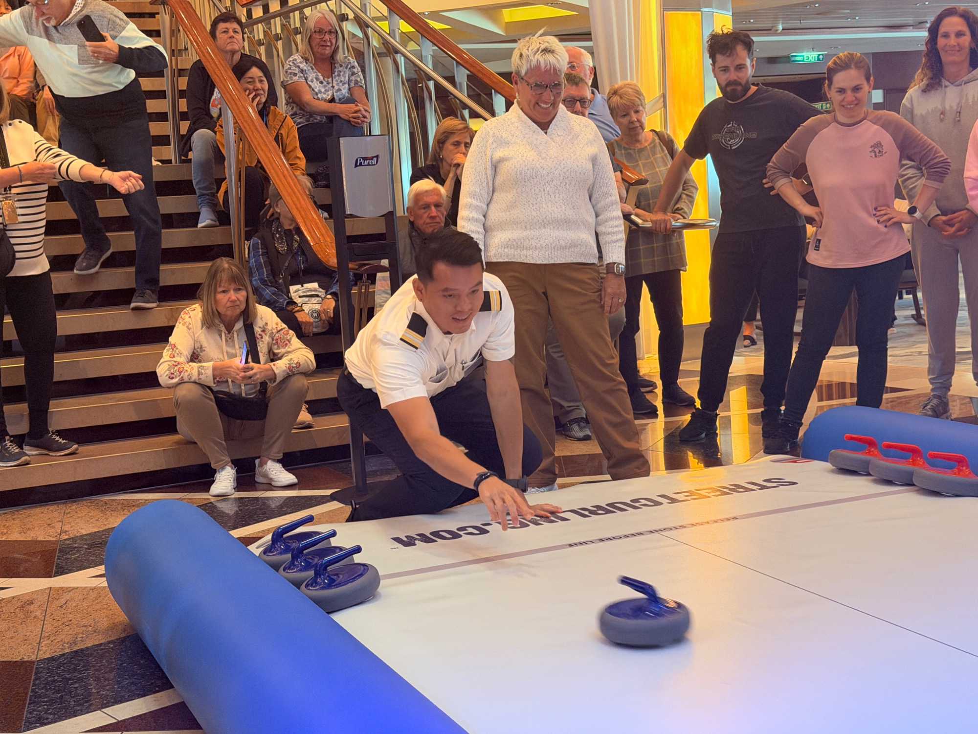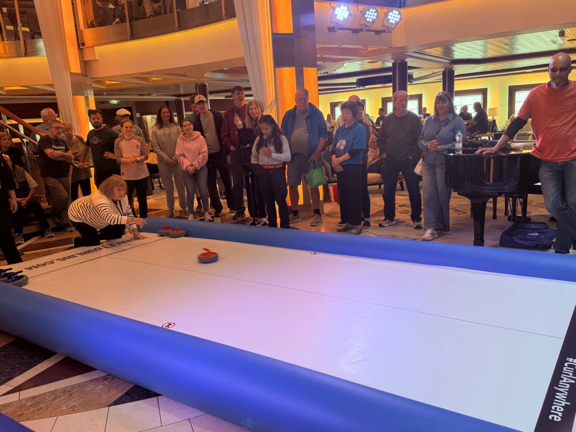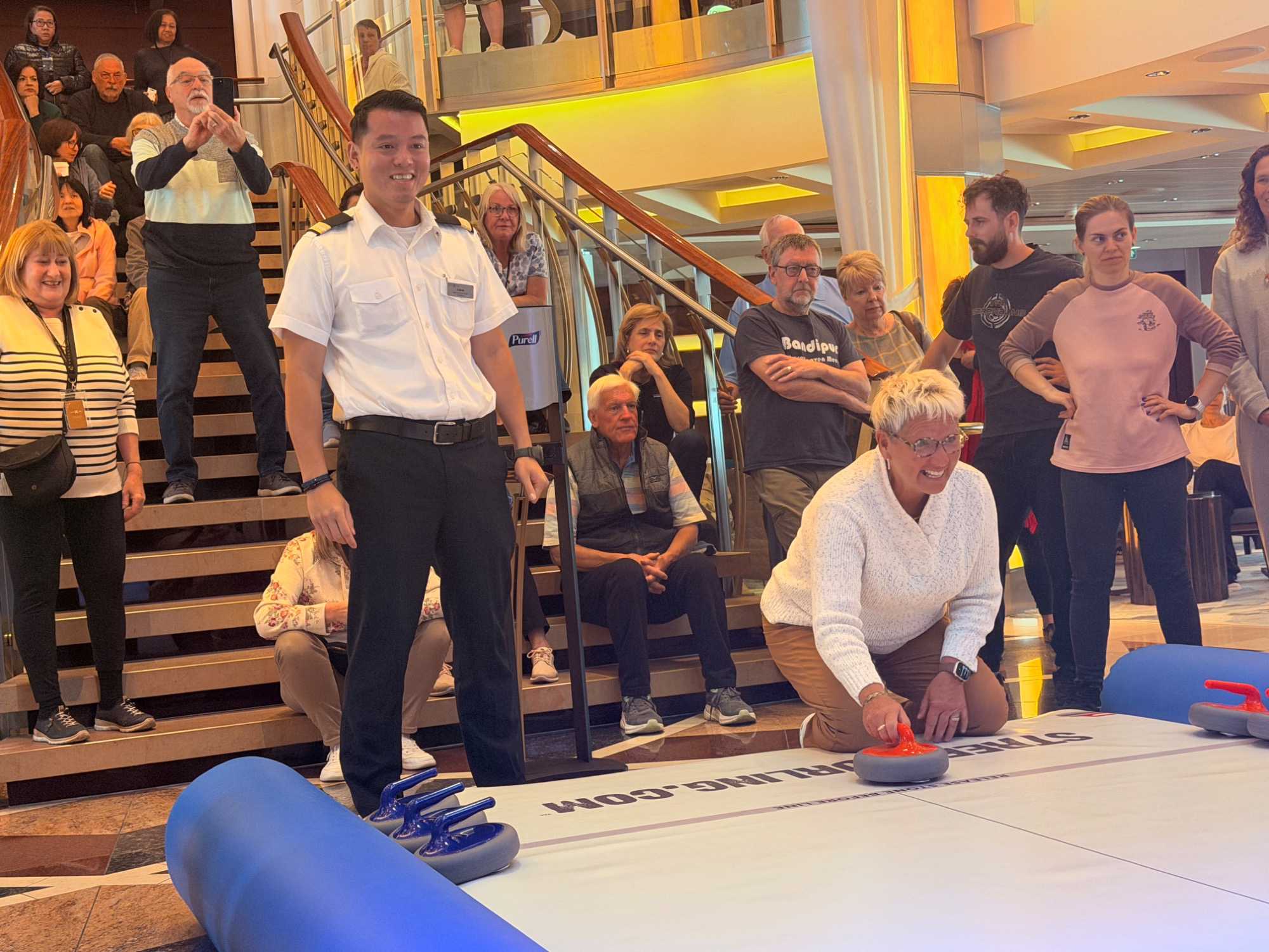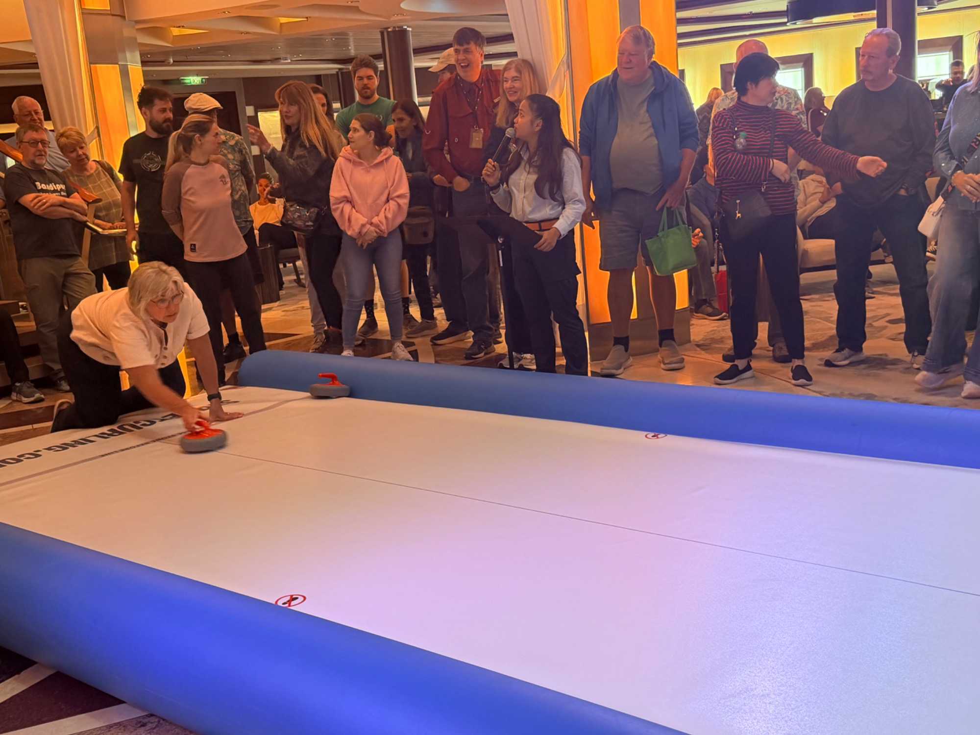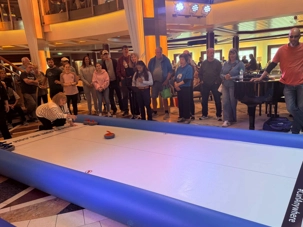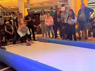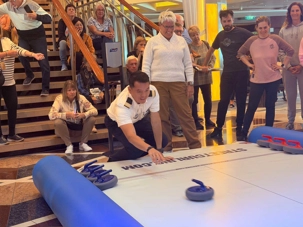 Fin de matinée, nous avons convié notre groupe à une partie de curling… version croisière!