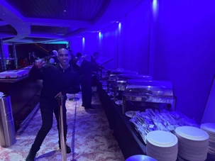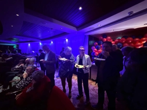 Au lieu des sièges habituels, les voyageurs ont découvert un immense buffet installé directement dans le théâtre, soigneusement présenté sous les projecteurs. L’effet était magique : une atmosphère de gala, mais version football party.