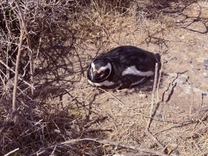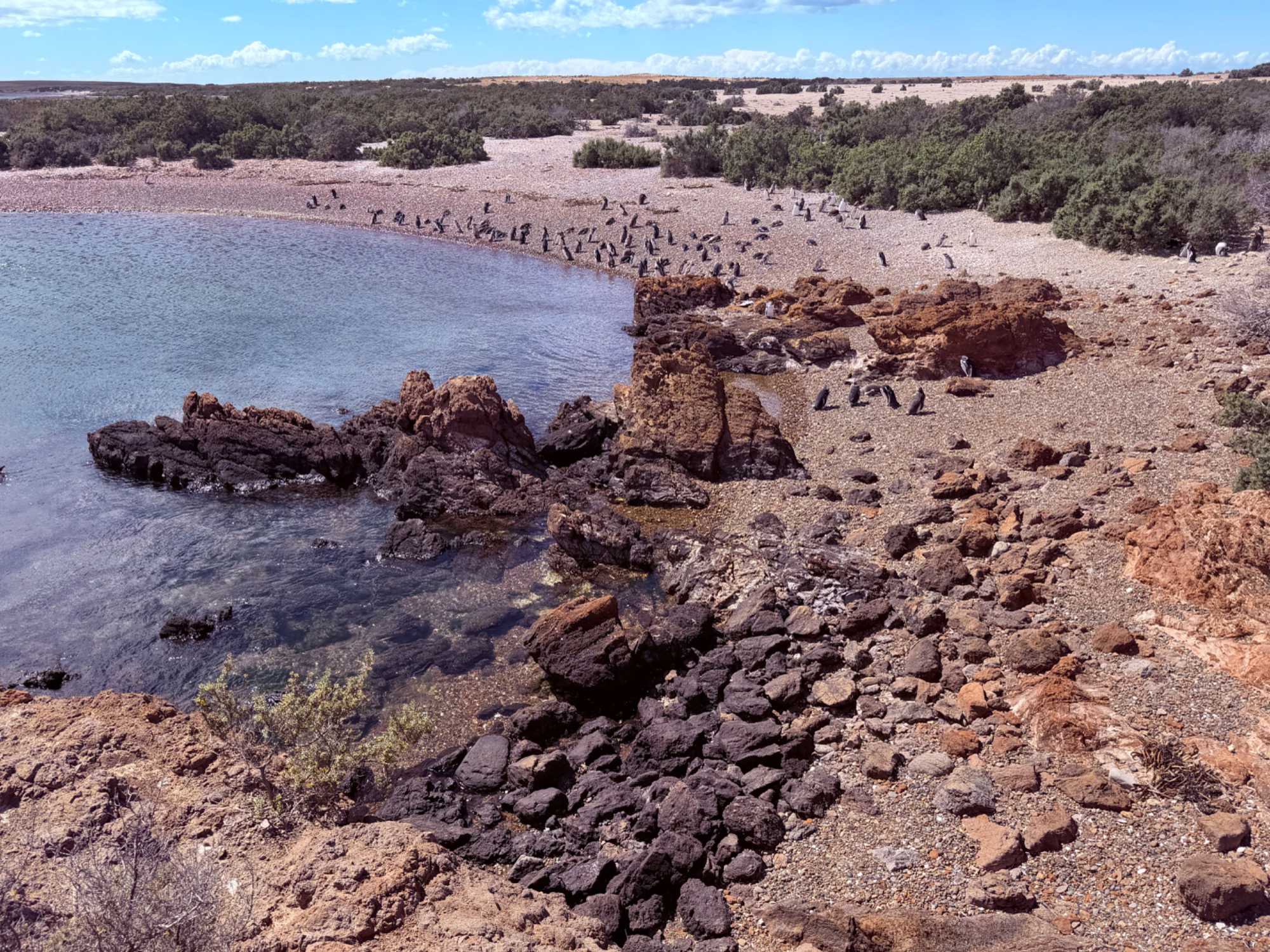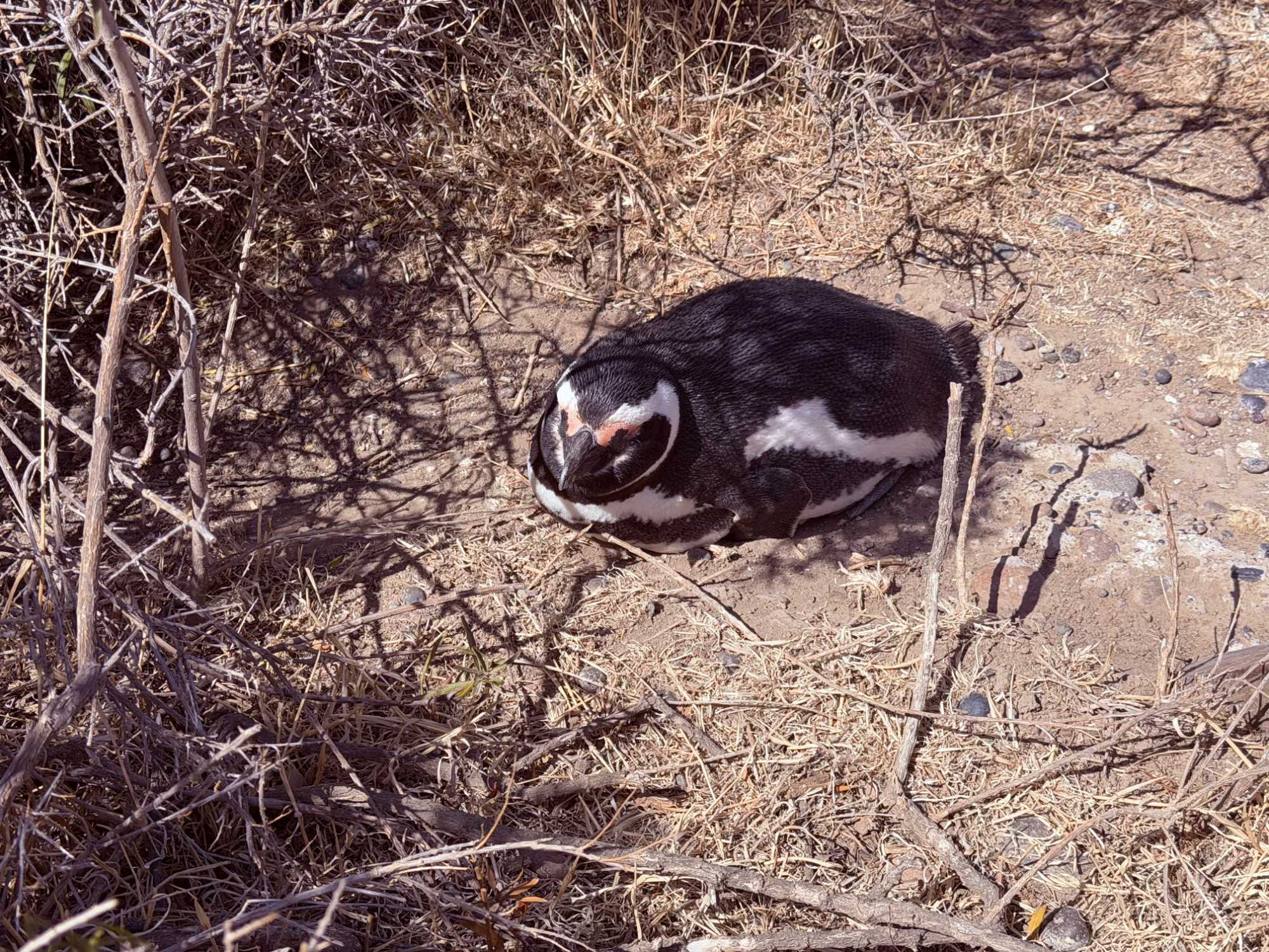 Puis apparaît Punta Tombo, un ruban de terre qui s’avance dans l’océan, battu par les vagues et habité par l’une des plus grandes colonies de manchots de Magellan au monde. Dès que vous descendez du véhicule, le spectacle commence. Les sentiers aménagés serpentent entre les nids, et les manchots Magellan vont et viennent avec leur démarche si caractéristique. Certains traversent le chemin devant vous, d’autres se reposent à l’ombre d’un buisson, d’autres encore reviennent de la mer, le plumage encore brillant d’eau salée.