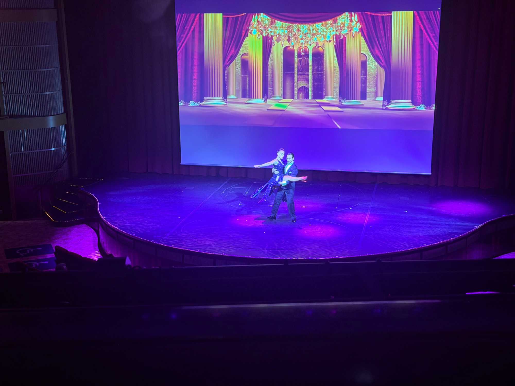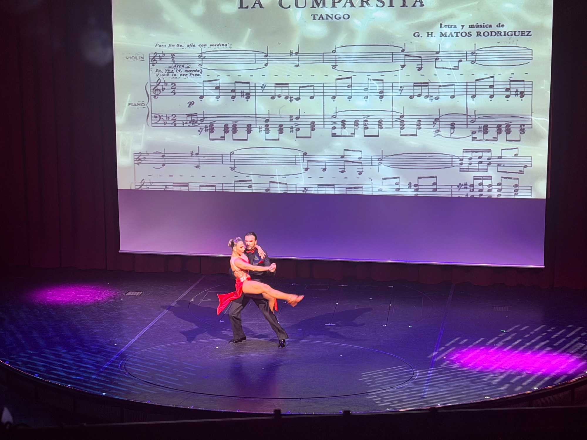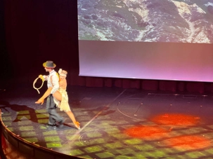 Puis vint le moment fort de la soirée : au théâtre Équinoxe, les rideaux se sont levés sur un hommage vibrant au tango. Sur scène, Ivana et Mauricio ont enchanté la salle avec un spectacle retraçant l’évolution du tango, du style inspiré de Valentino jusqu’aux interprétations modernes d’aujourd’hui. Leurs pas précis, leurs envolées passionnées et cette musique envoûtante ont balayé tout le public dans une émotion commune.