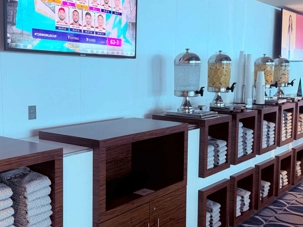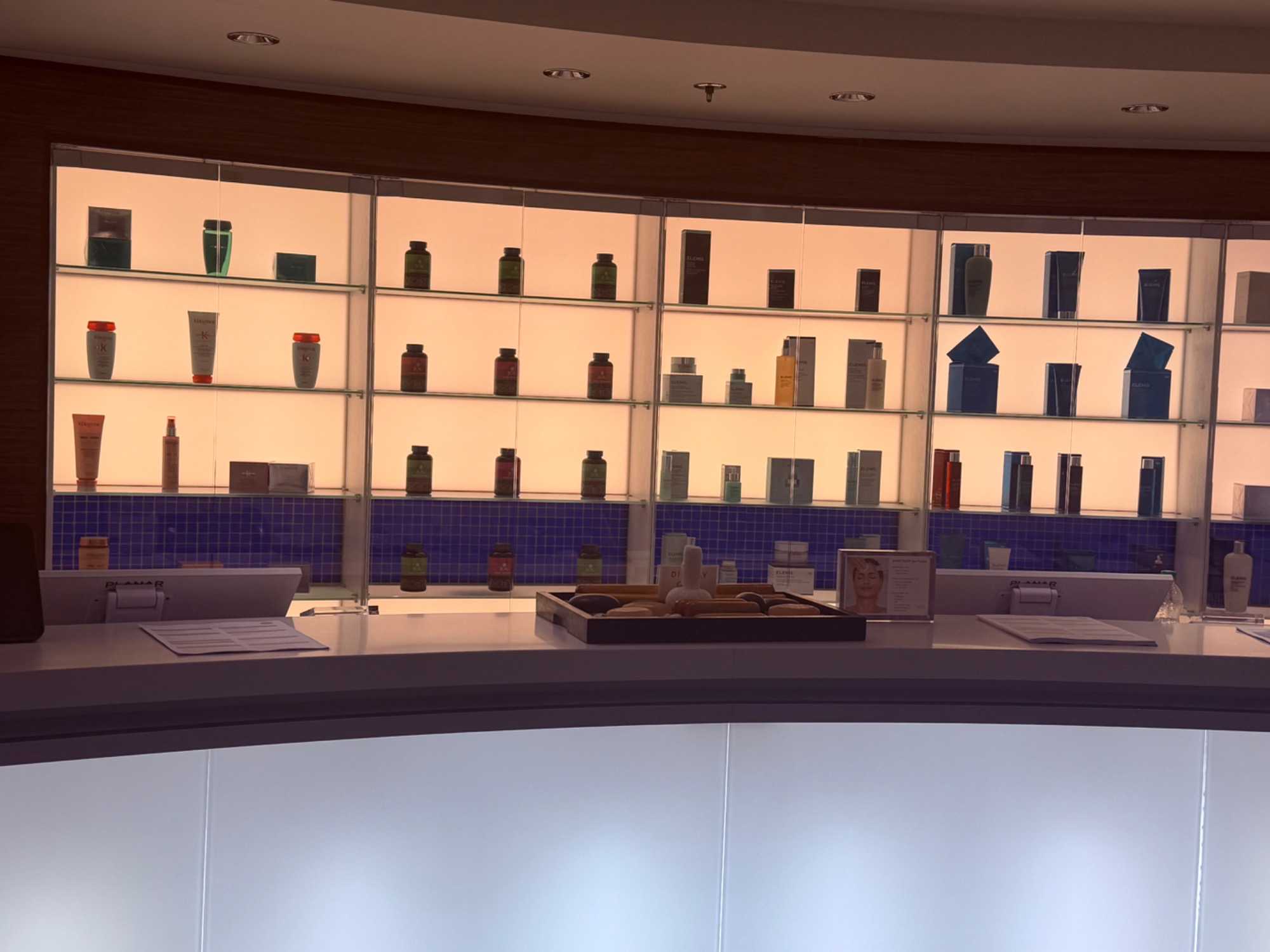 Plus loin, le spa nous enveloppe d’un parfum d’eucalyptus et de pierre chaude. Les salles de soins, les espaces de relaxation, les cabines de vapeur… tout invite au lâcher‑prise. À côté, la salle de sport offre une vue panoramique sur la mer, donnant l’impression de courir au-dessus des vagues.