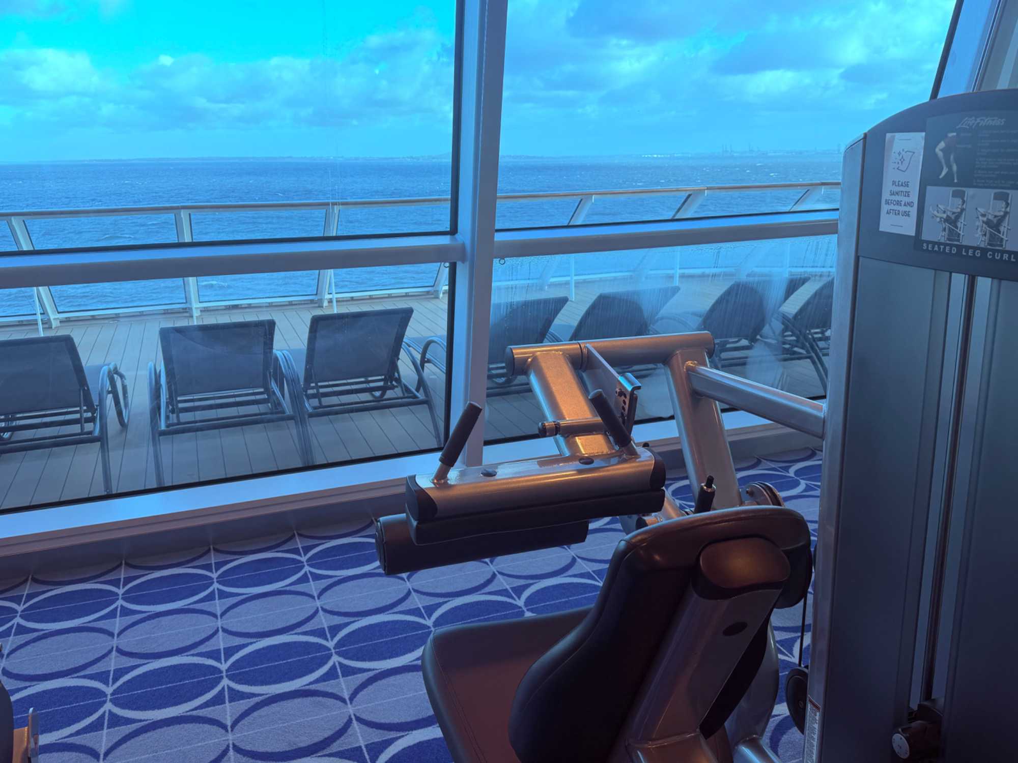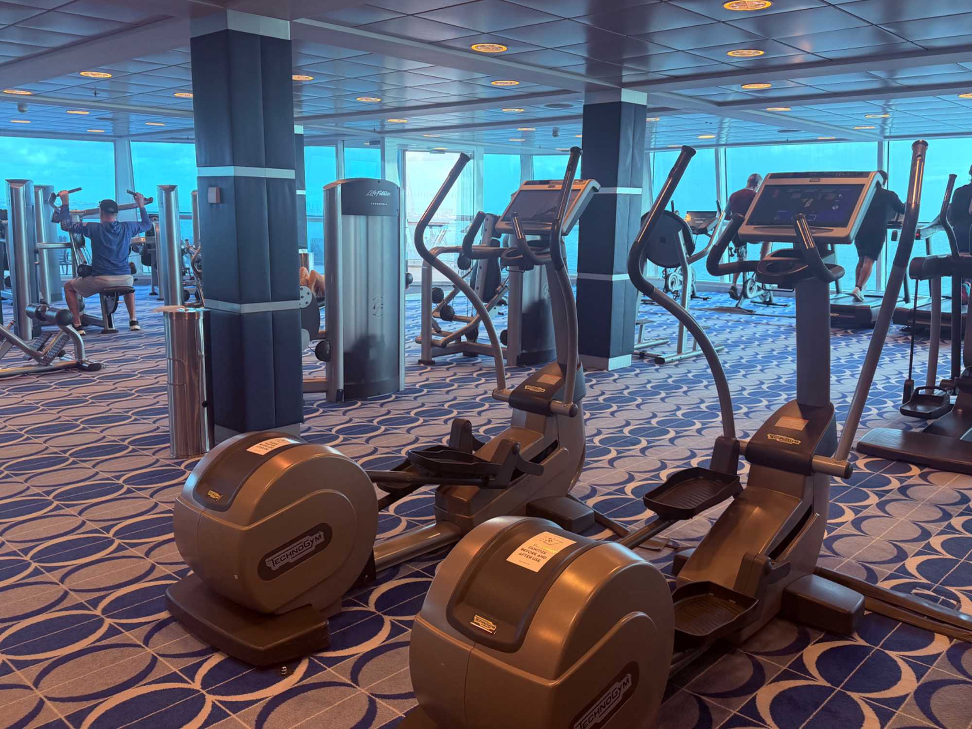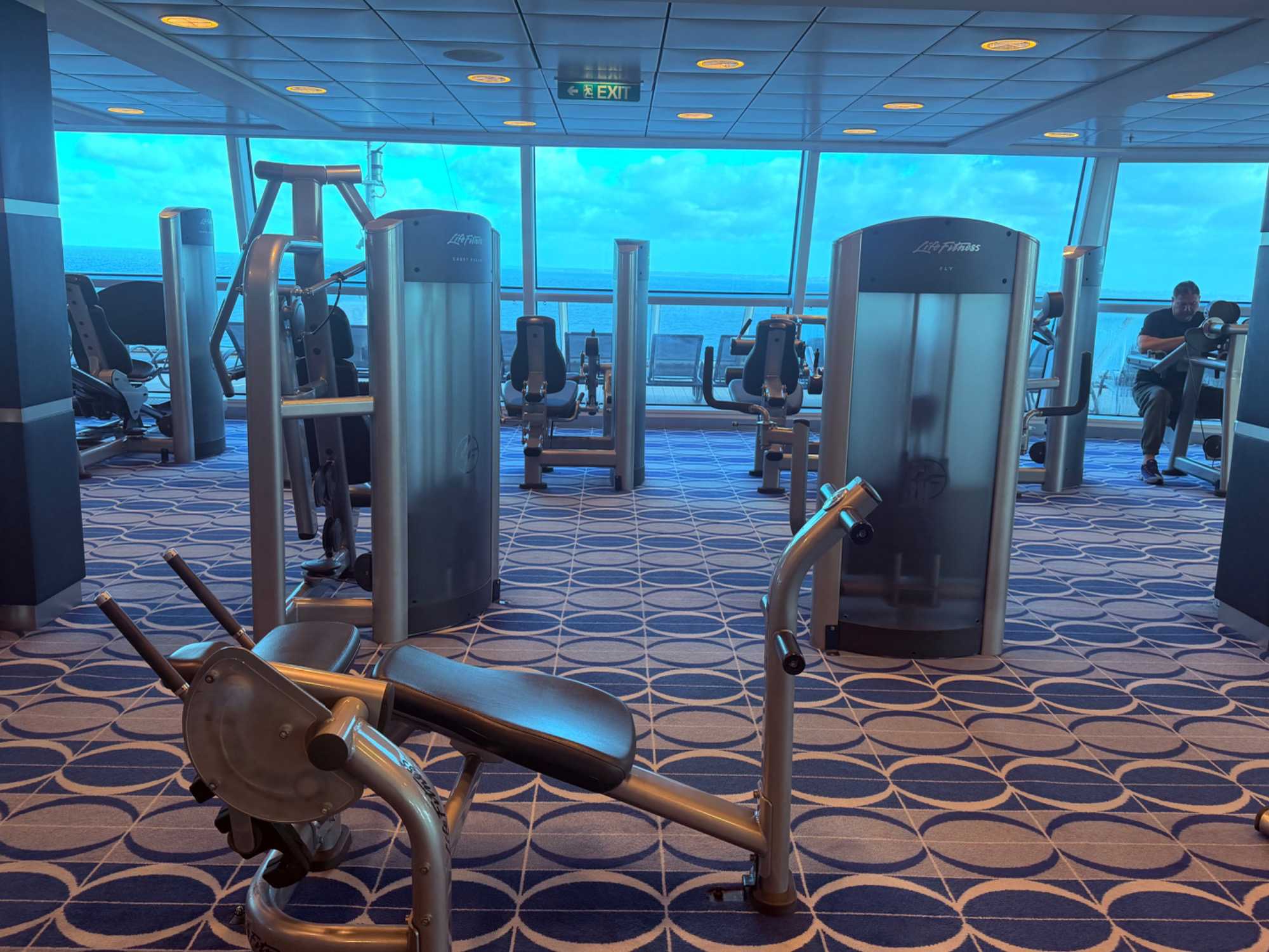 À bord du Celebrity Equinox, l’activité sportive se vit surtout dans les espaces lumineux du centre de remise en forme. Dès que l’on entre, on est frappé par la vue panoramique sur la mer : courir sur un tapis ou pédaler face à l’océan donne l’impression de flotter au‑dessus des vagues. Les machines modernes, les appareils de musculation et les zones dédiées au cardio créent un environnement dynamique où chacun peut s’entraîner à son rythme.