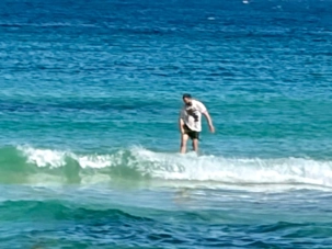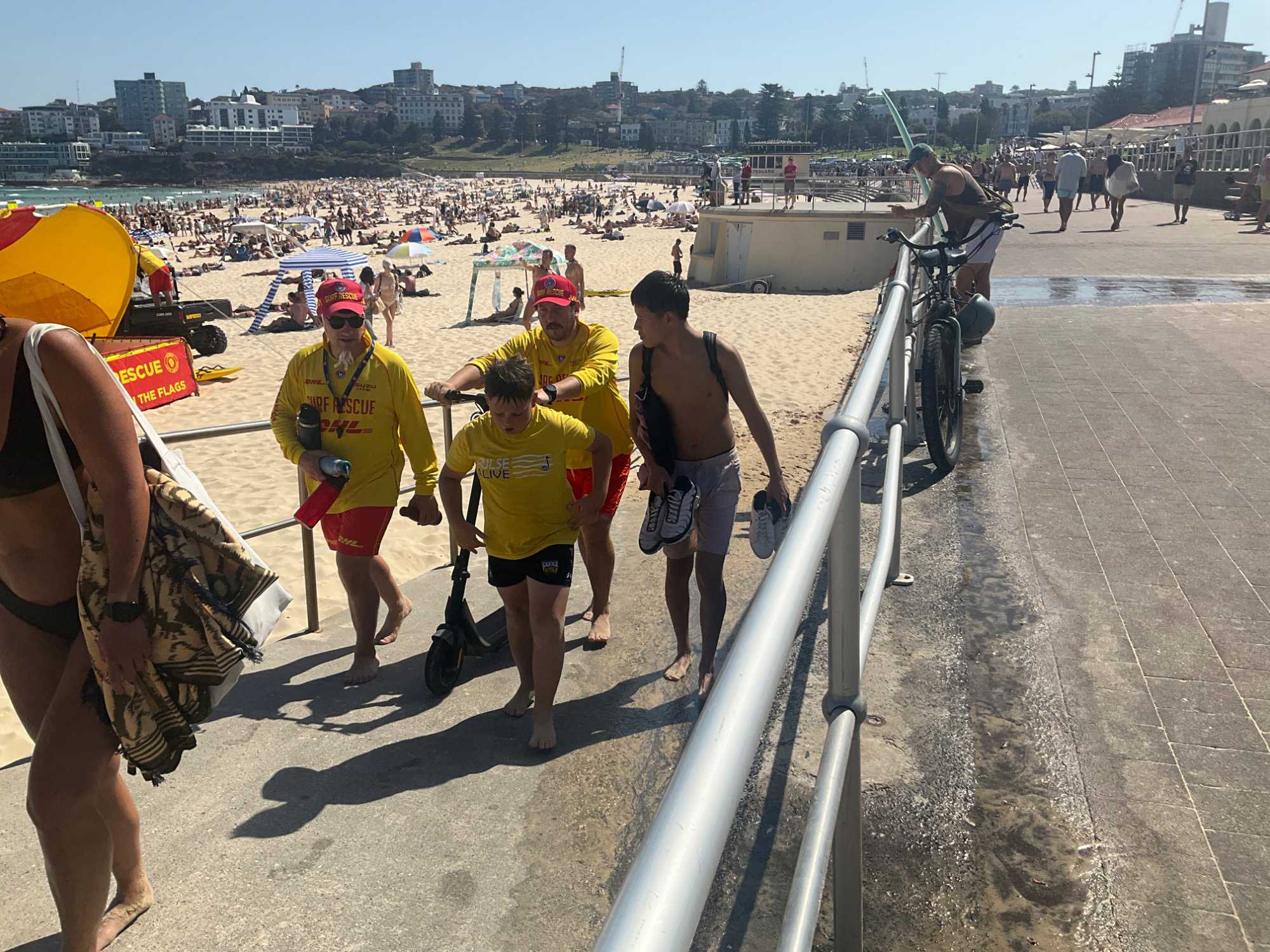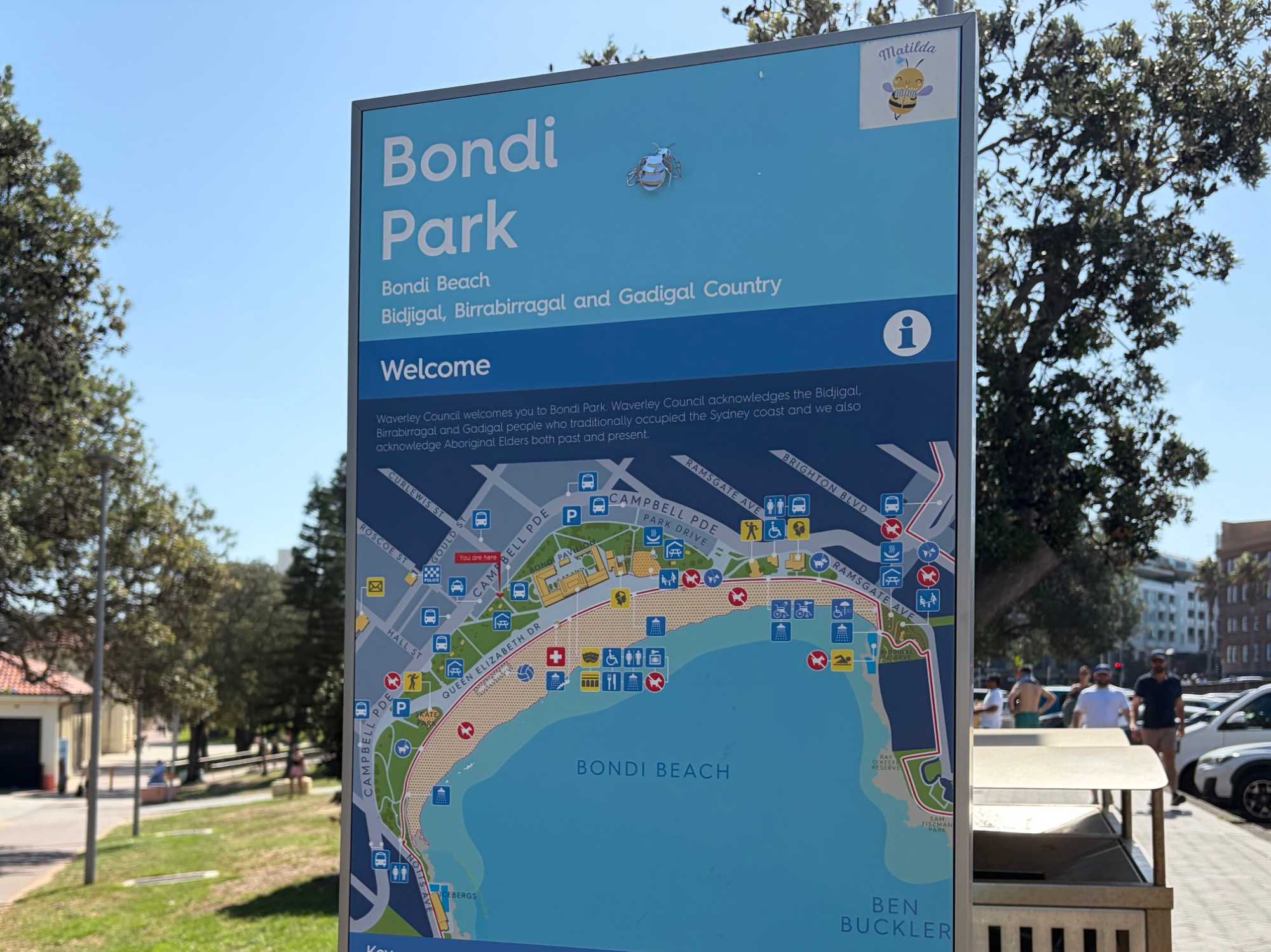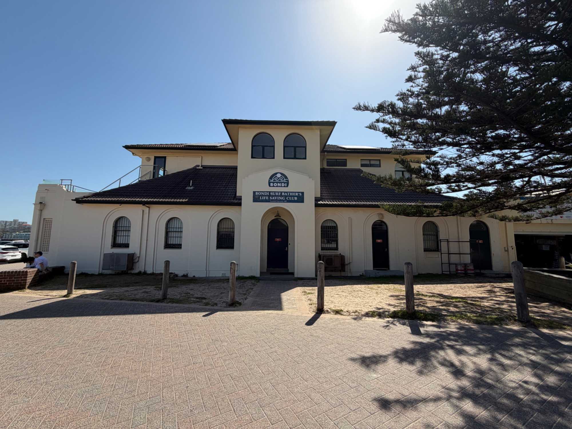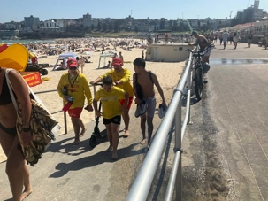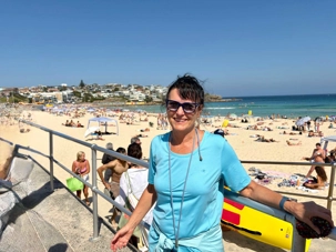 Piuis direction vers ce qui fait la renommée de la ville Bondi Beach. Je vous rappelle qu’ici nous sommes samedi. On a l’impression que tous les habitants de la villes s’y sont donnés rendez-vous, une immense plage bondée de jeunes en maillot dont les parties couvertes du corps …sont moins nombreuses que celles exposées hihi! Que de belles silhouettes un peu partout avec toute cette jeunesse mais nous, on n’a plus 20 ans, plutôt trois fois qu’une. Mais attention, toutes les générations sont ici bien présentes pour profiter des chauds rayons de l’été. L’endroit fait la joie des surfeurs à certains postes spécifiques. Bondie a également fait parler d’elle en Amérique pas plus tard qu’en janvier dernier avec l’attentat terroriste qu’elle a subi faisant 16 morts et de nombreux blessés. Nous nous en sommes souvenues lors de notre passage sur le petit pont. Quel bel endroit pour profiter de la mer même si parfois les requins s’y aventurent. Heureusement, les premiers sauveteurs en mer datent ici de 1903 et on les voient bien présents avec les drapeaux qu’ils positionnent pour délimiter les espaces de baignade.