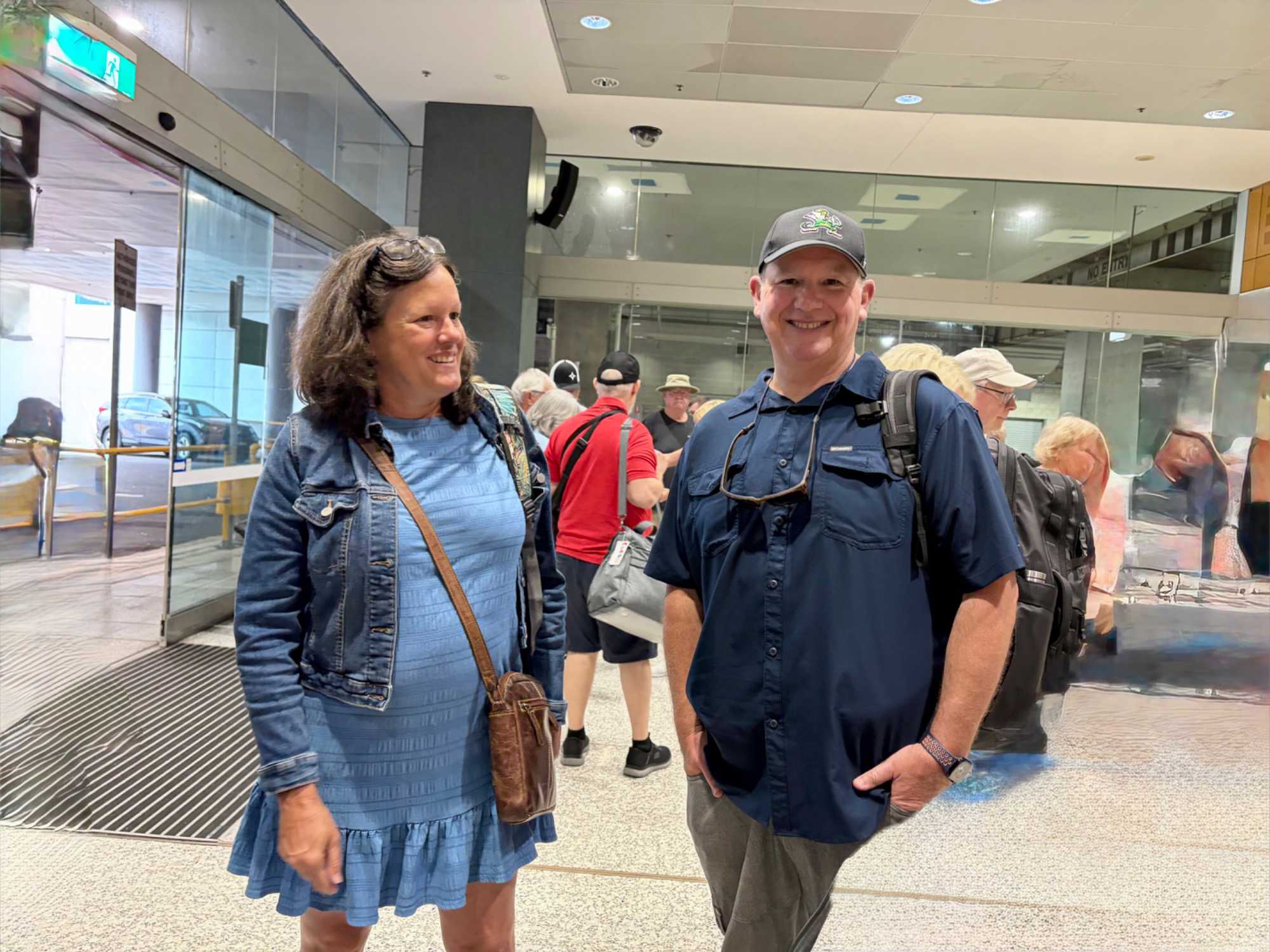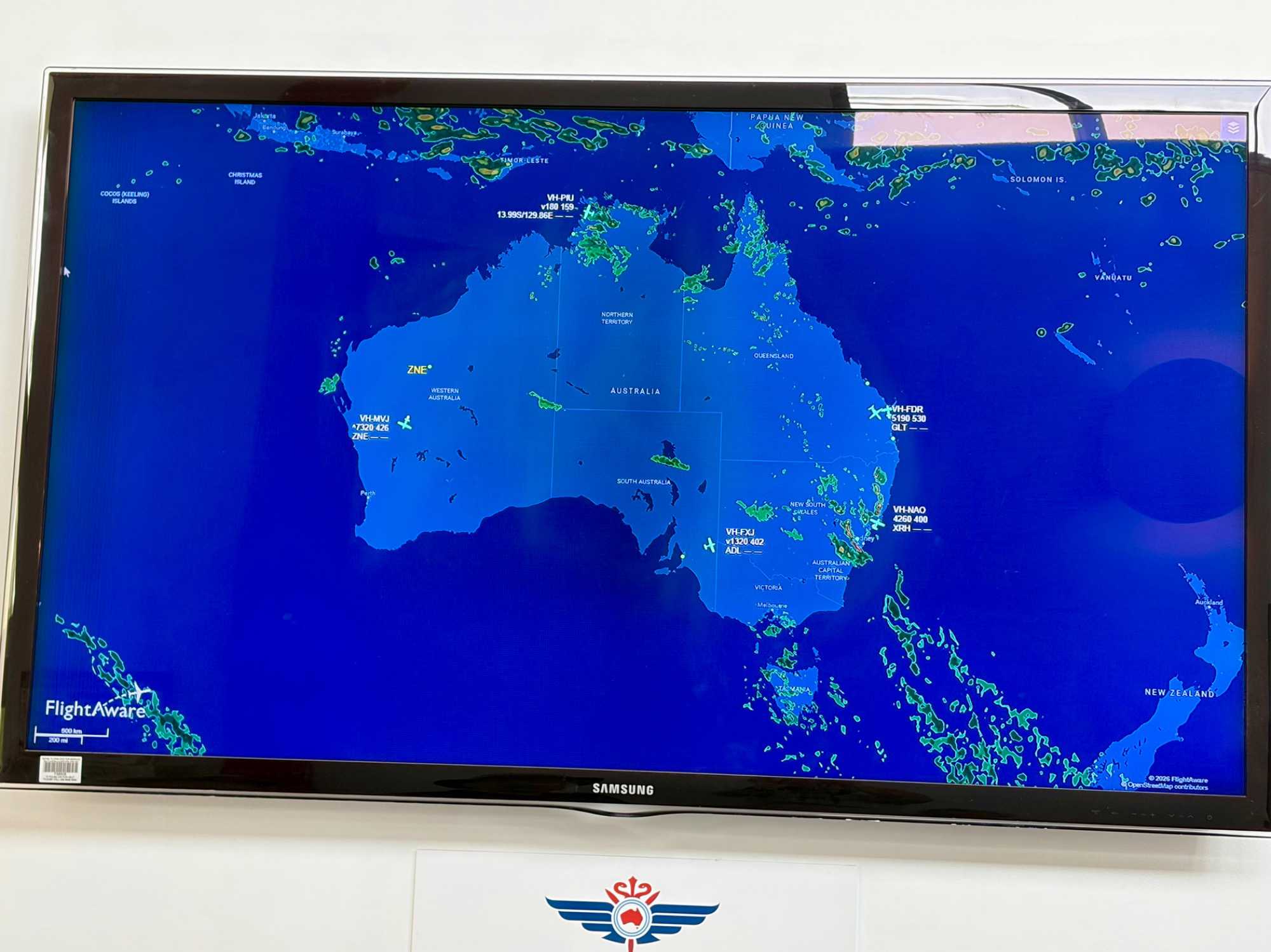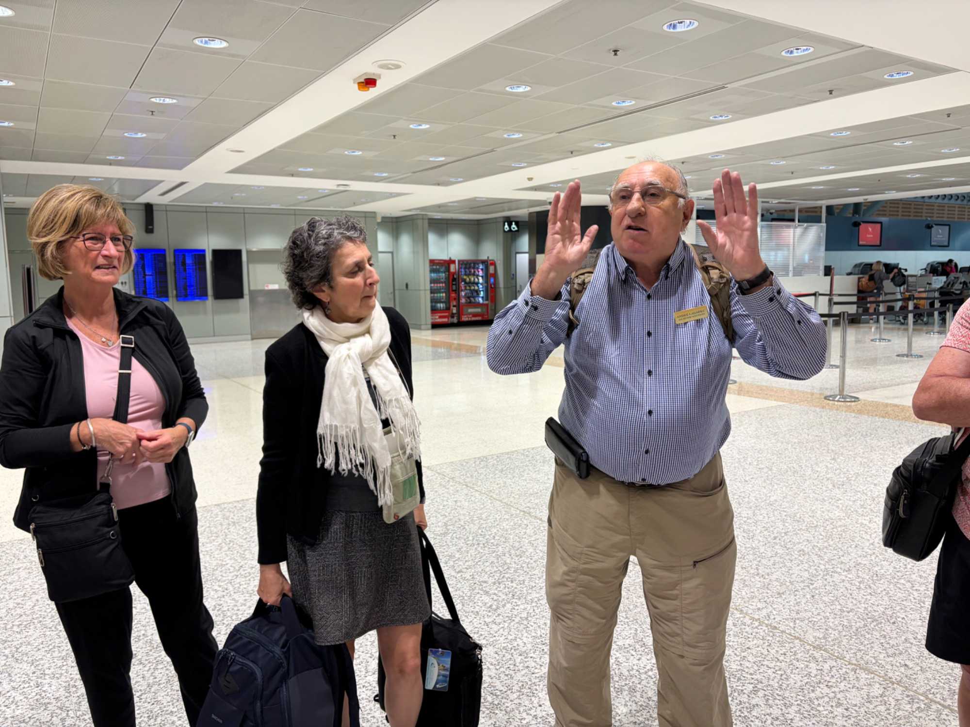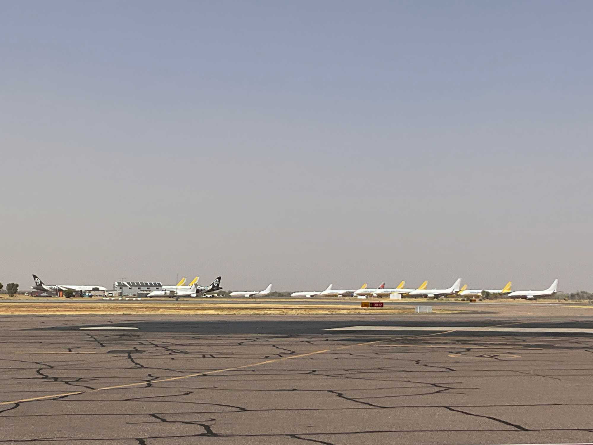 La journée commence par un bon petit ‘’gros’’ déjeuner à notre hôtel Pullman de Sydney. Quelle bonne idée d’avoir choisi un hébergement tout près de l’aéroport ce qui nous permet de relaxer un peu plus, enfin peut-être pas beaucoup plus car nous avons rendez-vous dès 7:15, on s’ennuyait de prendre l’avion hihi. On a rencontré notre nouveau guide, André qui nous accompagne pour 9 jours. Il nous amène donc à l’aéroport en 10 minutes. Aujourd’hui pour faire changement, on volera avec Qantas…la compagnie d’aviation (Queenslandand Northern and Territory Aerial services). L’avion mets deux heures et demi pour se rendre à destination. Lorsque les nuages se dispersent, on voie d’abord les terres divisées en rectangles puis, apparaît les terres rouges. Vous ai-je dit que nous allions dans la région appelée…le Centre Rouge? En fait c’est un désert rouge car il n’y a pratiquement pas d’habitations sur plus de 1000 kilomètres. Avant d’arriver à Alice Springs, du haut du ciel on a vu des dômes étranges concentrés sur un espace de terrain. Qu’est-ce que ça pouvait bien être. Dès ses premiers commentaires sur cette région de l’Australie, et spécifiquement sur les dômes, on voie que notre André a de l’expérience derrière la cravate. On l’aime déjà. Il nous explique que ces grandes sphères blanches protègent des satellites utilisées pour des activités de surveillance et de renseignements menées conjointement par l’Australie et les États-Unis car, loin des côtes on évite toute interception des signaux par des puissances étrangères. Chut, ne le dites à personne, on est tous dans le secret des dieux. On a l’impression d’être dans un film d’espionnage.