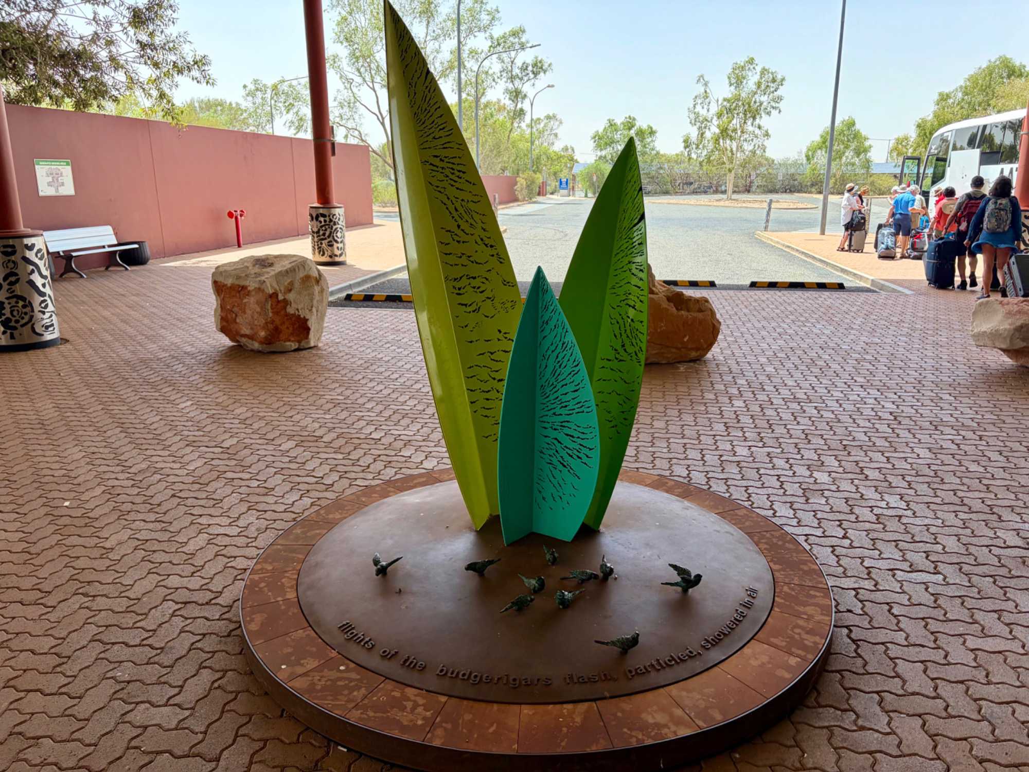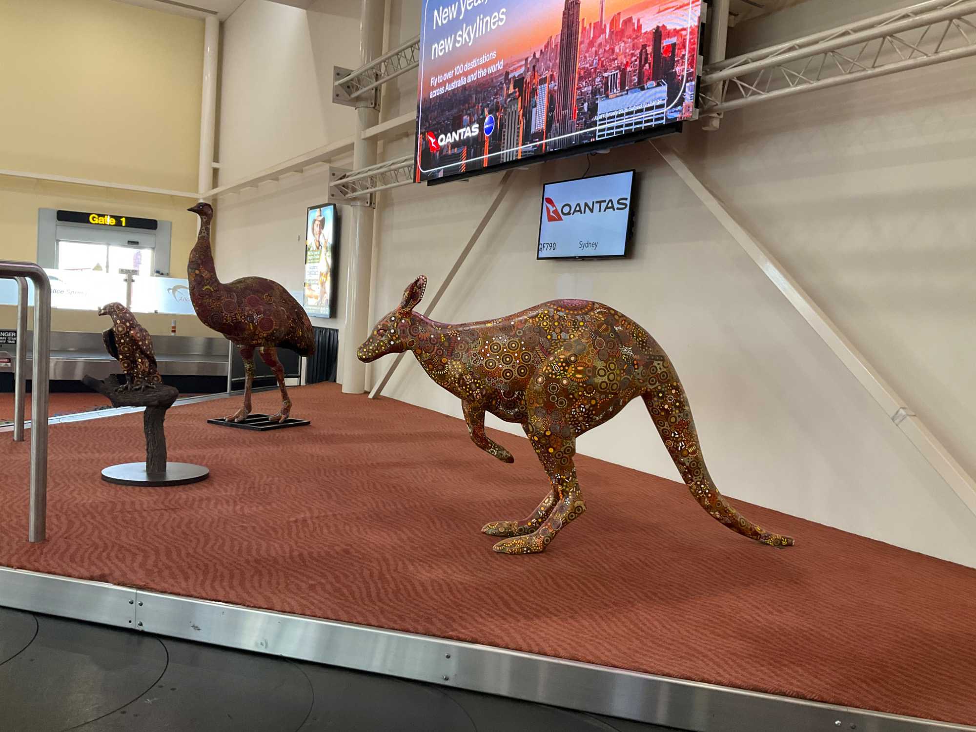 D’ailleurs on le remarque dès le petit aéroport puisque même les poubelles portent des dessins d’artistes aborigènes, des toiles aussi.