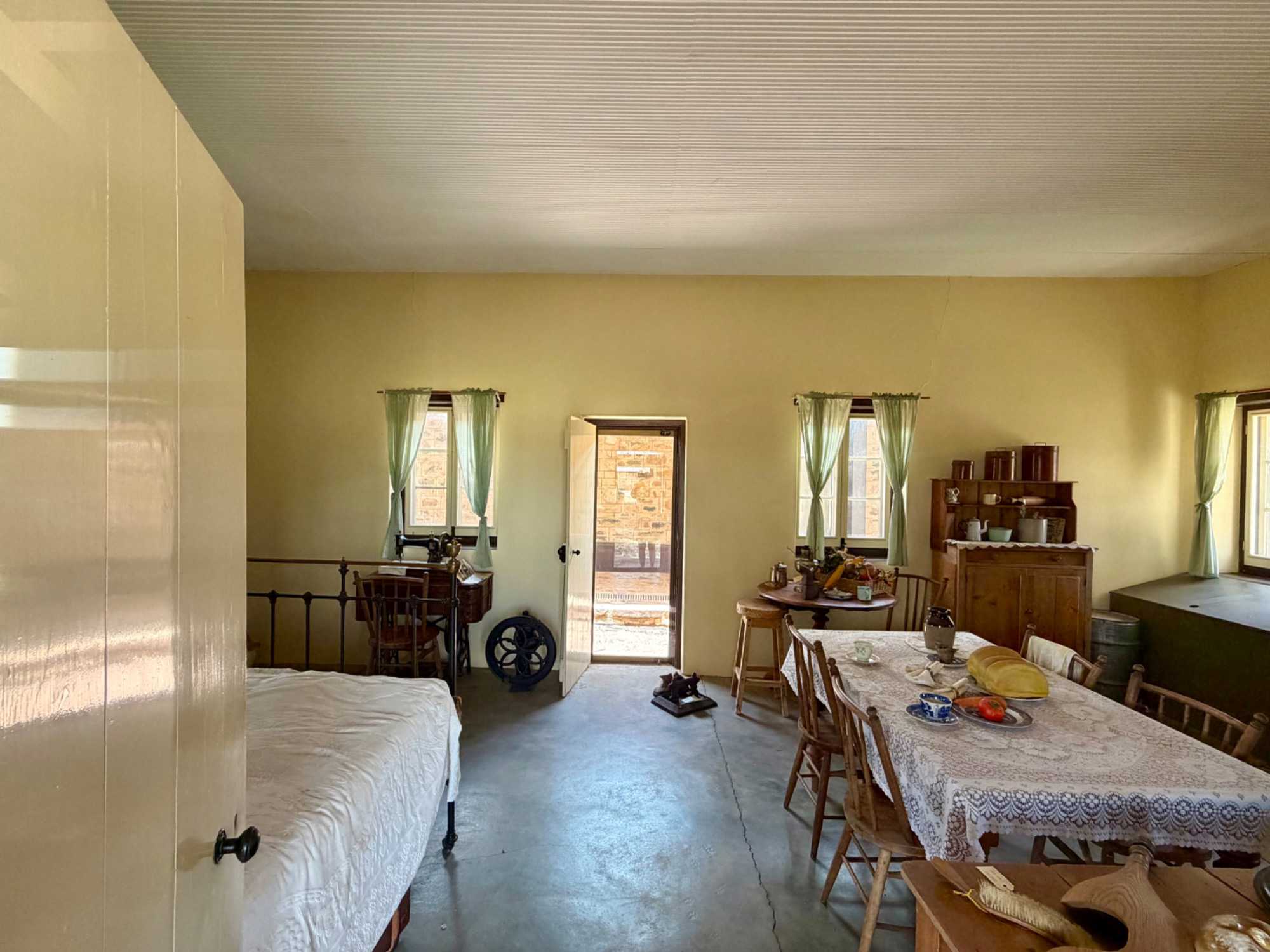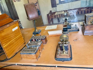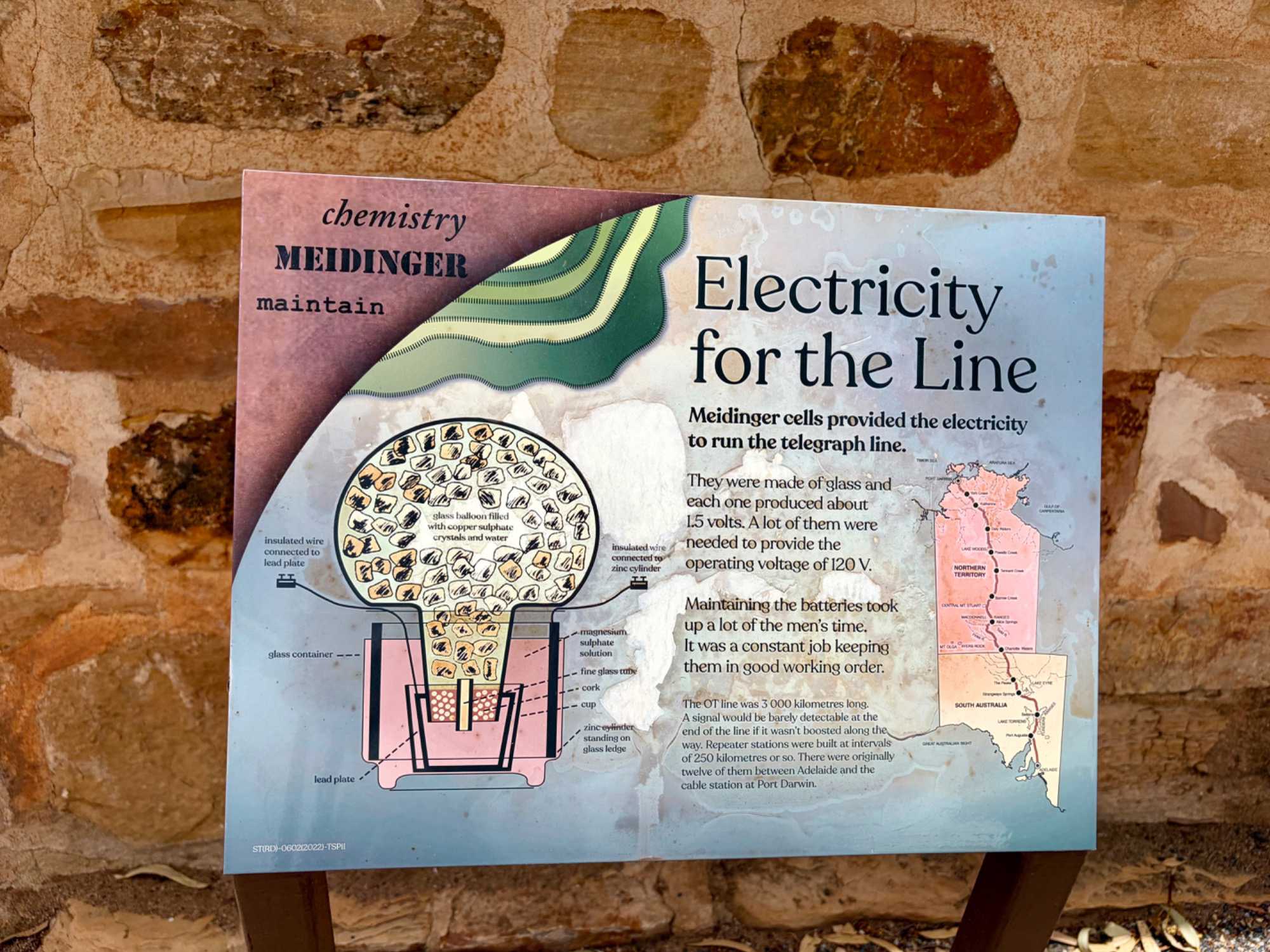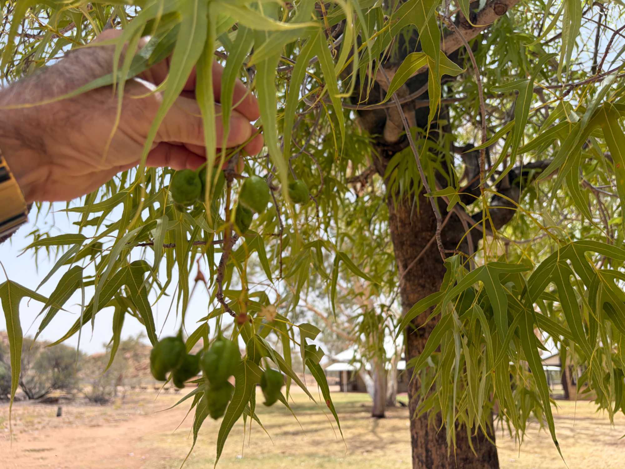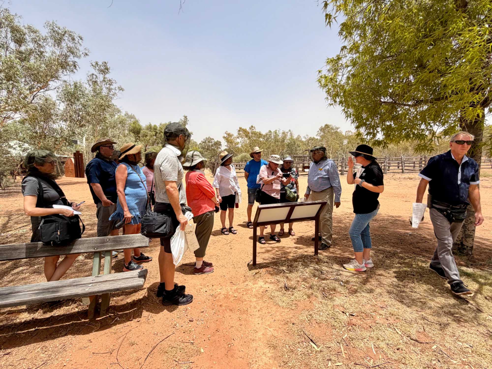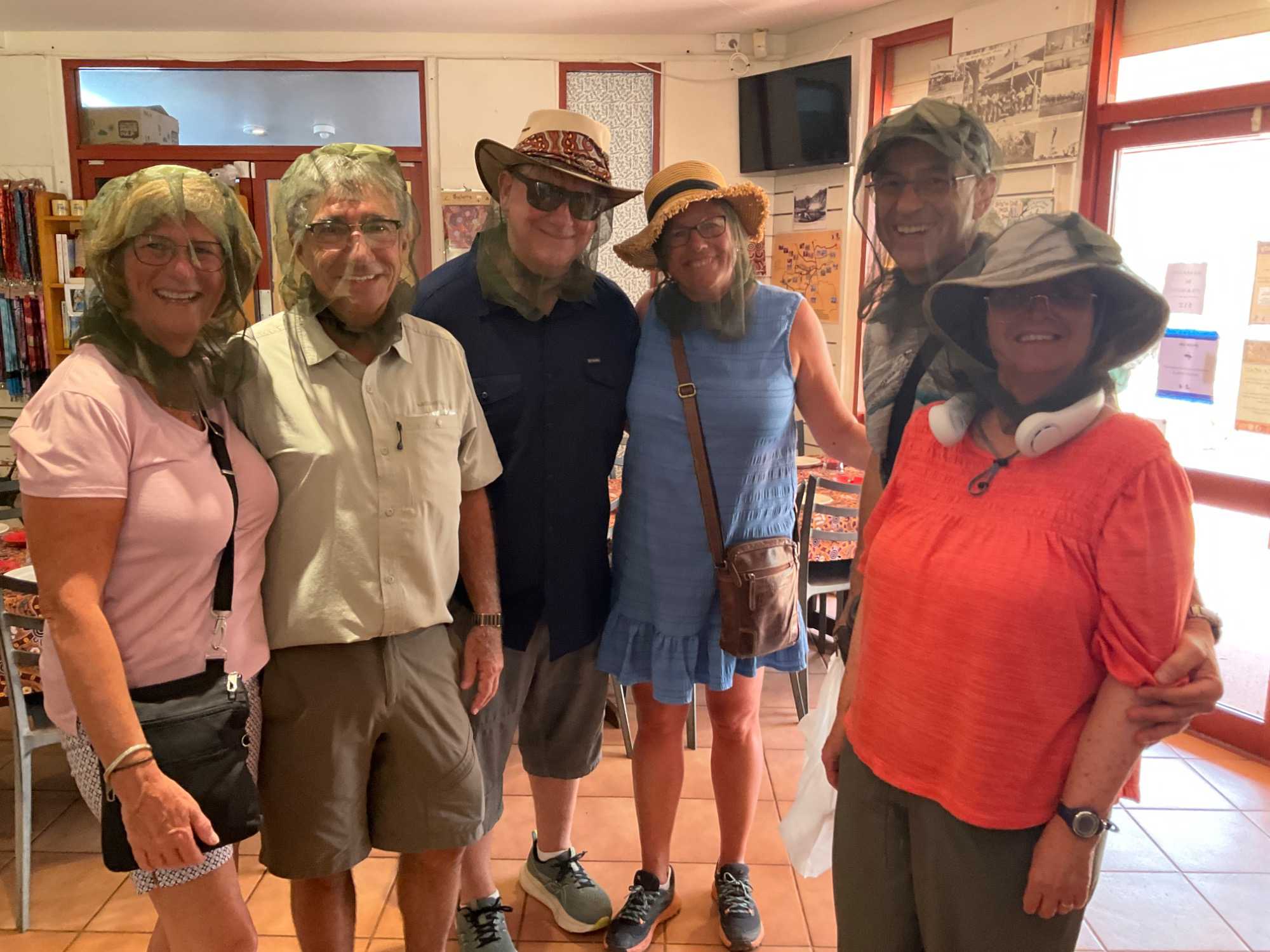 Nous nous sommes rendus voir le résultat des travaux de Todd c’est-à dire : la vieille station de télégraphe qui est devenue un petit musée prenant place dans l'ancienne station du télégraphe qui fut construite avec des pierres de la région. Les plus ‘’techniques’’ d’entre-nous, eurent la chance de démystifier les diverses difficultés de la pose de la ligne télégraphique dans les zones arides des lieux dans les années 1870. Imaginez; pas d’ordinateur pour tout calculer, quel génie on avait quand même en ce 19e s. Les différentes sections des bâtiments nous font revivre la vie sur ces lieux au milieu du 19e siècle: école, poste, chambre, cuisine et bien sûr la station elle-même de télégraphe, la seule dont ils en on fait un musée sur une vingtaine à travers l’Australie. Ici, tout à été redécoré de cette époque. Les immenses arbres d’eucalyptus nous ont également captivés. On reconnait bien l’odeur au simple toucher de ses feuilles. André nous apprend que seulement en Australie, il existe entre 700 et 800 espèces d’eucalyptus, pas mal non?