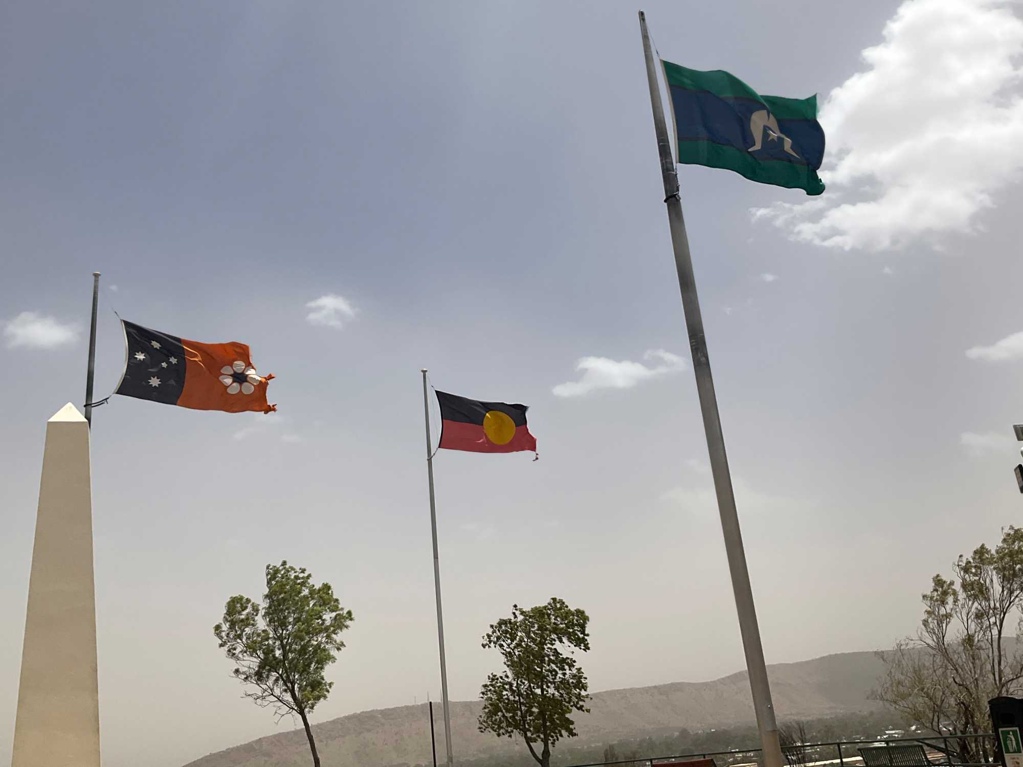 Après un petit lunch simple et santé, on se dirige au petit belvédère de la place où un monument a été érigé en l’honneur des soldats ayant combattu particulièrement à la Première guerre mondiale mais à diverses autres également. Cet endroit est appelé ANZAC pour Australian and New Zealand Army Corps. Les drapeaux australiens et aborigène flottent fièrement au vent. On y entrevoie la ville à la géographie plane avec quelques montagnes en fond de paysage.