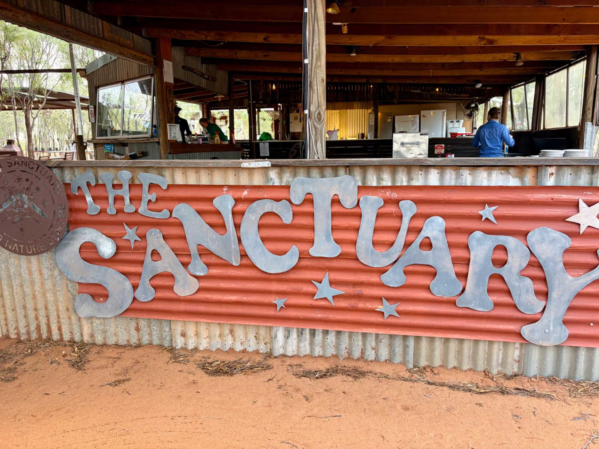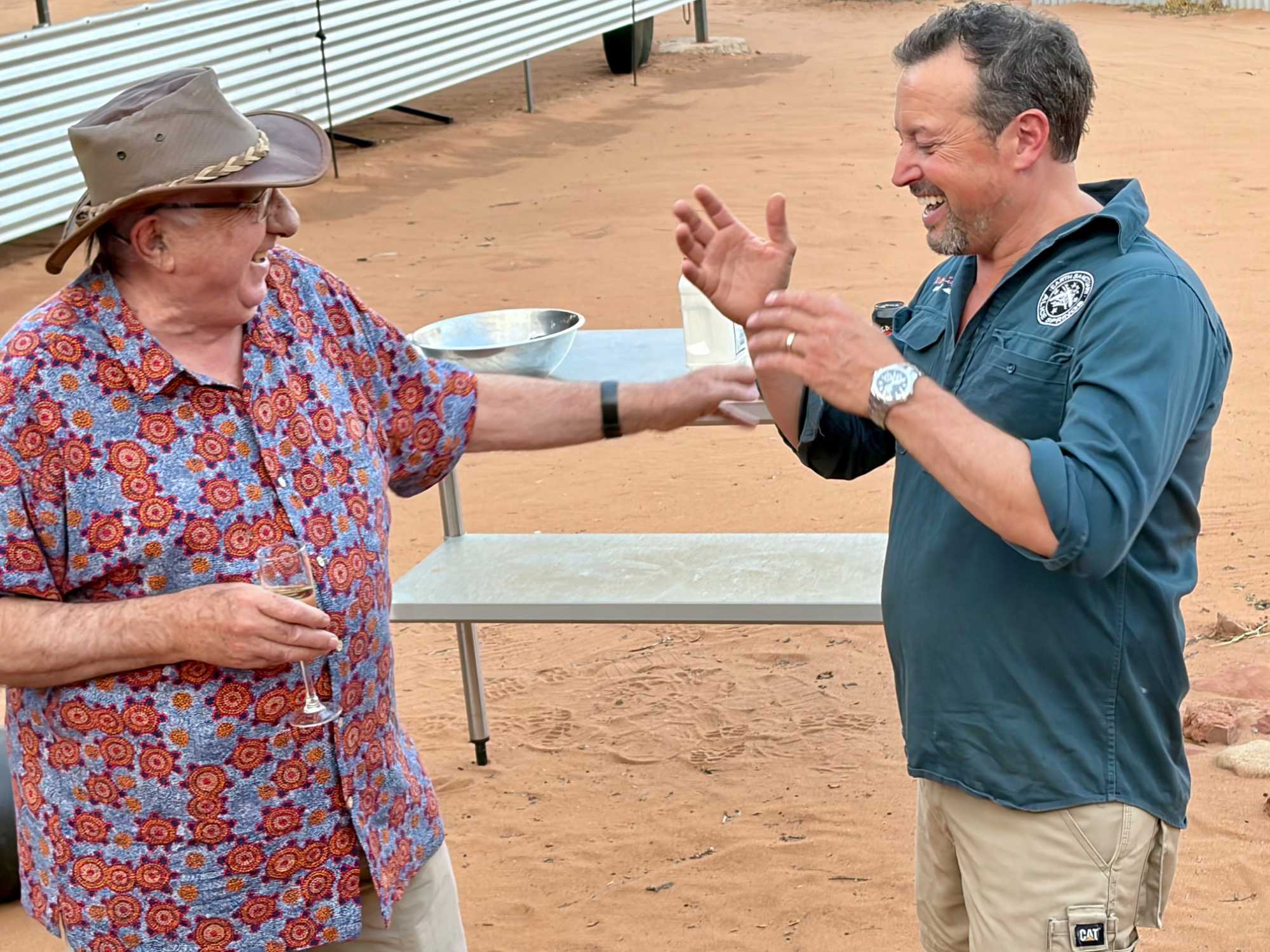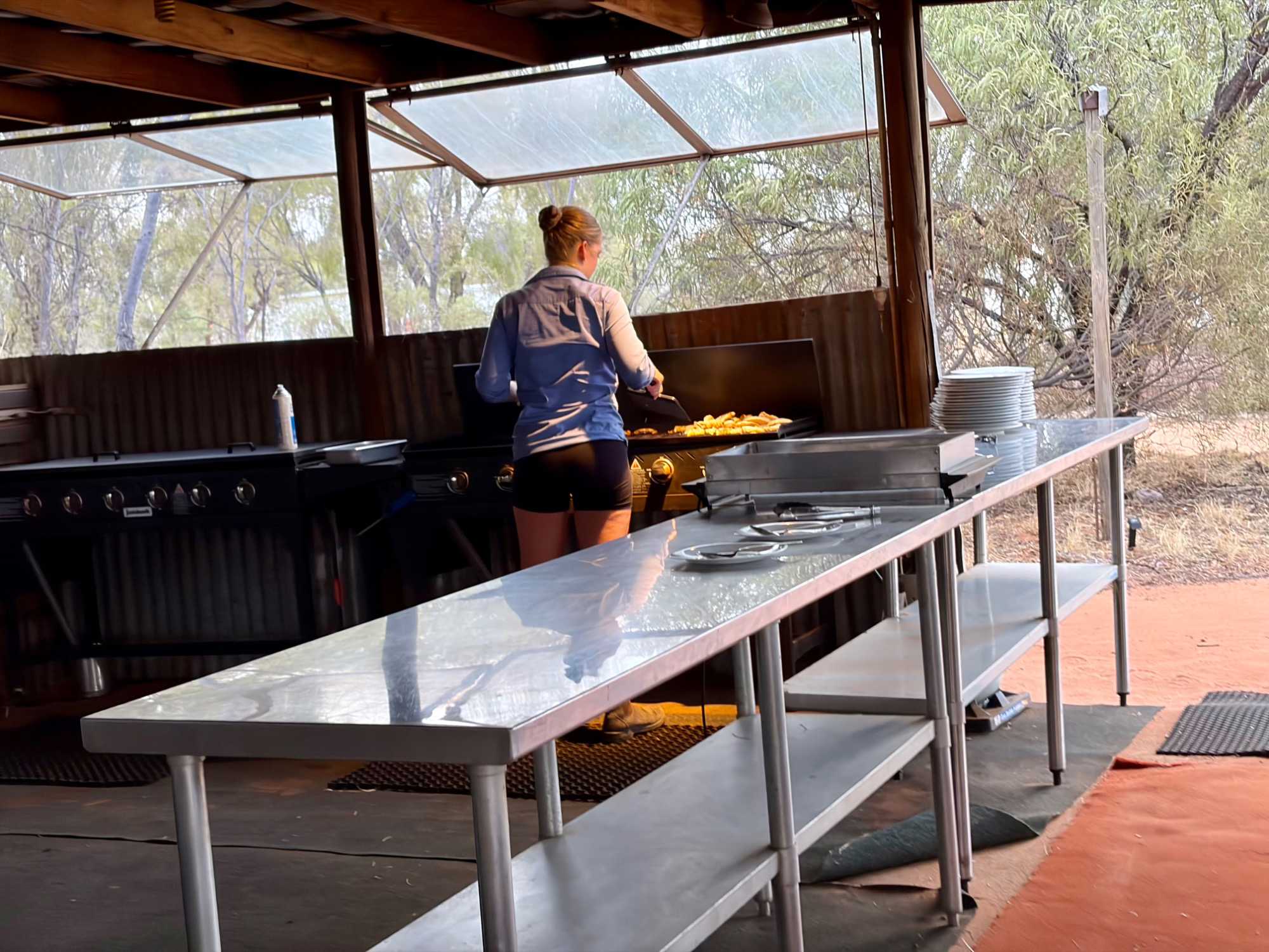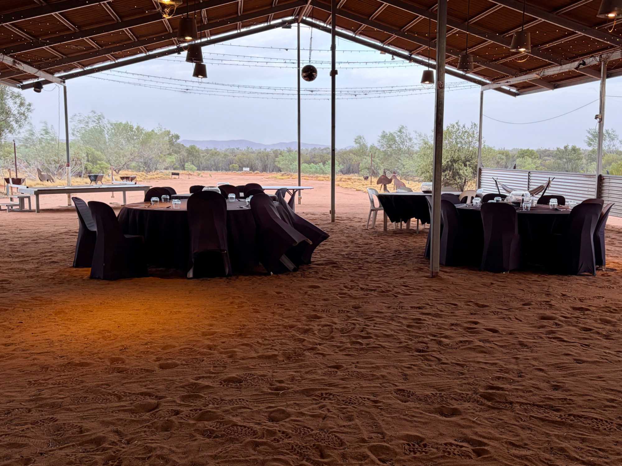 À une douzaine de kilomètres de notre hôtel mais en plein désert aride de l’Outback, se trouve un lieu étrange : Bienvenue au Earth Sanctuary « Spirit of the Outback » fondé en 1999, site unique et exceptionnel primé. Une famille, des frères, se sont installés ici, dans ce désert du centre rouge australien, il y a une vingtaine d’années. Ils ont créé cet espèce de sanctuaire qui offre un souper tout à fait hors de l’ordinaire au cours duquel écologie, culture et astronomie sont à l’honneur.Il est l'un des premiers sites neutres en carbone du Territoire du Nord. Lors du souper, tout au fond, les magnifiques monts MacDonnell (attention ne pas confondre ici avec MacDonald hihi!) dominait les lieux avec son ciel étoilé à couper le souffle. Nos hôtes nous ont captivés avec des récits passionnants sur l'écologie, la culture et l'astronomie locale. Notre collègue Josée a même servi de cobaye pour participer à cuisiner un pain avec leur recette particulière “dempa” ( d’inspiration aborigène) avec un ingrédient magique (de la bière ajoutée) que nous avons eu l’occasion de goûter en fin de soirée.