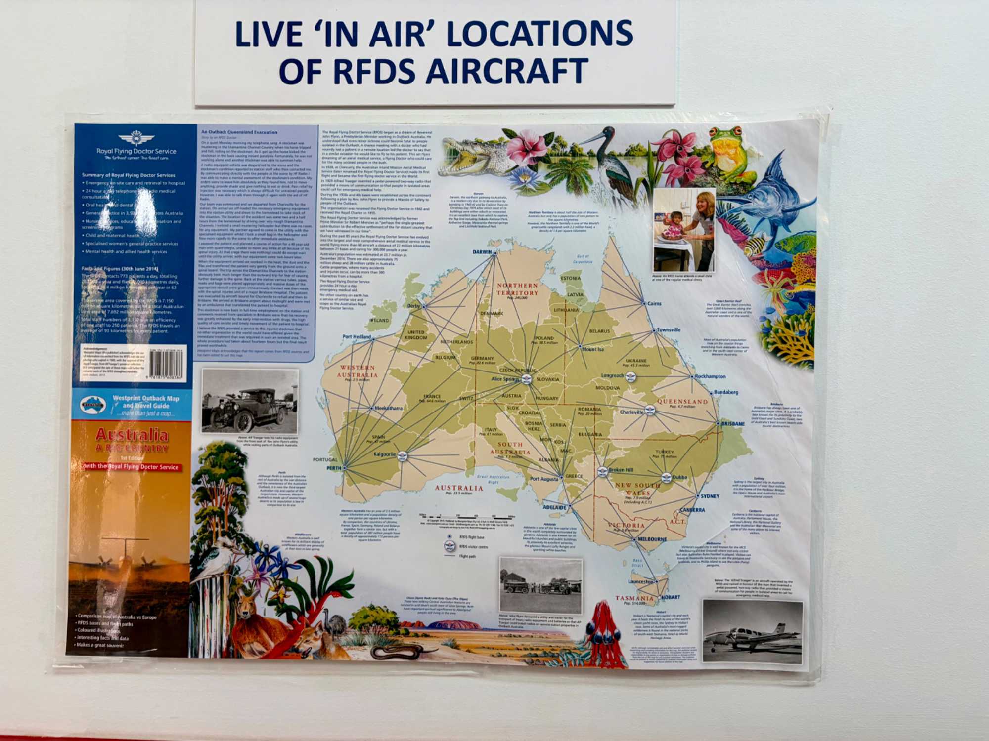 Alice Springs c’est la ‘’maison mère’’ de ce projet qui compte aujourd’hui plus de 16 bases, 39 avions aménagés comme des ‘’hôpitaux volants’’ sur ce vaste territoire de 5 millions de kilomètres carrés soit les 2/3 du territoire australien comprenant la Tasamani. Pilotes, médecins et infirmières sont 24h/24, comme les scouts : ‘’toujours prêts’’ à …décoller totalisant des services de 11 millions de kilomètres par année. D’autres statistiques? Un nombre de 150 000 consultations/an par radio et 17 000 évacuations de malades ou blessés. Et tous ces services sont payés par l’équivalent de notre ‘’carte assurance maladie’’. On a beaucoup aimé leur musée qui présentait un film relatant l’histoire de ce super organisme ainsi qu’une expérience où nous sommes munis d’un casque d’écoute, tantôt en vivant l’expérience d’une infirmière pendant l’évacuation d’un patient, tantôt en survolant le territoire en compagnie du pilote de l’avion nous expliquant ses opérations pour sauver des vies le plus rapidement possible. Le musée a même un tableau identifiant au moment présent l’endroit précis où chaque équipe, pilote et infirmier ou médecin, est présente sur le territoire. Il y en avait sept au moment de notre passage. Chapeau au “Royal Flying Doctors”!