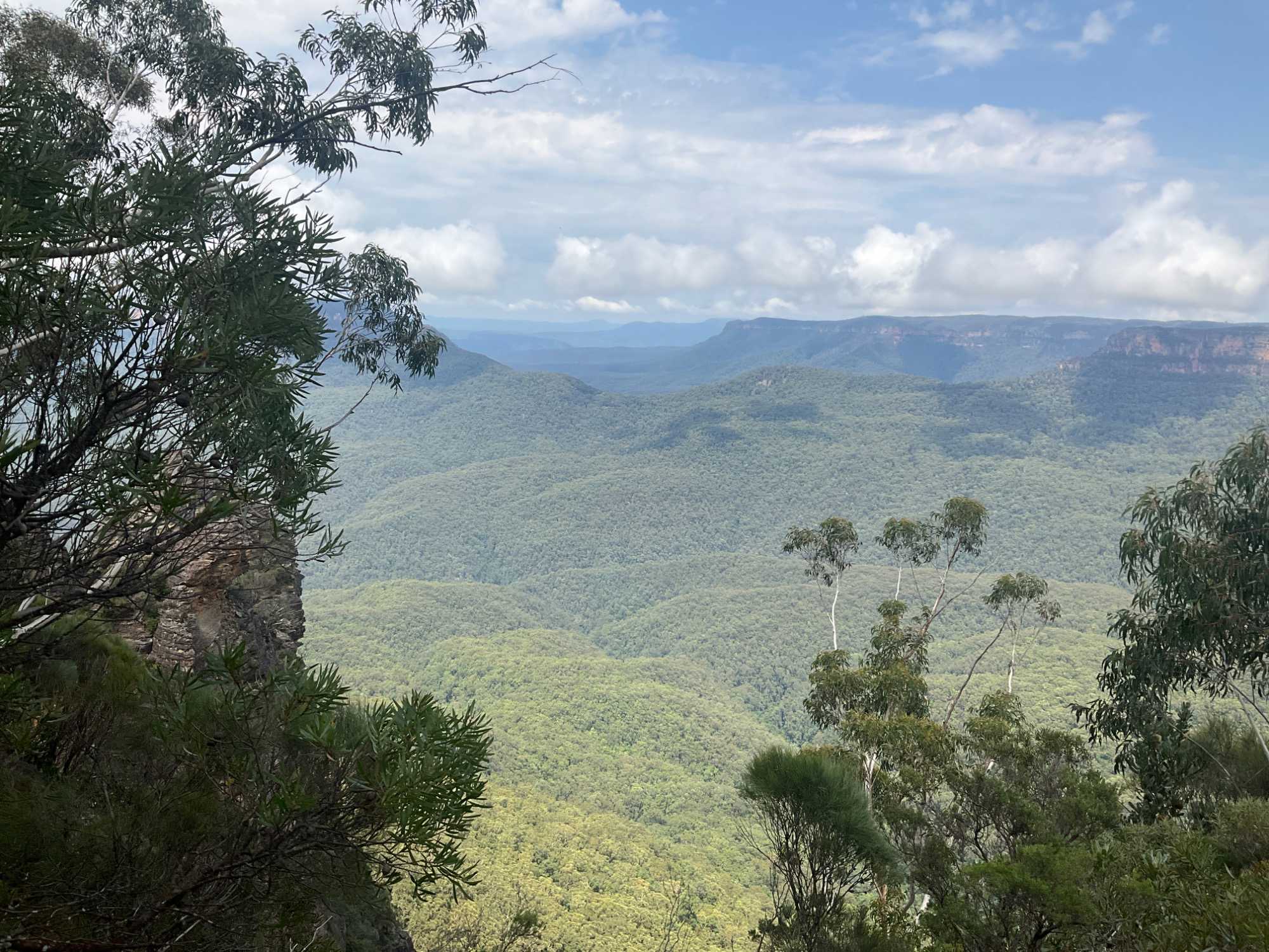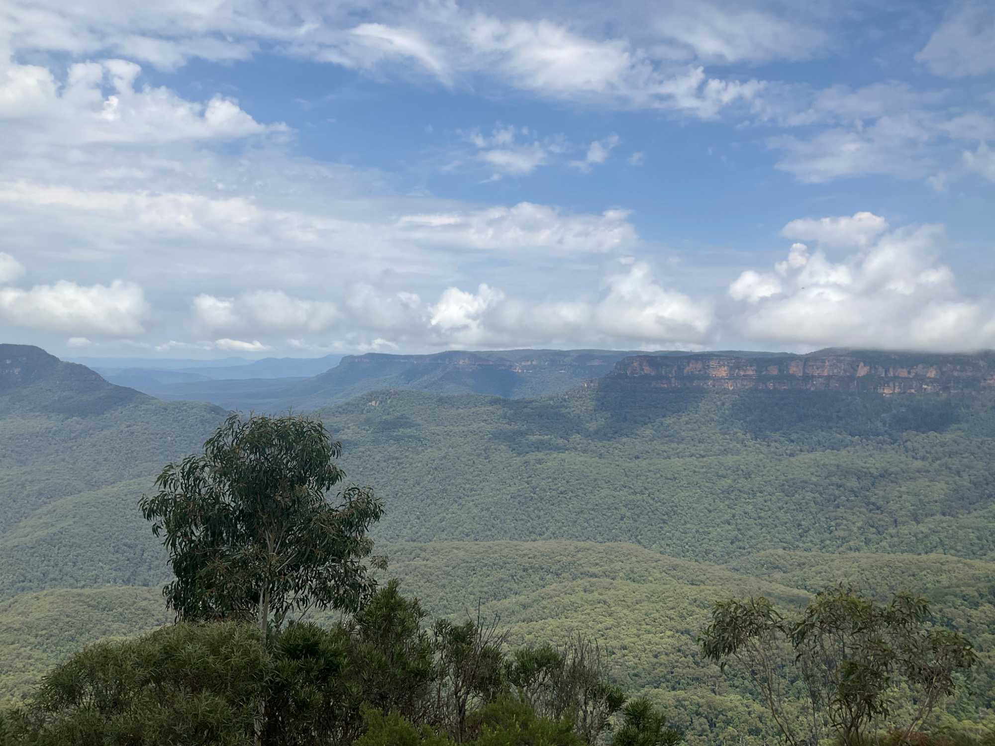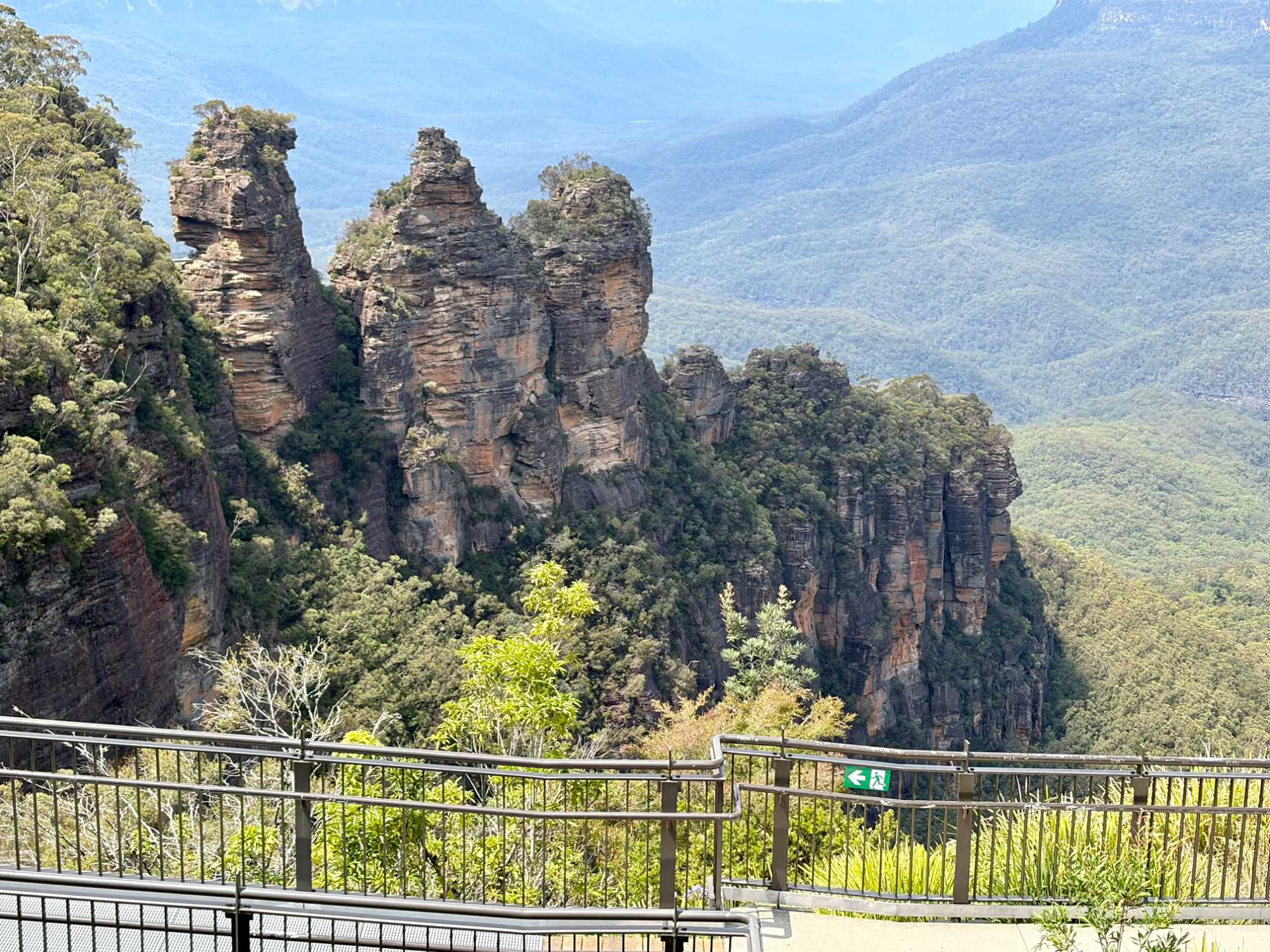 Cette formation géologique côtoie les contreforts d’une falaise surplombant la vallée Jamison. Elle se découpe sur un paysage fascinant de montagnes. Les trois rochers ont été nommés d’après les noms aborigènes de Meehni (922 m), Wimlah (918 m), et Gunnedoo (906 m). L’érosion par le vent et la pluie a façonné et modèle encore, ces trois rochers. La chaîne de montagnes de grès atteint 1111 mètres d’altitude à son point culminant, One Tree Hill, et forme une partie de la Cordillère …australienne longue de 3000 km (1436 km2 de superficie), beaucoup moins connue que sa cousine la Cordillère des ...Andes en Amérique du sud. Ce ‘’tableau naturel’’ détient le titre de l’une des plus belles vues panoramiques d’Australie. Elles étaient là, dans toute leur majesté. Une formation rocheuse incomparable.