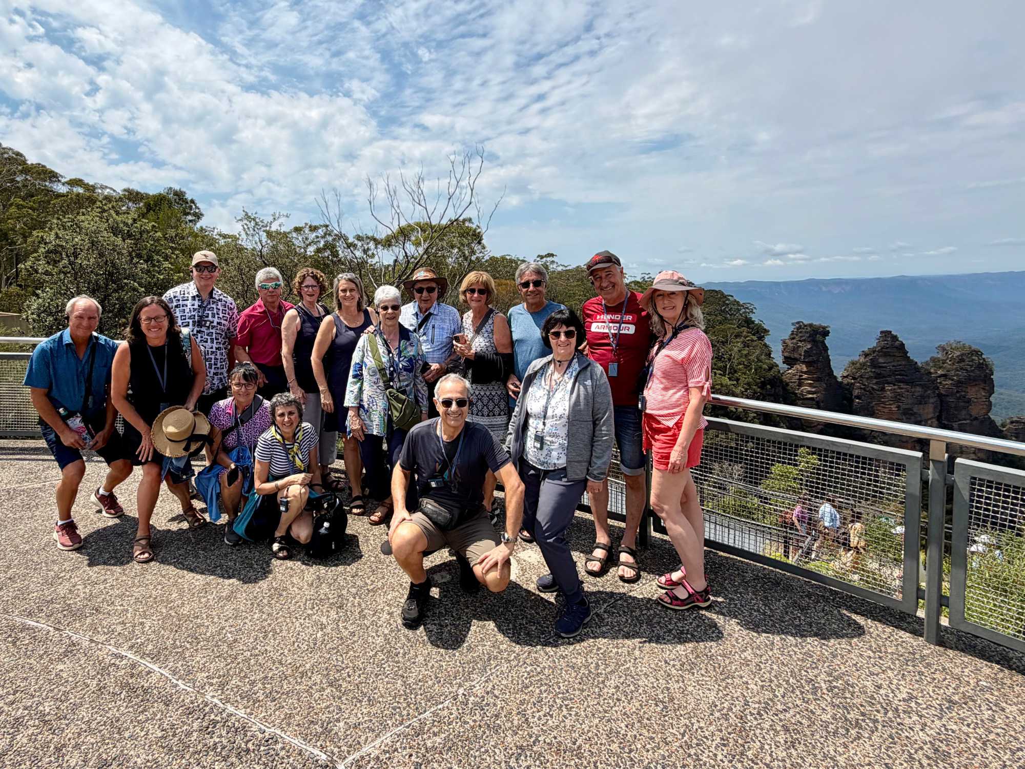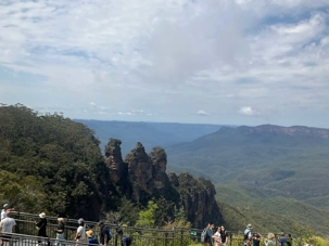 À quelques minutes seulement, Echo Point s’affiche comme un point de vue panoramique aménagé à Katoomba. Il offre le meilleur panorama sur la partie environnante des Montagnes Bleues, en particulier les ‘’Trois sœurs’’, la célèbre et impressionnante formation rocheuse à proximité immédiate. On le retrouve sur le tracé du Prince Henry Cliff Walk, un sentier de randonnée qui suit le rempart montagneux mais… on ne l'a pas vue à notre arrivée. Quelle ne fut pas notre déception sur les lieux d'être envahie d'un brouillard épais ne permettant pas de voir cette famille des Trois Soeurs. Bon, nous n'étions pas les seuls à être déçus, un grand nombre d'autocars avec tous ces voyageurs faisaient demi-tour la tête basse.