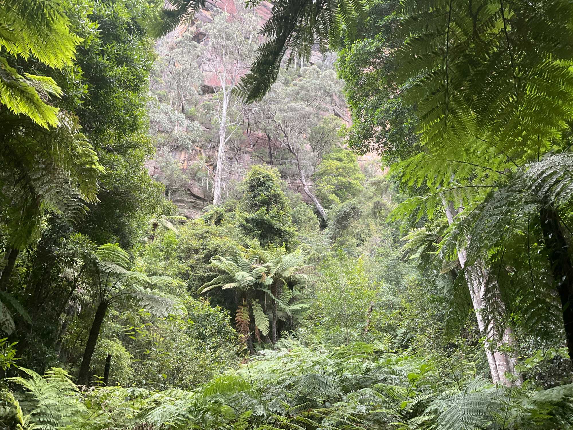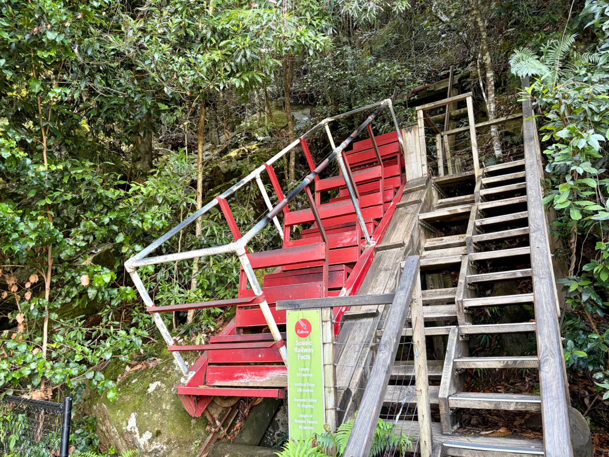 Puis, nous nous sommes rendus au Scenic World Blue Mountains de Katoomba avec le Scenic Railway, et le Scenic Walkway, une promenade surélevée de 2,4 km (1,5 km) à travers une forêt tropicale ancienne.
