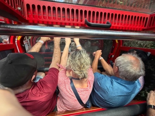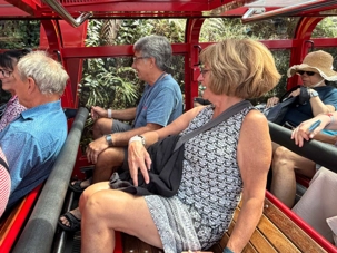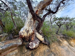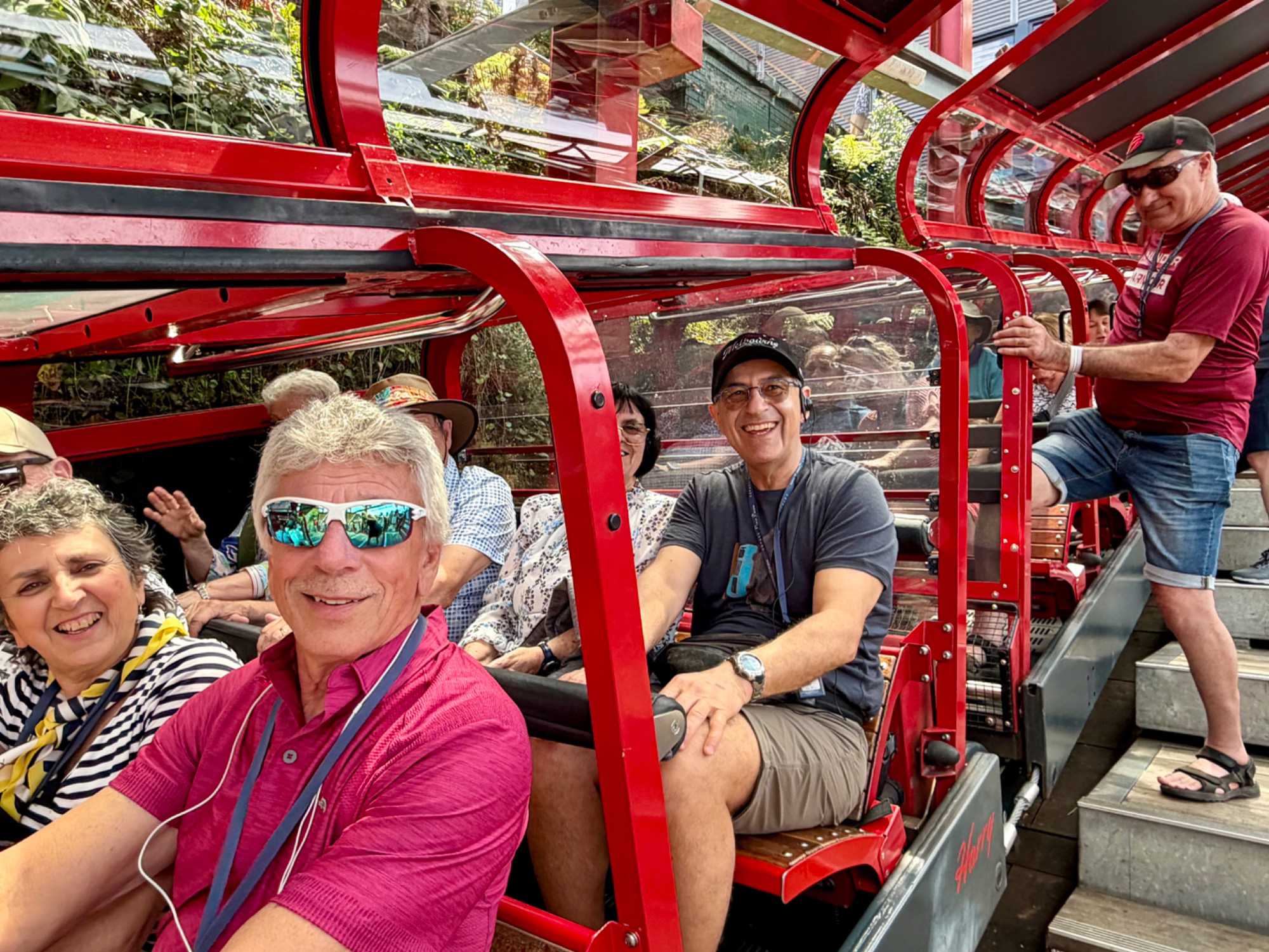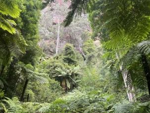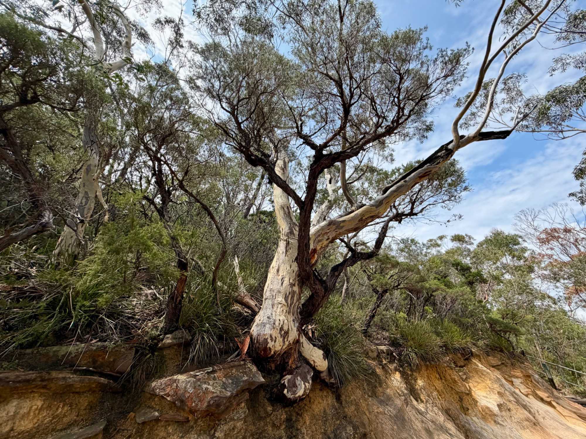Notre guide nous a invité à descendre la falaise ayant la pente la plus raide au monde …n’ayez crainte, personne d’entre nous n’est alpiniste alors nous optons pour… cet espèce de funiculaire. Selon le Livre Guinness des records, ce funiculaire qui ressemble en fait à un train, serait le plus incliné au monde. Construit entre 1878 et 1900, il servit pour le transport du charbon de la mine de Katoomba. Il descend de 415 mètres sur des falaises de grès, via un tunnel au gradient impressionnant : 52 degrés. Les petits cœurs de certains de nos voyageurs ont eu quelques joyeuses palpitations. En bas, un sentier nous invitait à explorer la magnifique forêt avec ses arbres immenses, ses pannneaux didactiques sur cet ancien lieu minier où de vieux outils furent reconnus par les hommes du groupe, divertissant. Pour ajouter à notre expérience et voir la montagne sous un autre volet, nous sommes remontés par la télécabine au format impressionnant en quelques minutes seulement. Puis, pendant que certains ou plutôt “certaines “ magasinaient, d’autres ont traversé la gorge en téléphérique qui nous a permis d’apprécier la gorge dans toute sa splendeur et de voir l’étroite mais très haute cascade discrètement déposé dans le paysage. Willya a su nous dévoiler tous les secrets de ces Montagnes bleues à la végétation luxuriante, ses oiseaux envoûtants aux couleurs éclatantes, ses gorges impressionnantes.