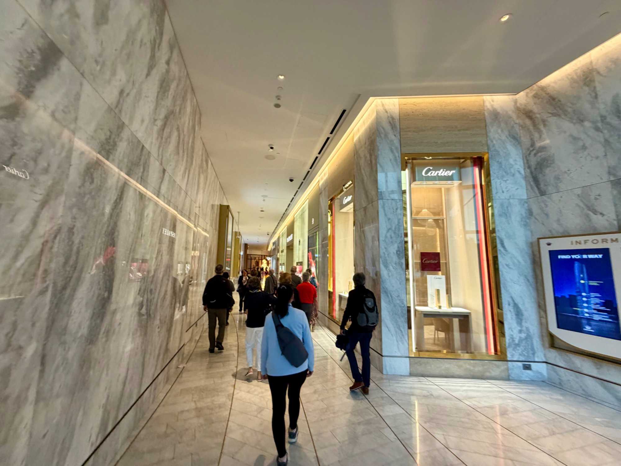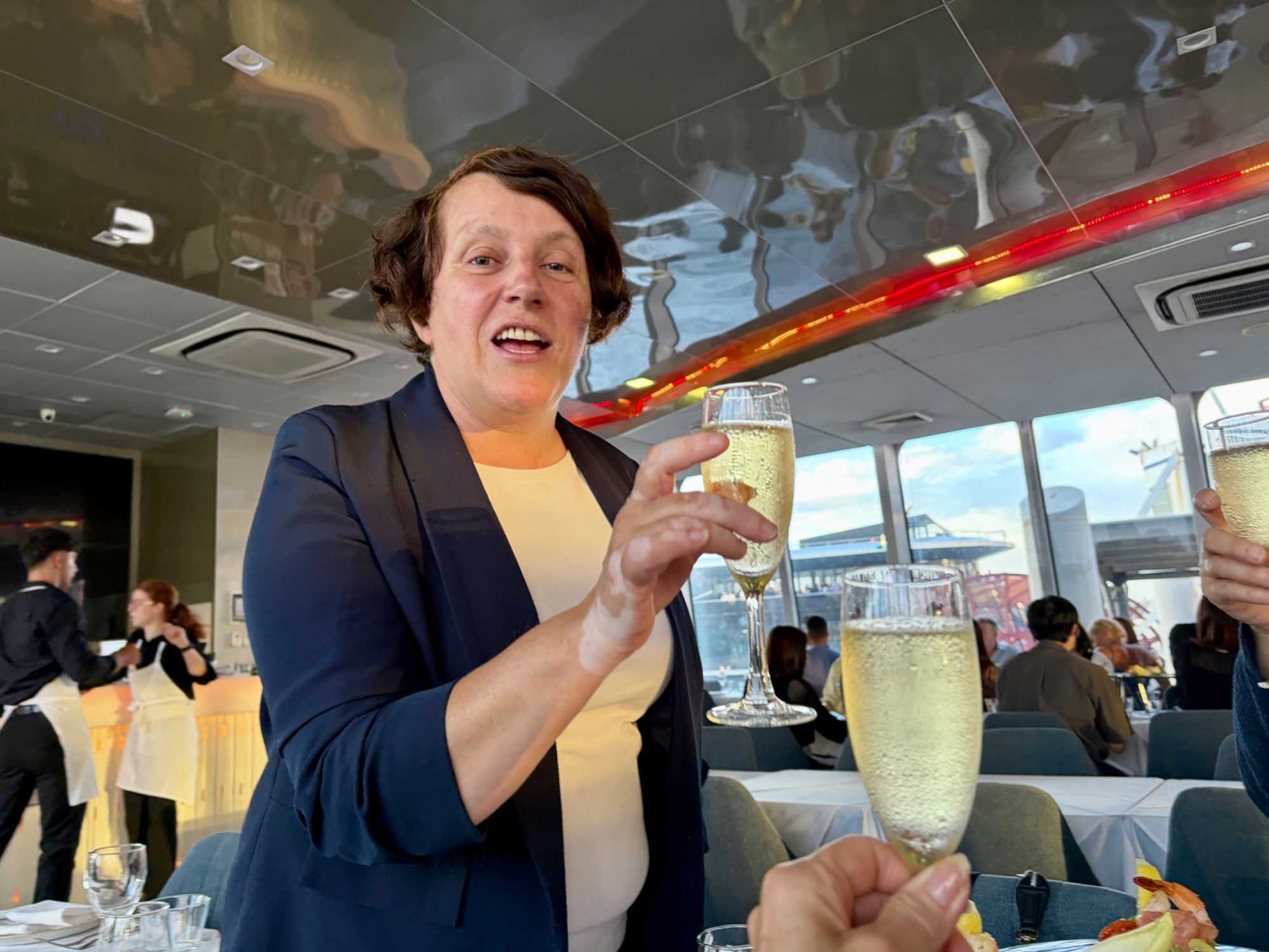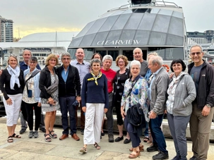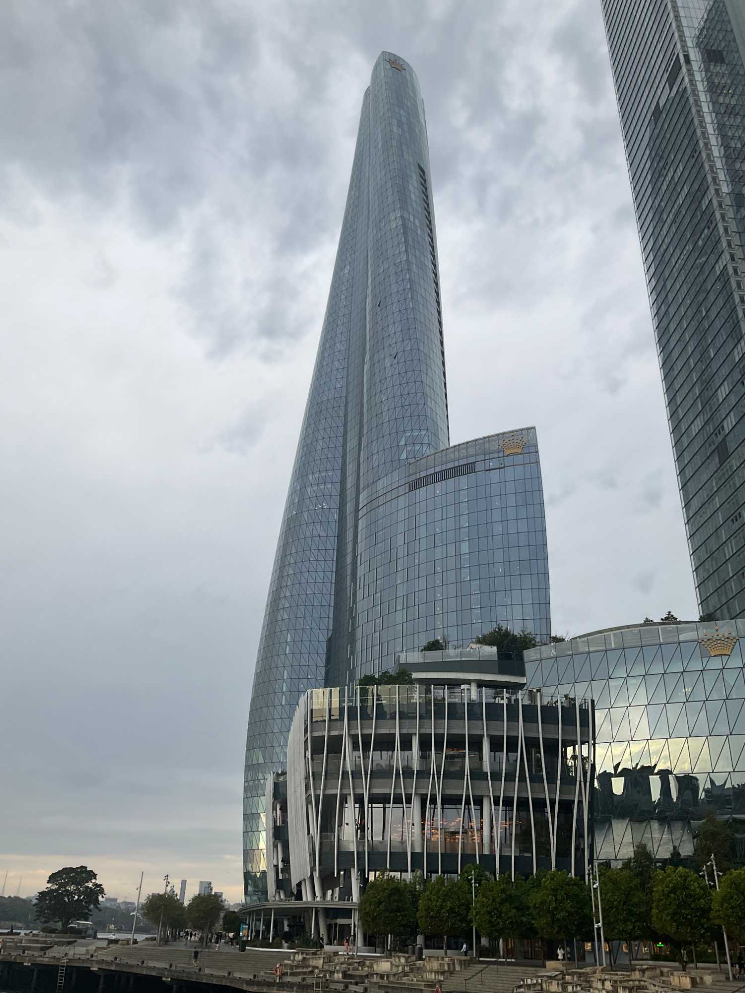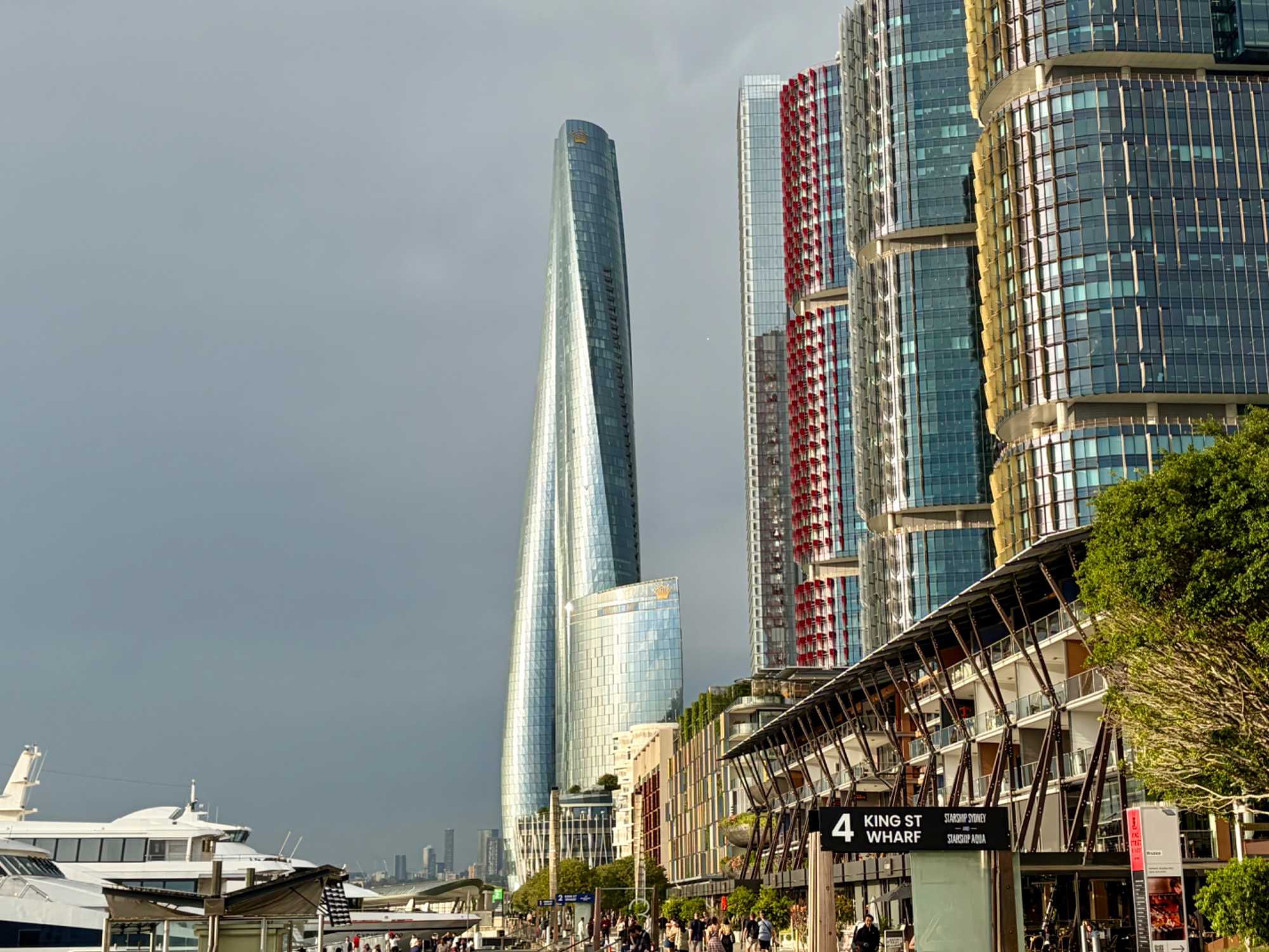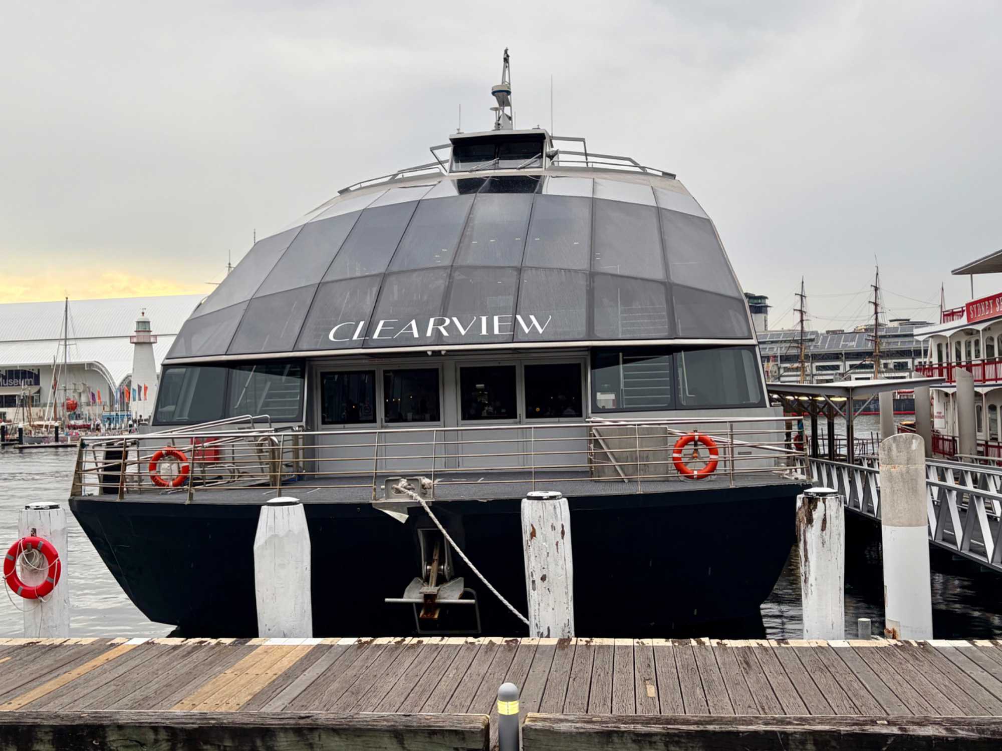 En après-midi, en route pour notre retour à Sydney en deux heures de trajet car nous devrons faire vite pour déposer nos sacs à l’hôtel et atteindre le centre-ville pour notre sortie de ce soir, un souper-croisière à bord du tout nouveau et splendide Clearview Glassboat pour voir Sydney au coucher de soleil. 18:15, nous sommes fidèles pour notre rendez-vous. La température est sublime: ensoleillée, 30 degrés Celsius, aucun vent, un ciel gris bleu à l’horizon. Comme nous sommes en avance, notre guide ne perds pas une seconde et nous invite à faire une balade le long de la marina. Les gratte-ciels rivalisent entre eux en terme de style, de modernité, de hauteur, de richesse et de verre. On se dirige droit vers eux et la guide nous fait entrer au casino où la valeur minimale de la mise est de …5 000 dollars. Ça nous a fait plaisir de le voir mais…on est sorti. On préfère la balade. L’endroit est magnifique pour ses restaurants bondés de clients même au milieu de cette semaine.