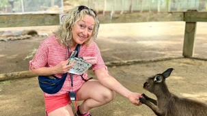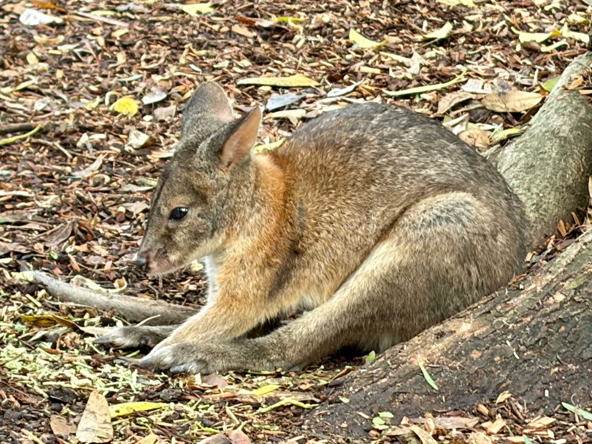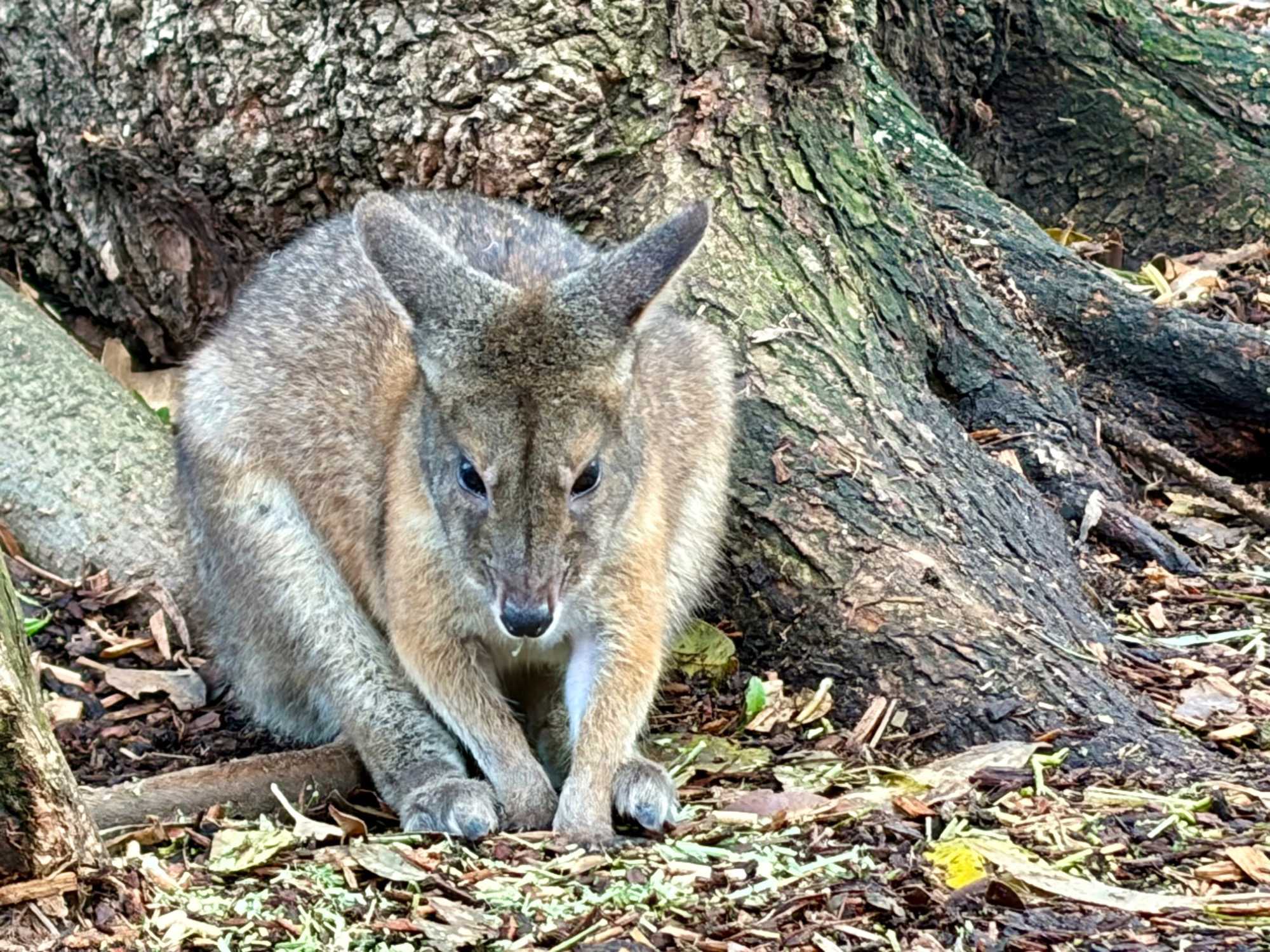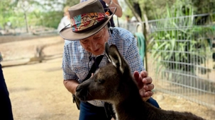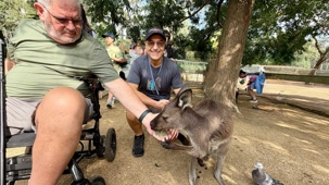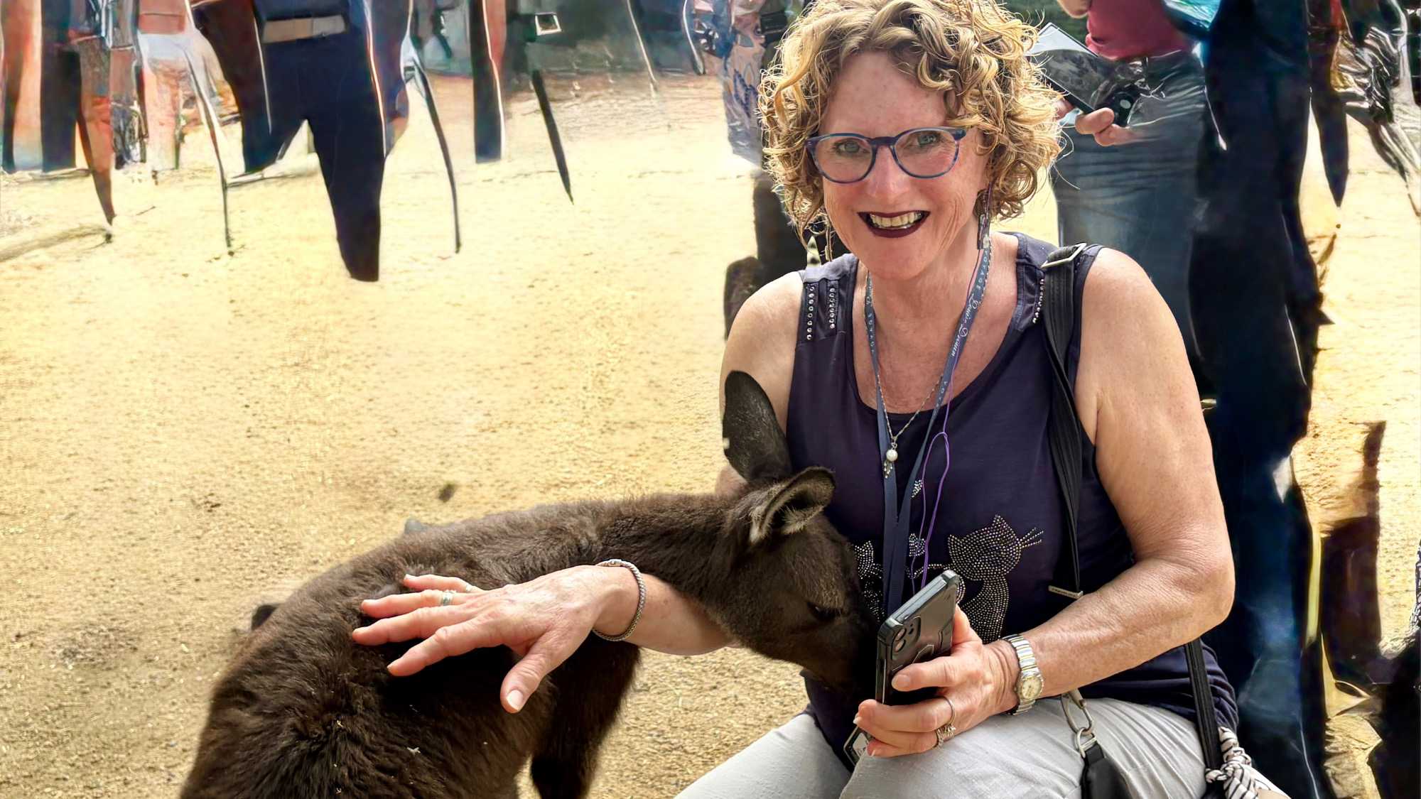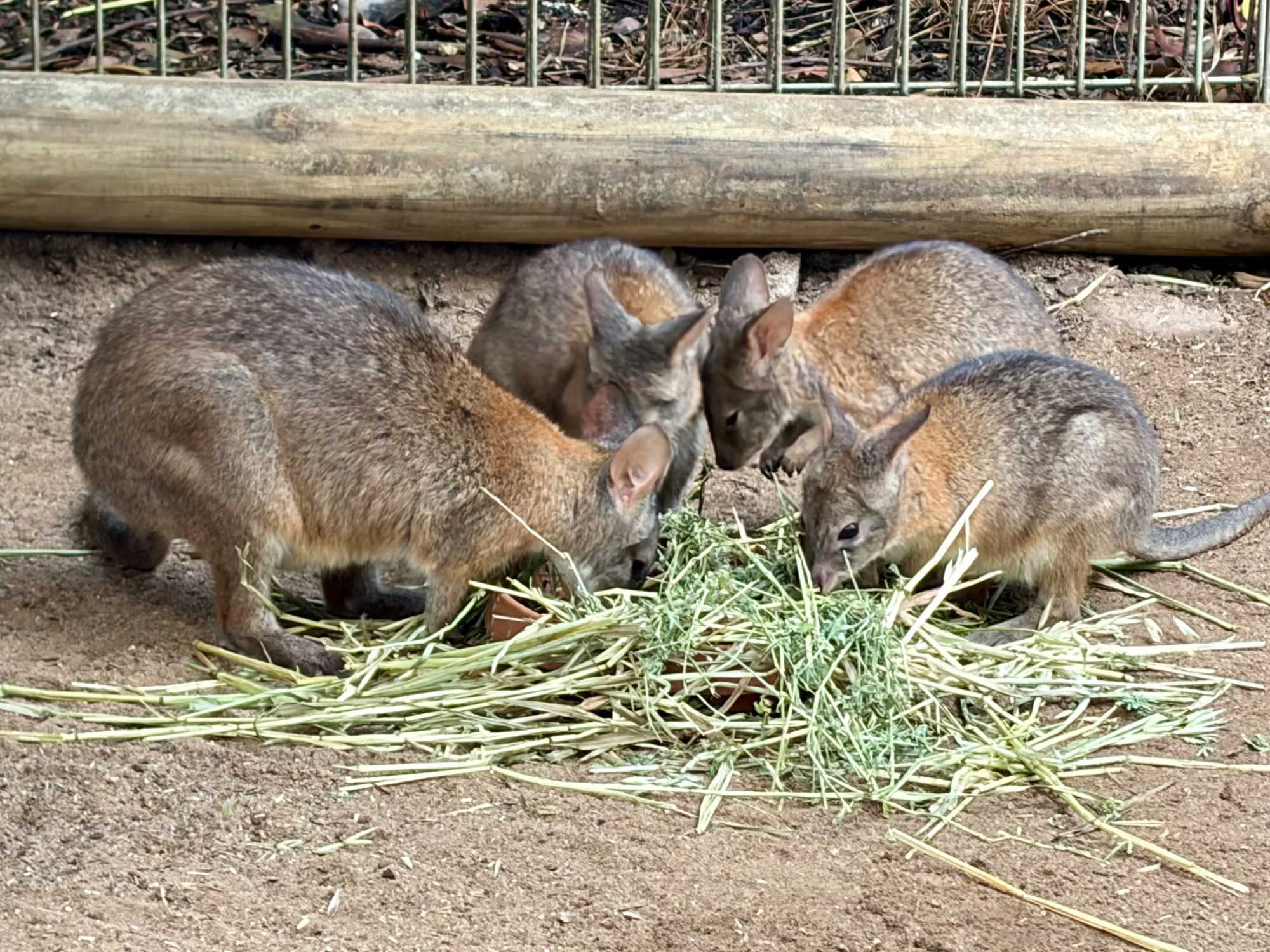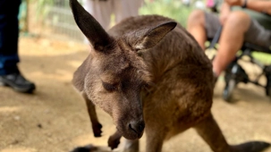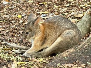 Tout notre petit groupe s’est émerveillé de découvrir le monde animalier australien complètement différent de nos chevreuils, castor, orignal, ours noir…Même leur nom ne s’avère pas familier à nos oreilles. Bien sûr, nous connaissions les kangourous et les koalas, de nom seulement ou sur photos. Mais de pouvoir tendre notre main et caresser leur douce fourrure résultait pour nous d’un rêve…d’enfant malgré nos trois et...quatre fois 20 ans. On a pu voir les visiteurs, munis d'un petit contenant de nourriture spécialisée, débuter la balade en espérant un rapprochement avec les petits wallabys. Si eux recherchent à remplir leur panse, nous on recherche le contact physique. Même sans nourriture, certains de nos voyageurs semblent avoir un certain talent pour les attirer mais sitôt le stratagème découvert, ils filent vite vers un autre visiteur au potentiel alimentaire gagnant. Imaginez les yeux des tout-petits visiteurs ici. Même pour nous ce sont des notes de pure émotion. Vous êtes prêts pour poursuivre la nomenclature des animaux australiens? Il y avait là les : wombat ressemblant à un sanglier, celui même qui fait des excréments “carrés”, et qui s’en sert pour communiquer, d’ailleurs, il marque son territoire en créant parfois des petites murailles de crottes dont la forme en cube est aussi pratique que des briques, sans compter qu'elles libèrent plus d'odeur qu'une crotte classique…ah, quand on est curieux, on apprend toutes sortes de choses “intéressantes non?