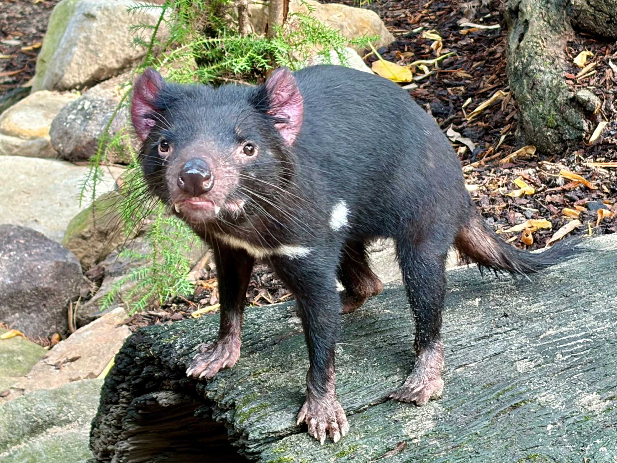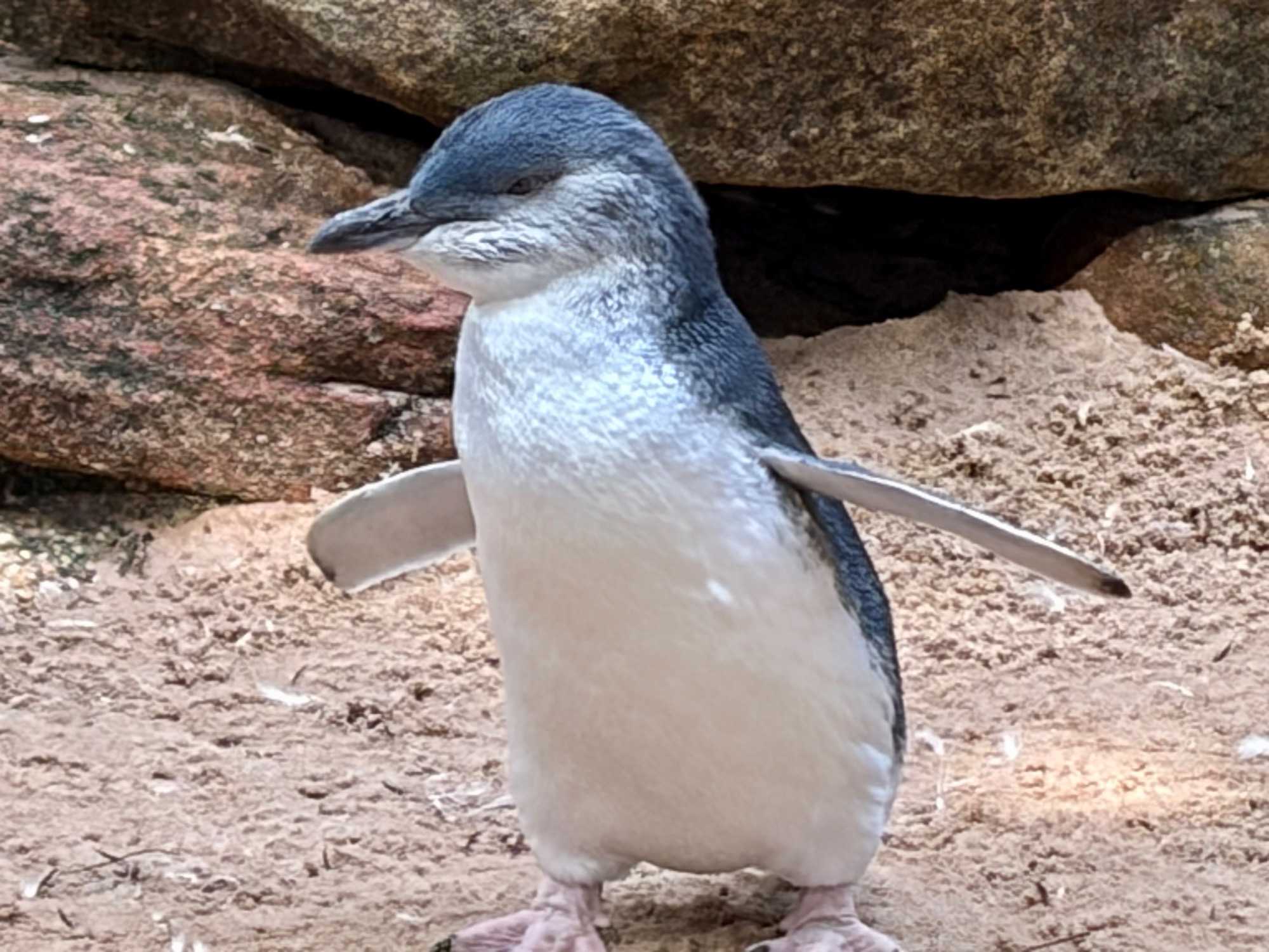 On a vu également des pingouins, un diable de Tasmanie, on dit d'ailleurs que cette espèce est en voie d'extinction. En effet, l'espèce est aux prises avec une tumeur faciale contagieuse qui évolue en cancer. Disons que ce dernier ne gagnerait pas un prix de beauté. On a croisé également des dingos, genre de chiens sauvages, des échidnés, des yellow footed rock Wallaby, comme nos premiers résidents rencontrés en entrant, sorte de kangourou miniature, celui-là même qui a donné son nom à une sorte de chaussure! Il vous faut chercher ces animaux sur Google et ne faites pas le saut quand vous trouverez le Casoar, gros comme émeu avec du bleu et rouge sur le cou, il ne paie pas de mine et on le considère comme l'oiseau le plus dangereux au monde. On est vite retourné à nos mignons koalas.