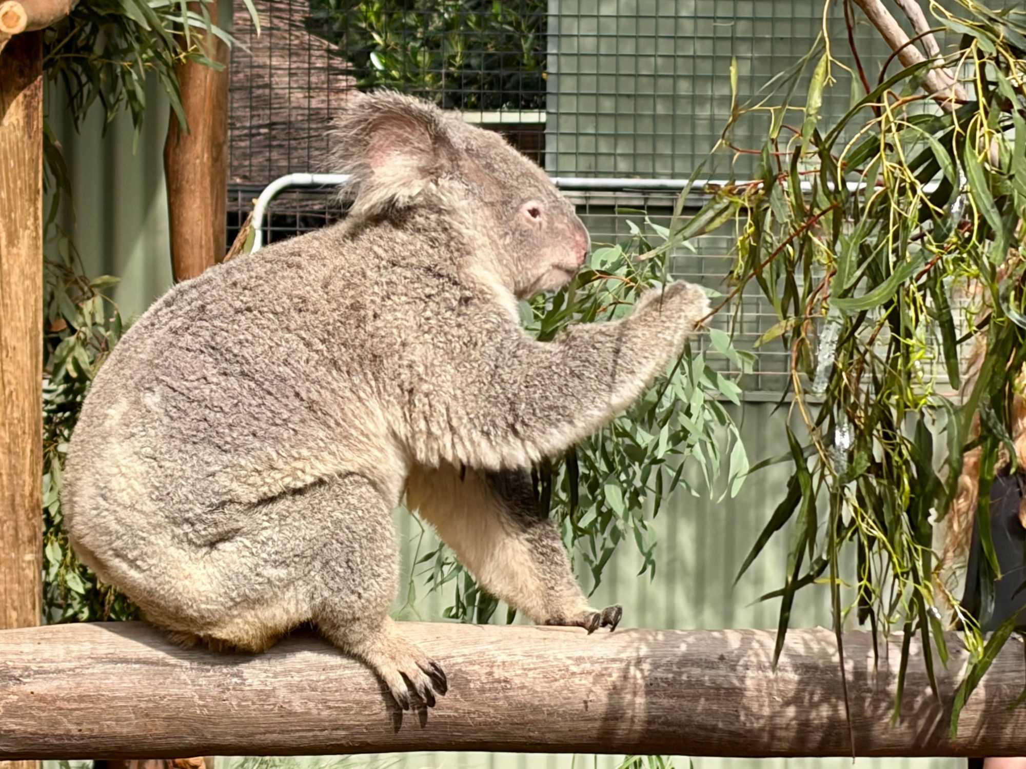 Pour les koalas, vous savez ces mignons toutous en peluche; certains visiteurs du parc profite de l'opportunité de prendre une photo officielle aux côtés d'un des leurs...moyennant un "léger supplément" bien sûr mais c'était pour une bonne cause pour pourvoir aux soins des animaux du parc animalier. Pour ces petits koalas, il faut vous dire qu'ils sont précieux car fragiles à la chlamydia qui rend l'espèce stérile. De plus, lors des grands feux des années précédentes, un grand nombre d'entre eux ont été décimés. Je vous avais avisé que l’Australie était le pays de la lettre K?