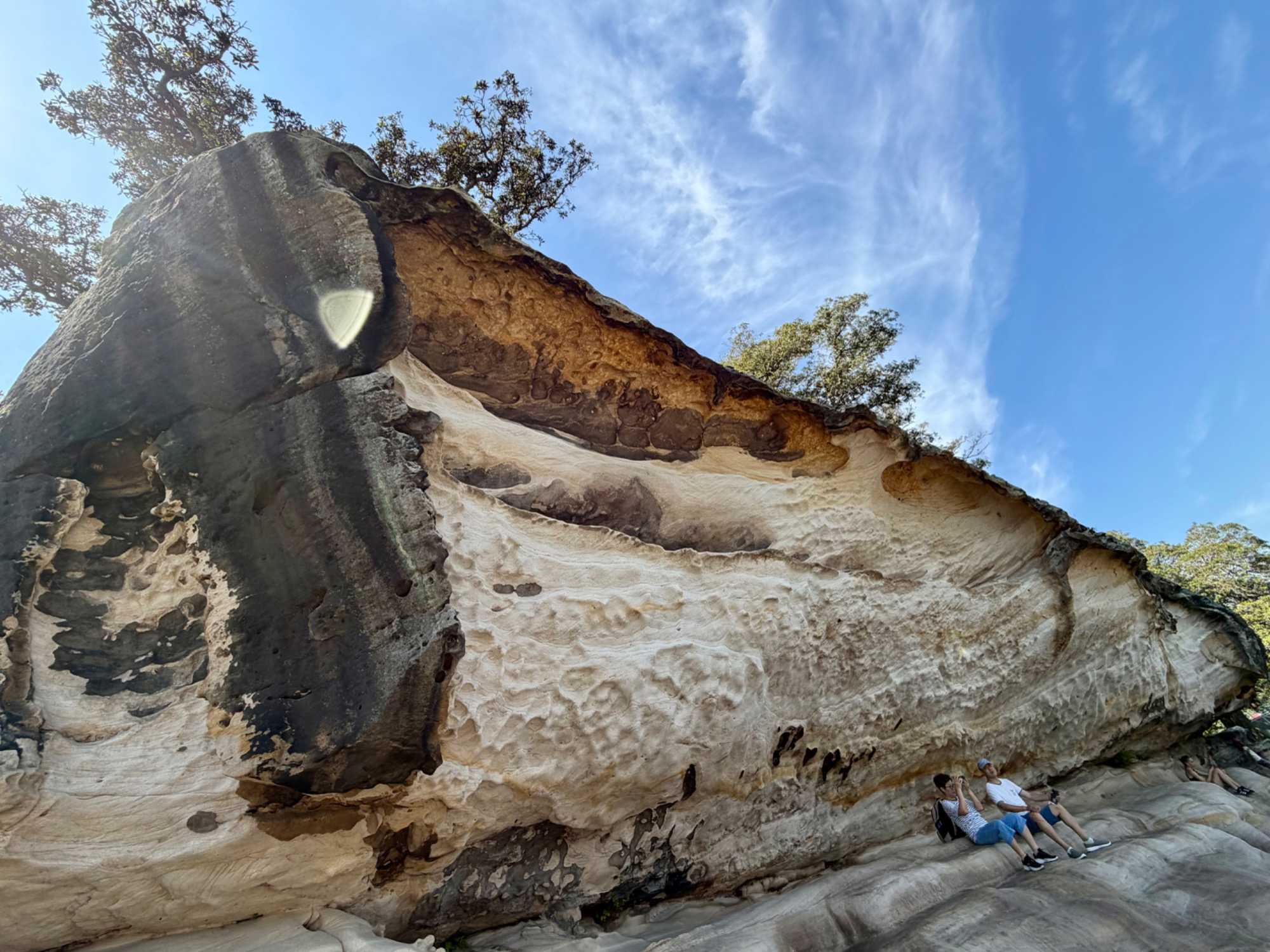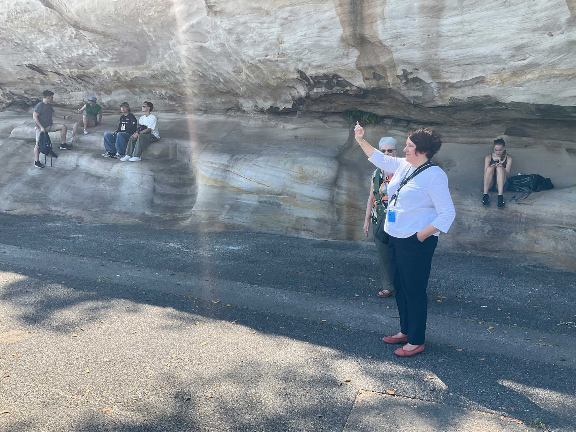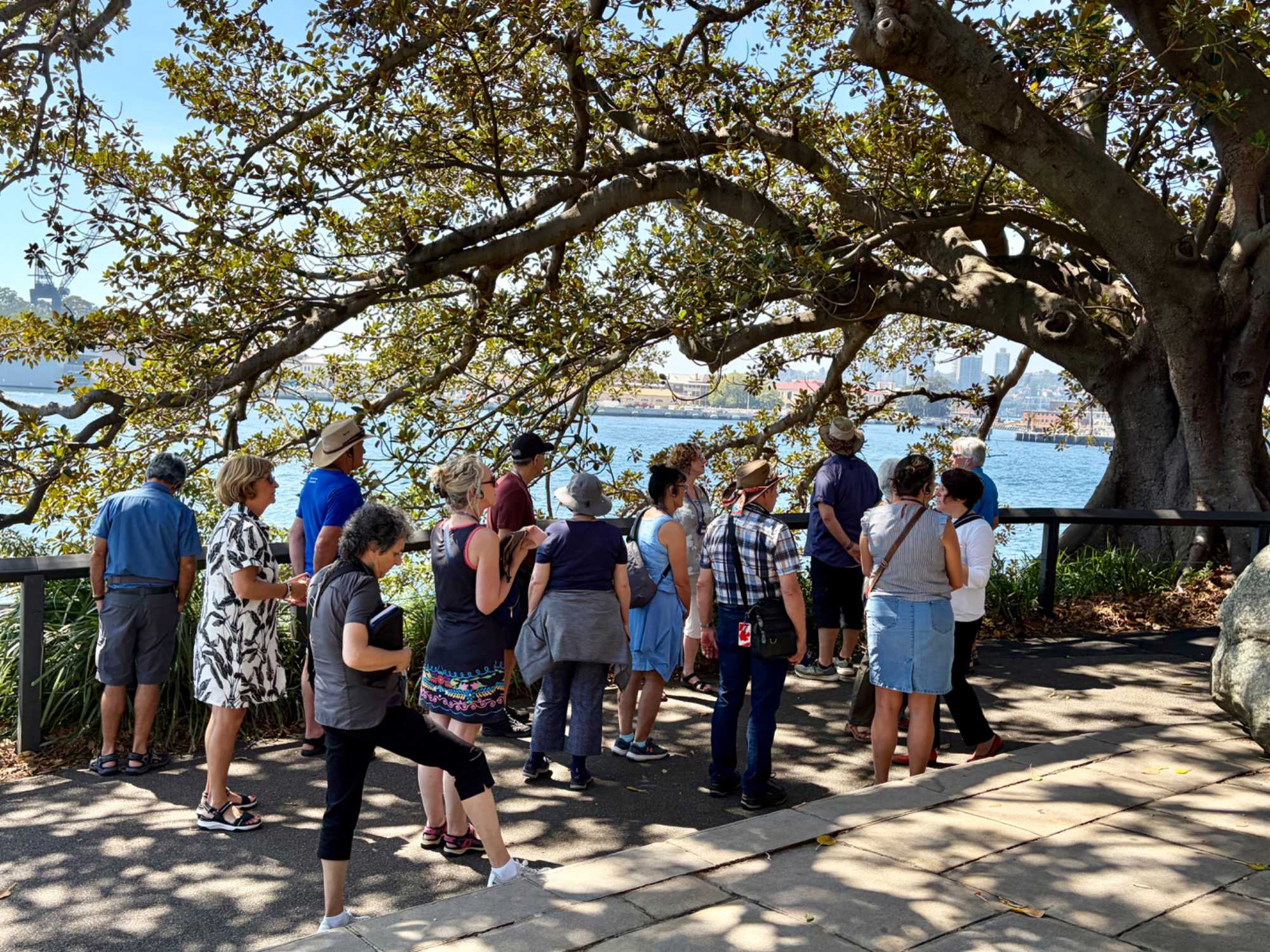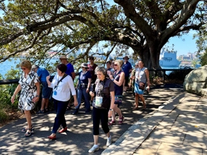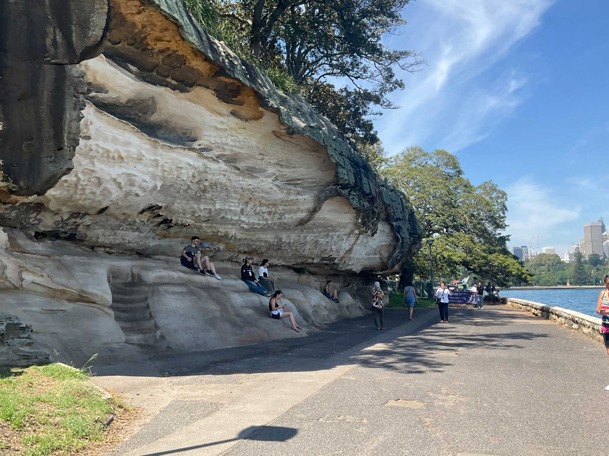 On fait premier arrêt qu'on appelle le ‘’Mrs Maccquarie's Point’’ du nom d’une dame. On dit que cette dernière aimait y faire des balades, on la comprend, en plus d’être paisible, c’est la plus belle vue de Sydney. Imaginez si elle revenait et qu'elle y voyait maintenant l'Opéra et le pont juste en face? Willya mentionne que les premiers occupants aborigènes s'étaient établis dans ce quartier aujourd'hui appelé des Rocks. L’explorateur, Monsieur James Cook, y serait arrivé lui dans les années 1770. On a beaucoup aimé l’immense écran rocheux aux diverses couleurs et formes où, jeunes et moins jeunes aiment s’y reposer.