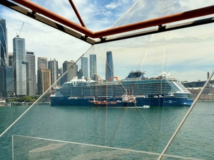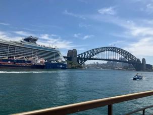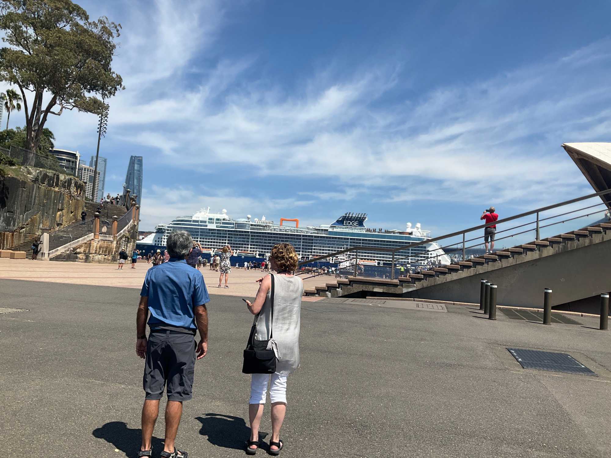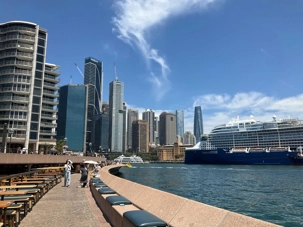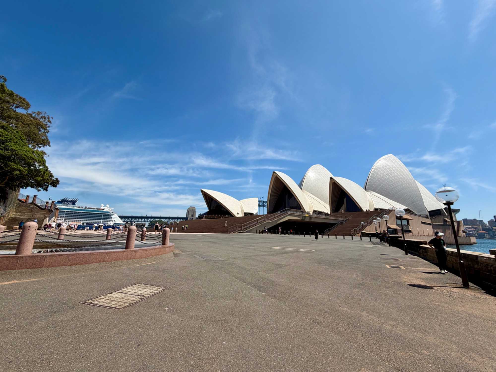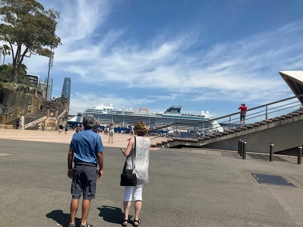 À la fin de la visite, Willya décide de se diriger à pied, vers notre navire de croisière amarré au port juste en face de l’Opéra. Un spectacle inusité ce navire qui a comme voisin le plus célèbre bâtiment de Sydney. Ce sera plus rapide que de reprendre l’autocar…n’ayez crainte, elle viendra tout de même y déposer nos précieuses valises.