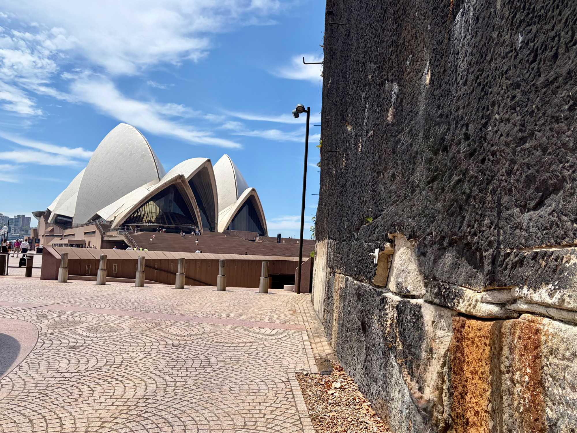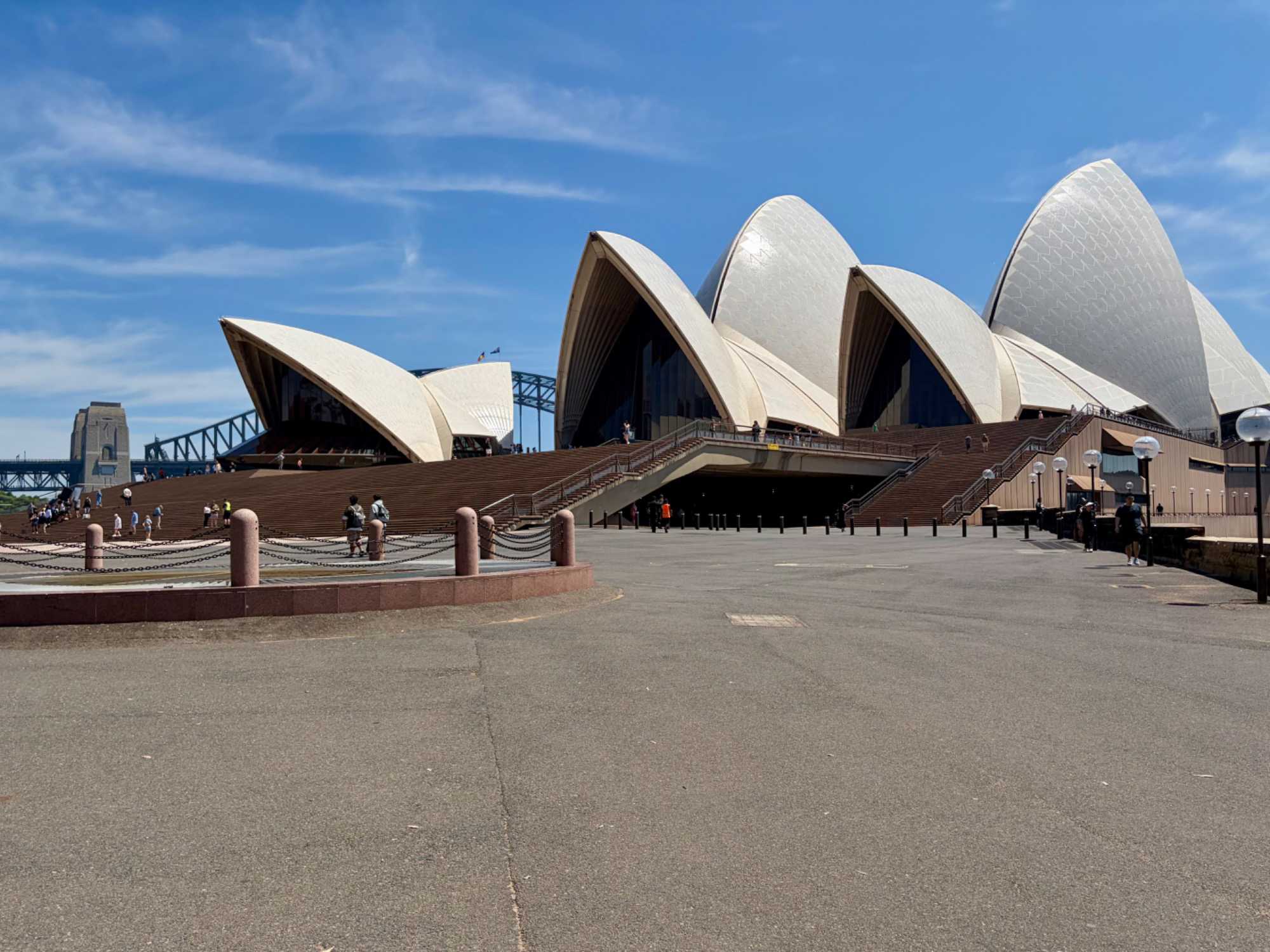 Et nous voilà rendu à l’Opéra près du Harbour Bridge vus hier lors de notre balade sur le magnifique Clearview Glassboat. Elle est située dans le quartier Bennelong Point. Ce célèbre bâtiment du XXe siècle (1973) et haut lieu de représentation des arts notamment lyriques, figure au centre-ville comme un coquillage géant pour les uns, et un voilier pour les autres. Sa fantaisiste architecture a été imaginée par le Danois Jørn Utzon. Un coquillage élégant au pays des colosses! Le décor qui en résulte est devenu un symbole et attraction touristique majeure de l'Australie et de Sydney particulièrement. Venir à Sydney sans voir l'opéra? Impossible. Certains touristes choisissent Sydney comme destination spécialement pour l'opéra.