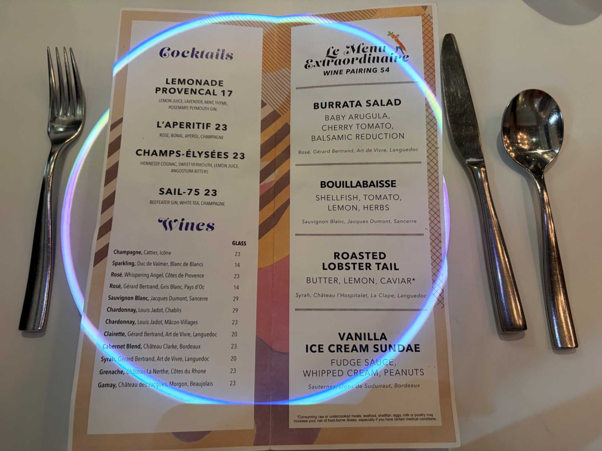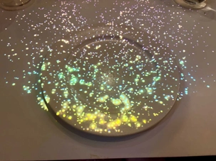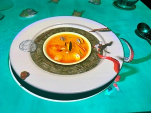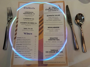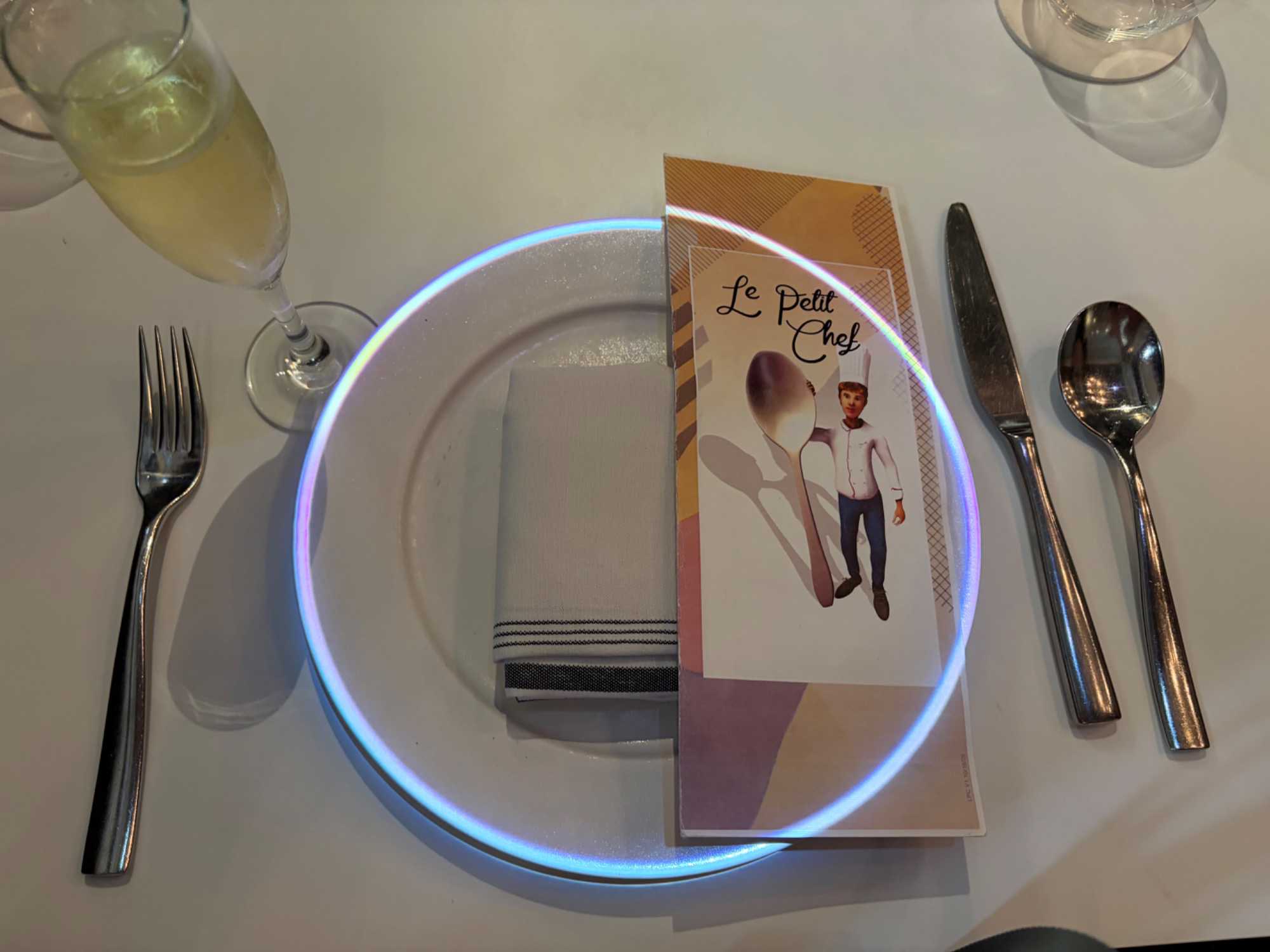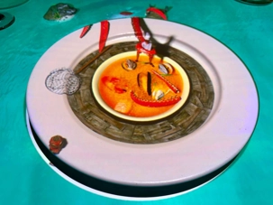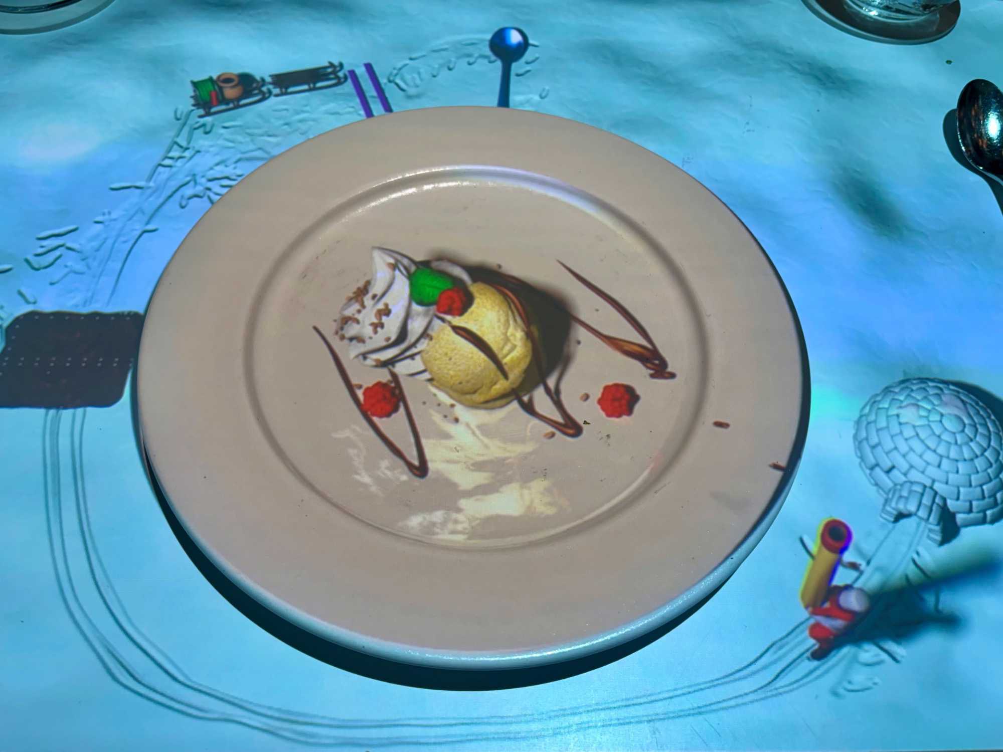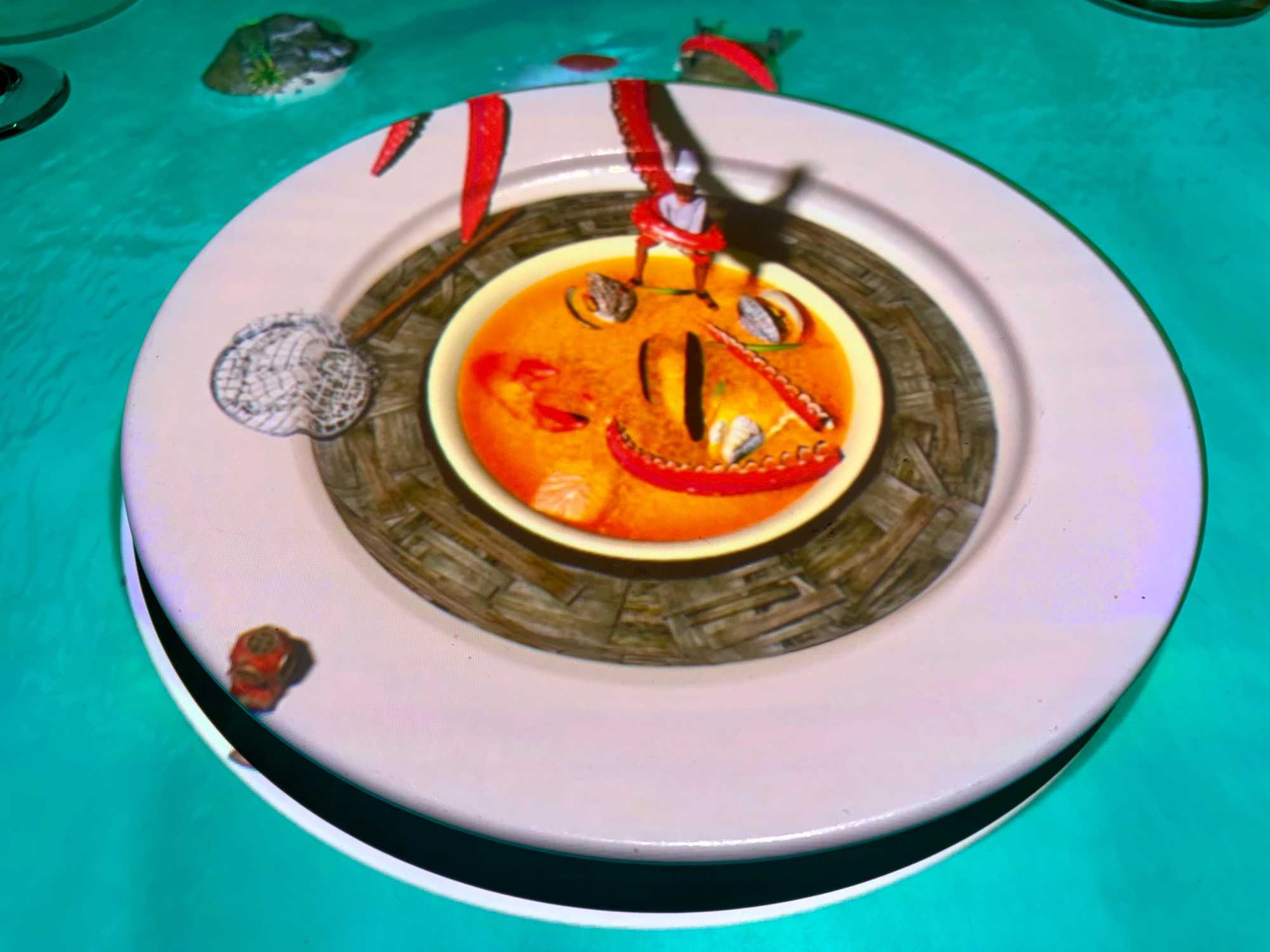 En effet, madame Drouin nous offre une expérience gastronomique du « petit Chef »: une fusion entre divertissement multimédia et, un événement gastronomique, un WOW quoi! Imaginez une bande dessinée dans votre assiette représentant les quatre services avec le petit chef qui nous présente ses ingrédients en les comparant aux œuvres des grands peintres puis les dépose dans votre assiette. Un service et des mets 5 fourchettes. Vous avez regardé les photos en premier, avant de lire le texte, avouez? Vous avez pensé à une erreur? Un mélange de photos de Walt Disney? Non, non, vous avez bien vu. Les photos démontrent bien notre expérience fusion entre la gastronomie et le multimédia n'est-ce pas? Un repas et soirée mémorable. La plupart des voyageurs pensait à leurs petits enfants qui auraient les yeux grands ouverts s'ils avaient été à leur côté.