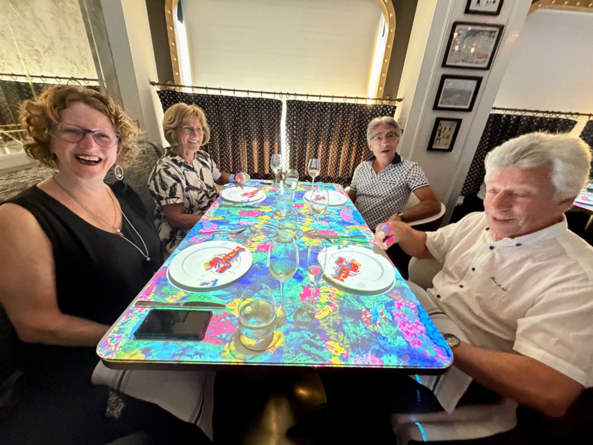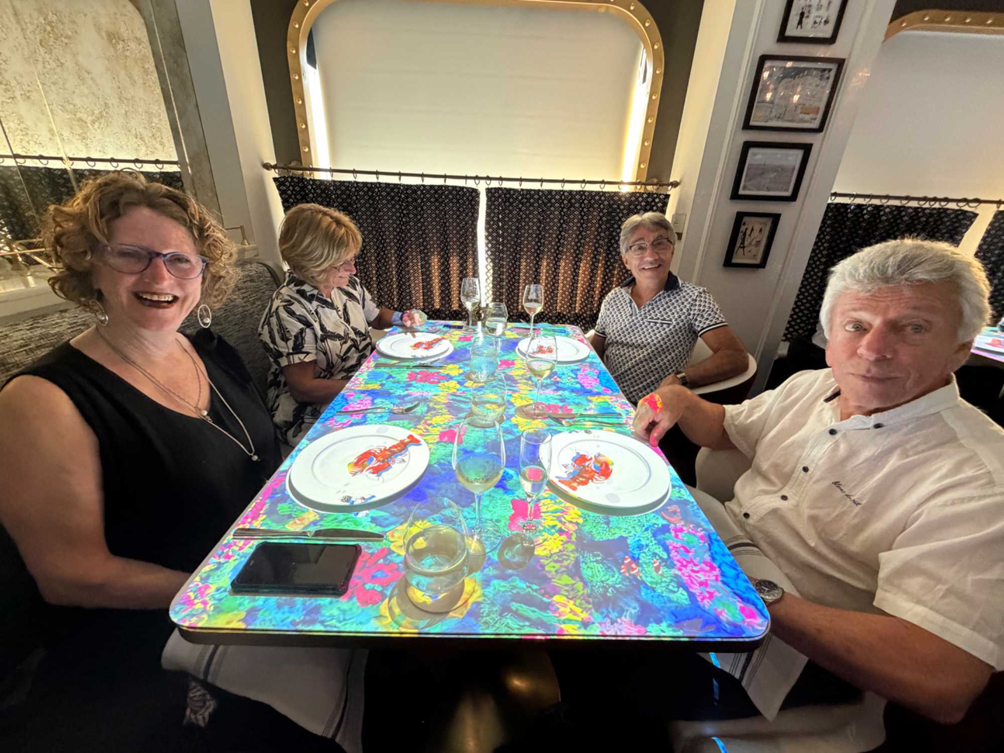 Une fois à bord, nos voyageurs en ont profité pour prendre un bon dîner à l’Ocean Café où il y en a pour tous les goûts. Un immense buffet pour satisfaire les plus difficiles. Puis on en profite pour se reposer car un souper de groupe un peu spécial nous attend.