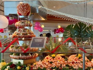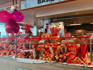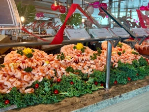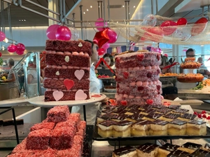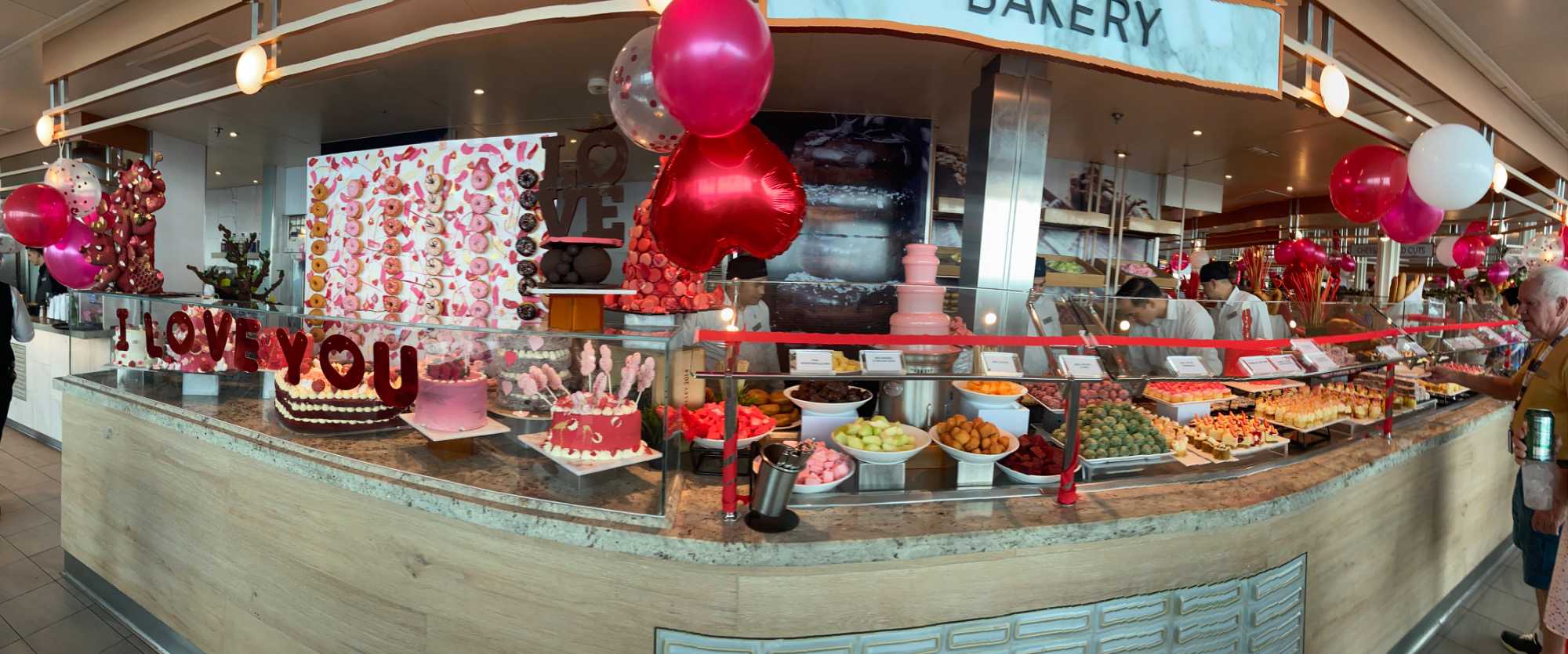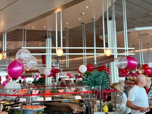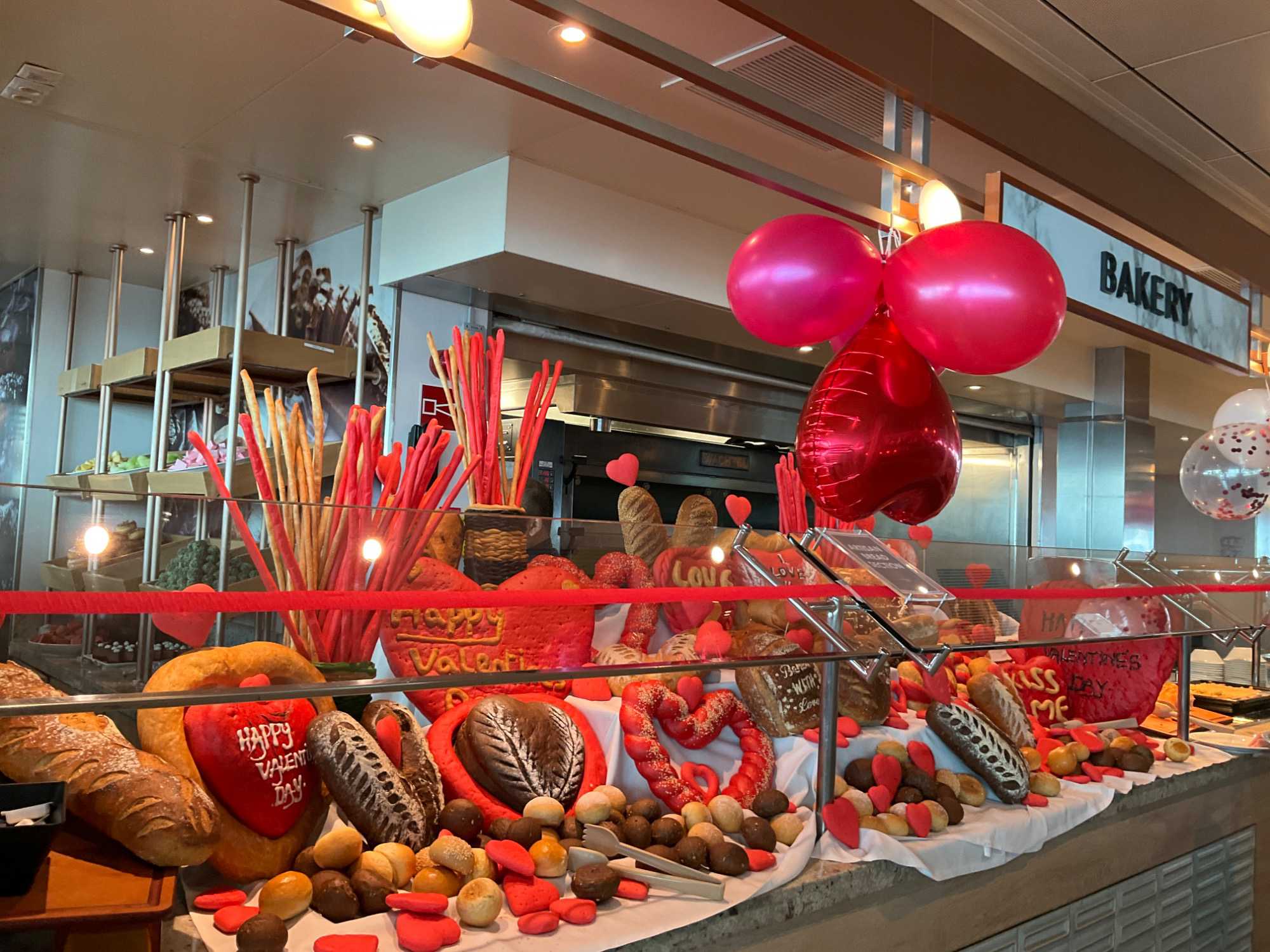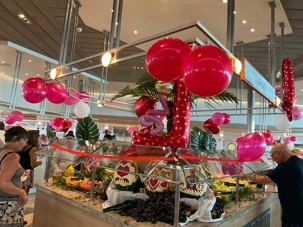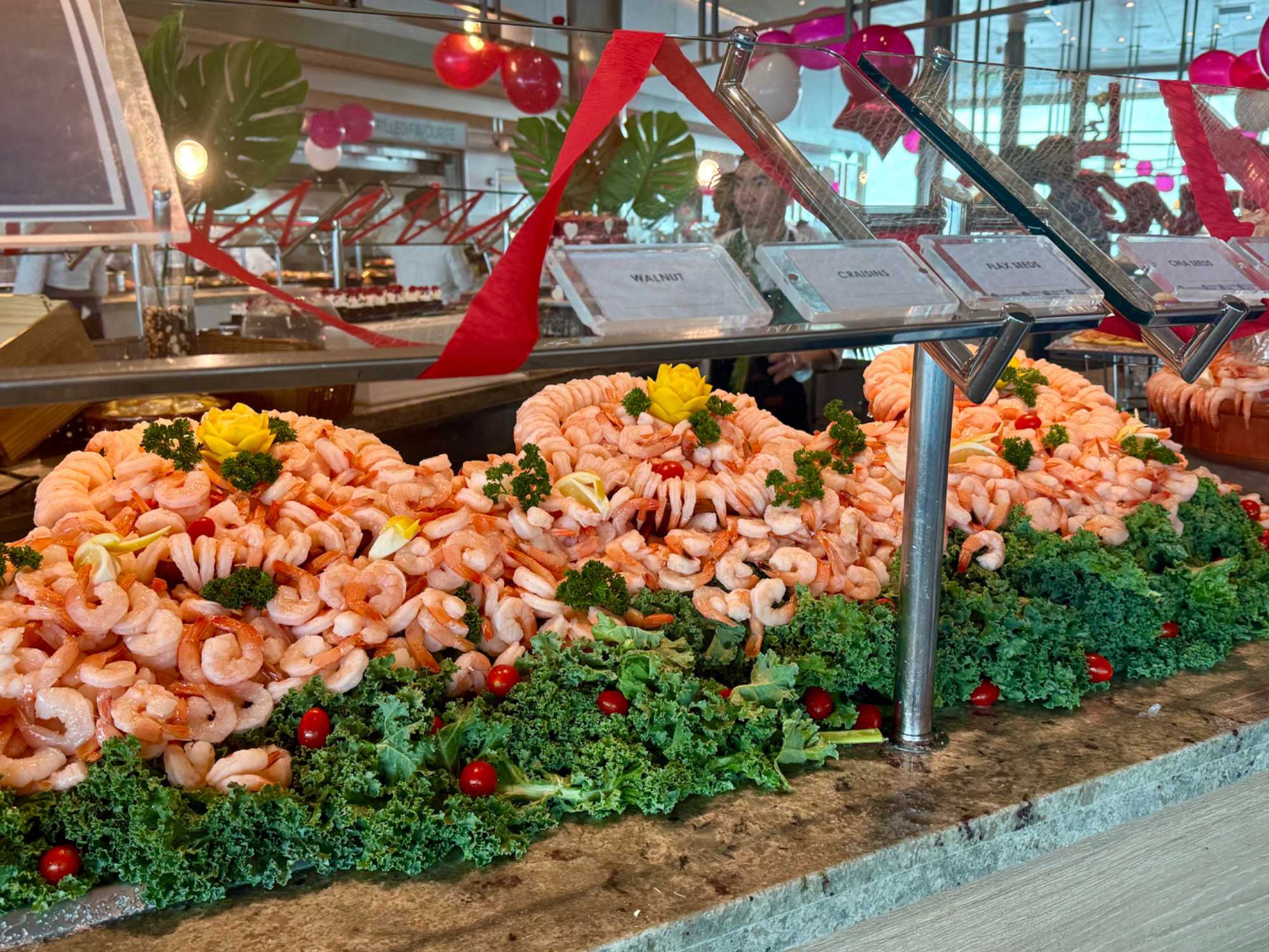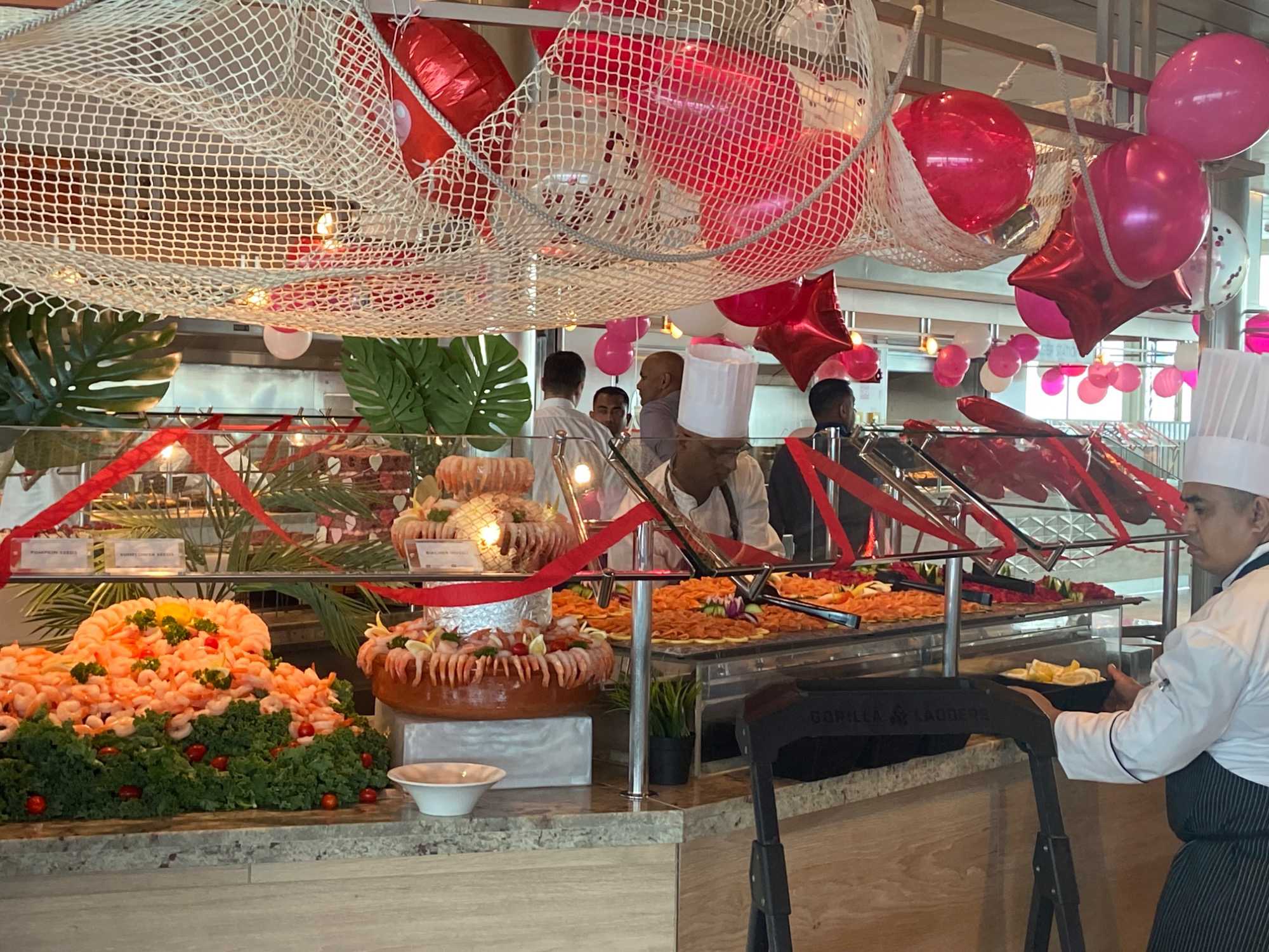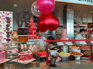 Regarder les photos du buffet du midi de l’Ocean Café. Vous avez remarqué qu’ils ont pris la Saint-Valentin « à coeur » eux aussi? Les mets présentés avaient bien souvent la forme de coeur, les couleurs typiques de la fête, le rouge, le rose. Le chefs et ses acolytes ont débordé de créativité dans la présentations de chacun des plats et plus particulièrement pour la section des desserts. Des ballons et banderoles complétaient le décor. On va prendre 5 Kilos (c'est moins pire le dire en kilos qu'en livres hihi!,,) c'est sûr. Je vous le dis; le régime, c’est pour …demain. En attendant, vive le prosecco!