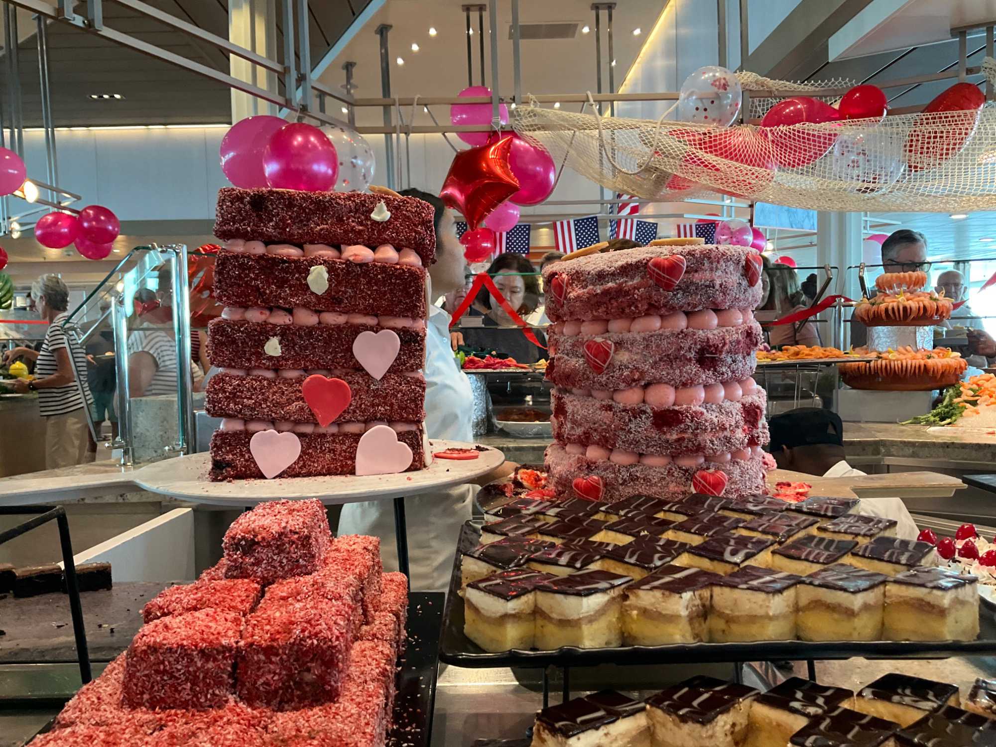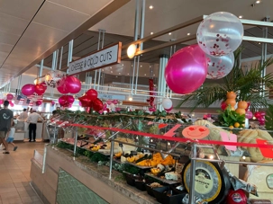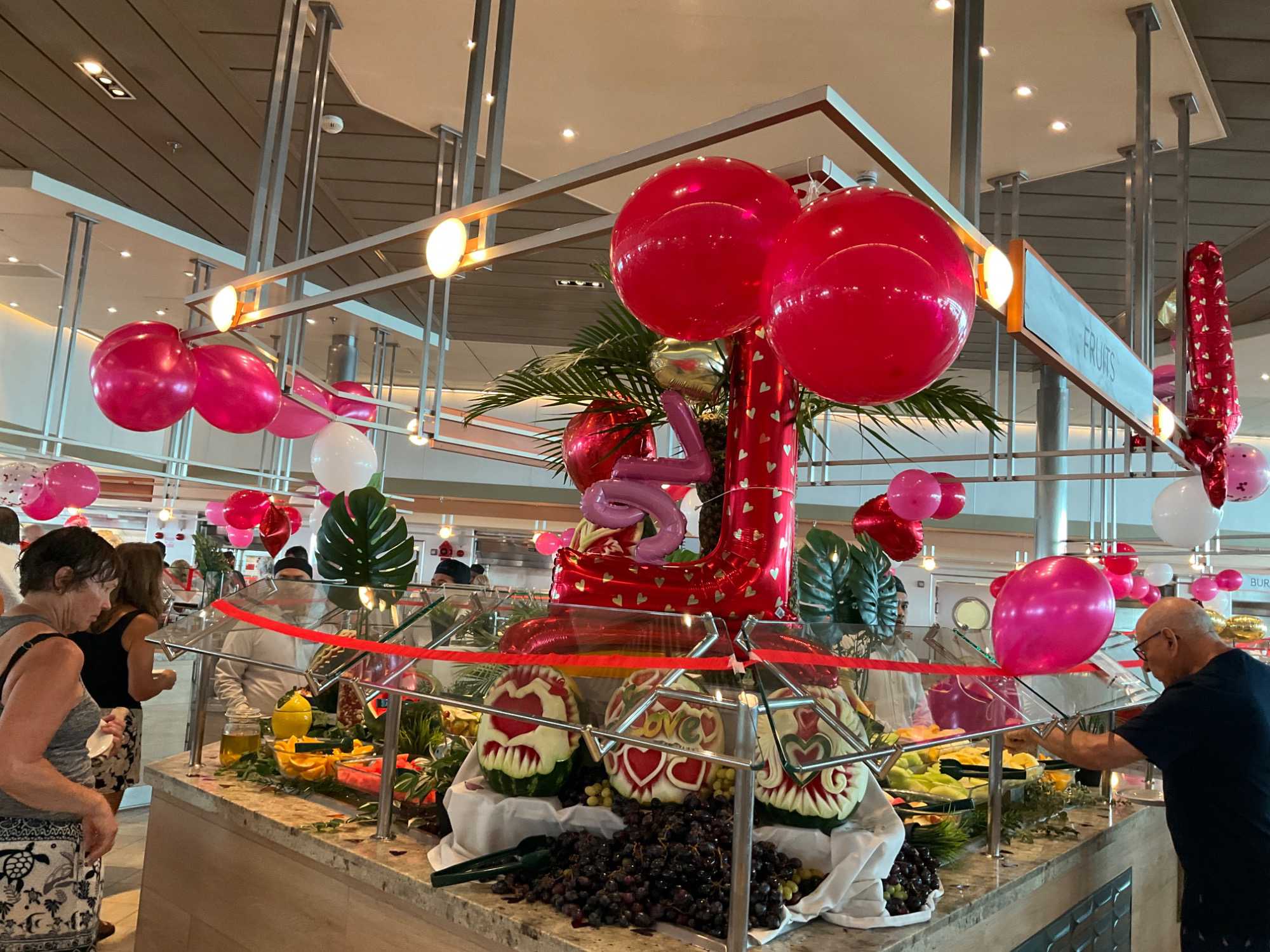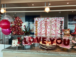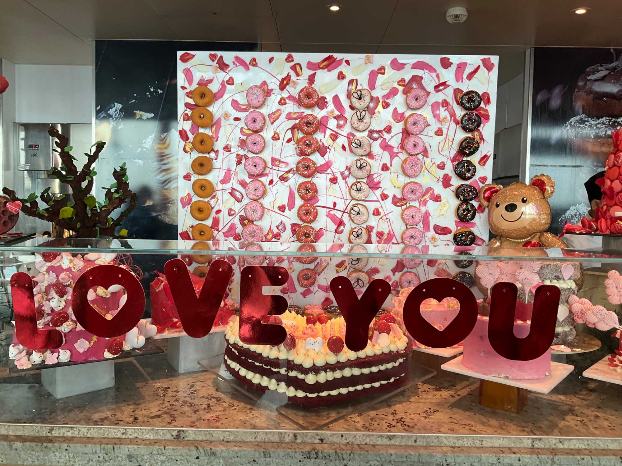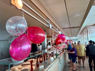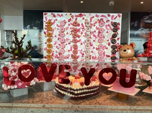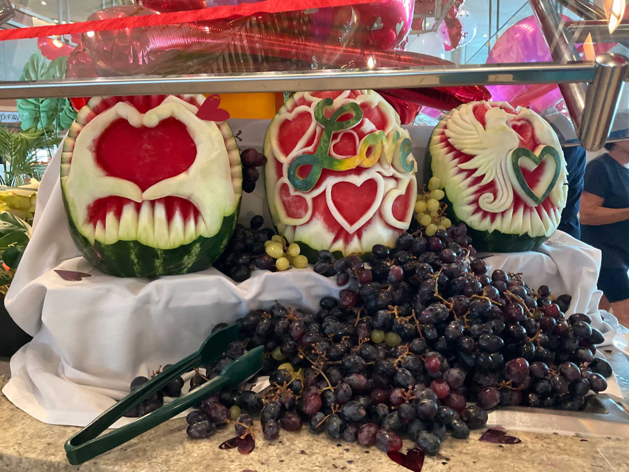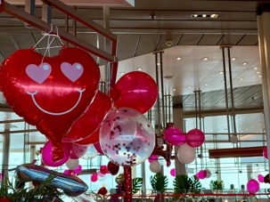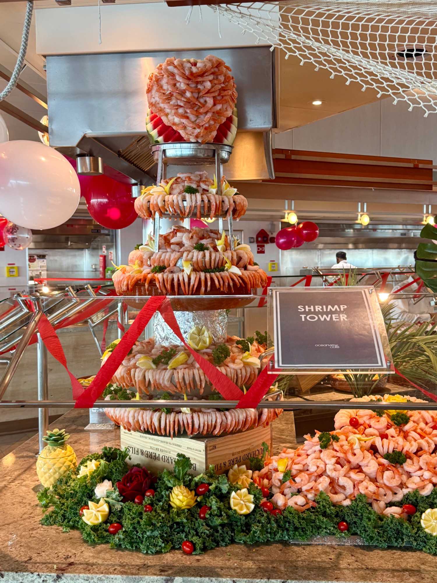 Regarder les photos du buffet du midi de l’Ocean Café. Vous avez remarqué qu’ils ont pris la Saint-Valentin « à coeur » eux aussi? Les mets présentés avaient bien souvent la forme de coeur, les couleurs typiques de la fête, le rouge, le rose. Le chefs et ses acolytes ont débordé de créativité dans la présentations de chacun des plats et plus particulièrement pour la section des desserts. Des ballons et banderoles complétaient le décor. On va prendre 5 Kilos (c'est moins pire le dire en kilos qu'en livres hihi!,,) c'est sûr. Je vous le dis; le régime, c’est pour …demain. En attendant, vive le prosecco!
