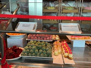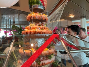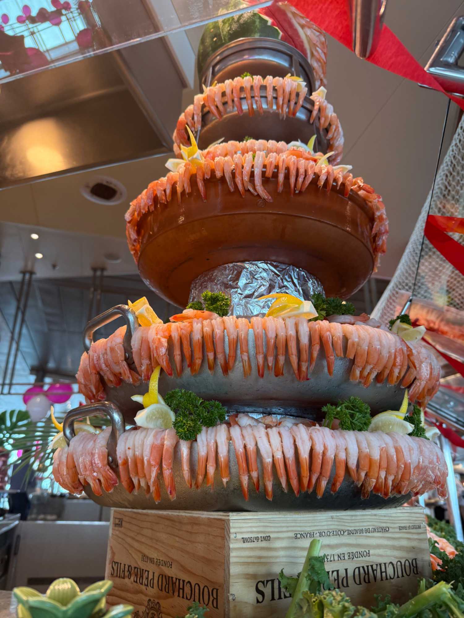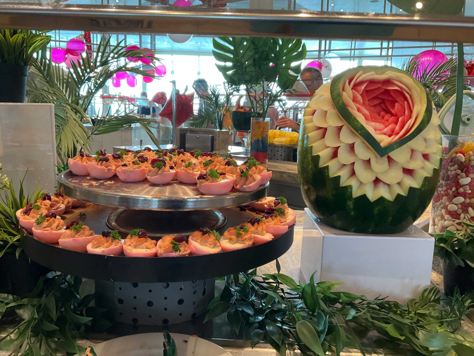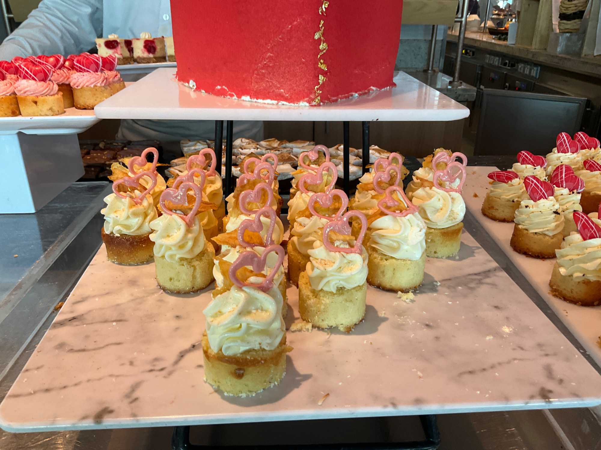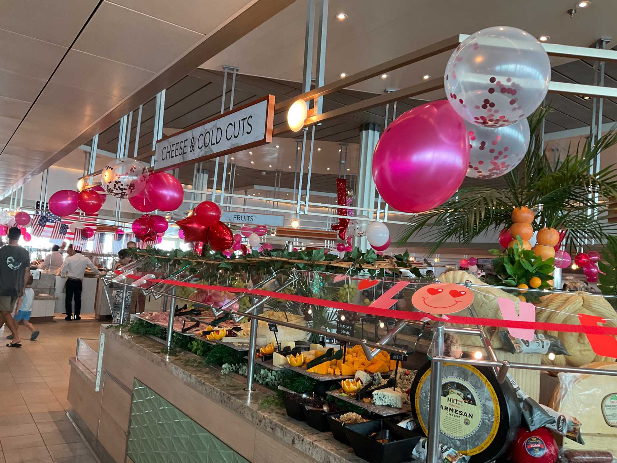 Regarder les photos du buffet du midi de l’Ocean Café. Vous avez remarqué qu’ils ont pris la Saint-Valentin « à coeur » eux aussi? Les mets présentés avaient bien souvent la forme de coeur, les couleurs typiques de la fête, le rouge, le rose. Le chefs et ses acolytes ont débordé de créativité dans la présentations de chacun des plats et plus particulièrement pour la section des desserts. Des ballons et banderoles complétaient le décor. On va prendre 5 Kilos (c'est moins pire le dire en kilos qu'en livres hihi!,,) c'est sûr. Je vous le dis; le régime, c’est pour …demain. En attendant, vive le prosecco!