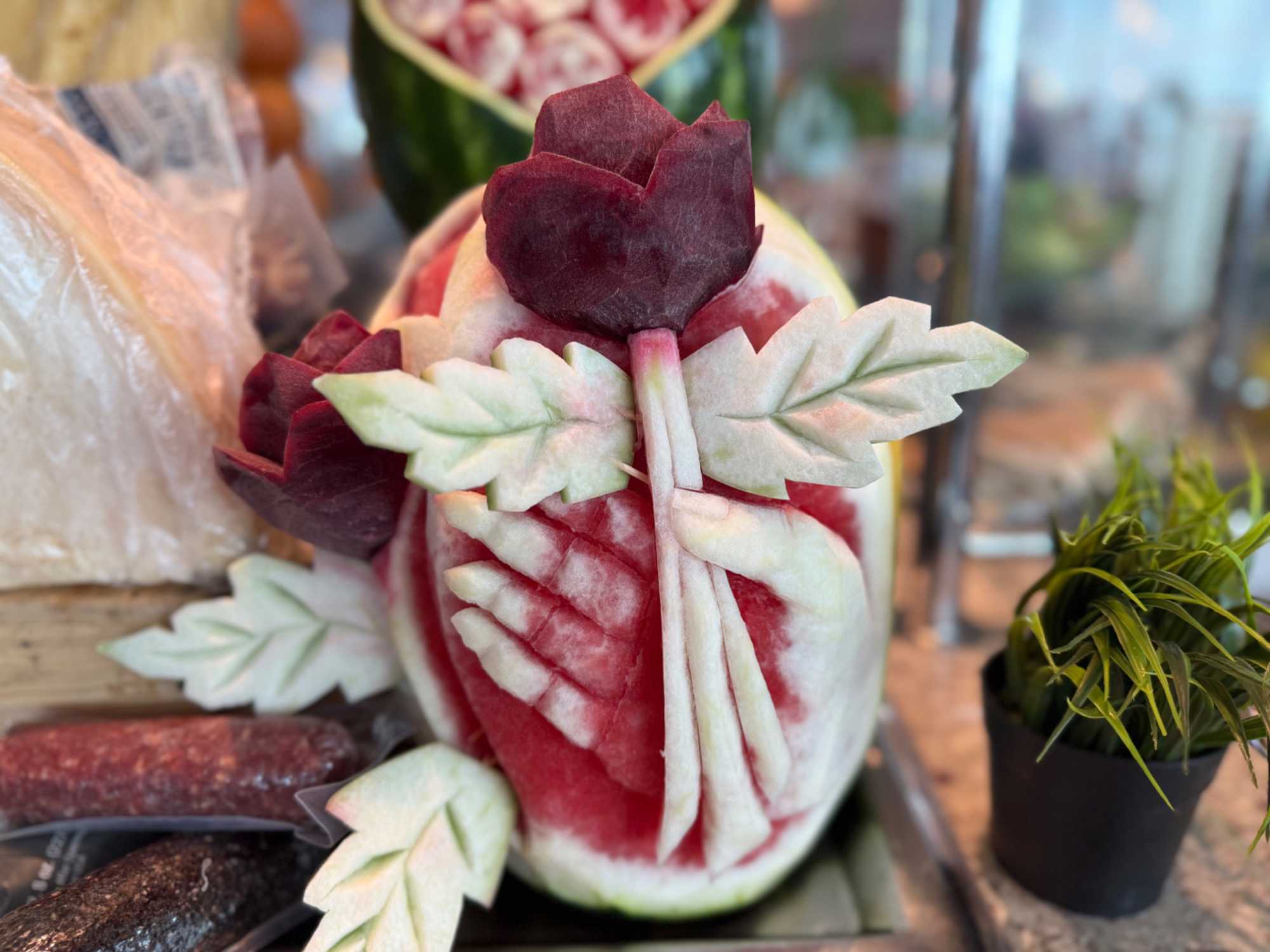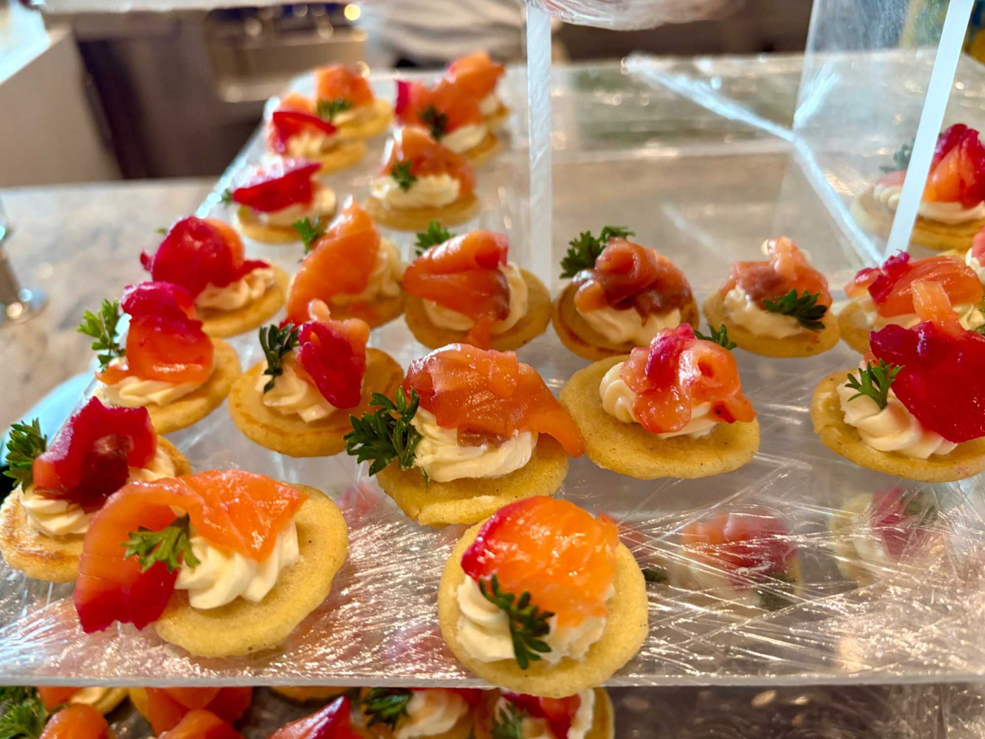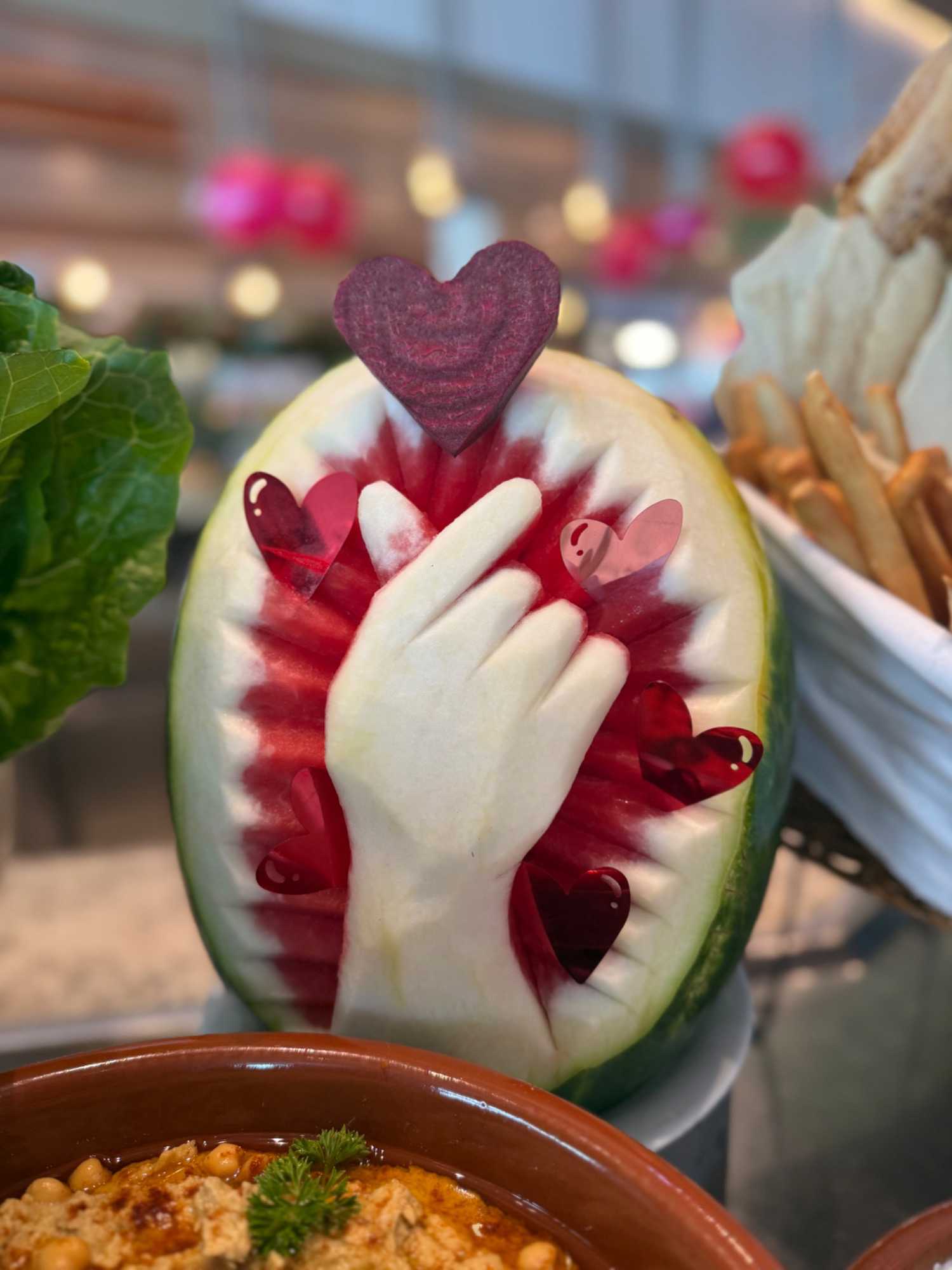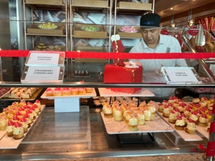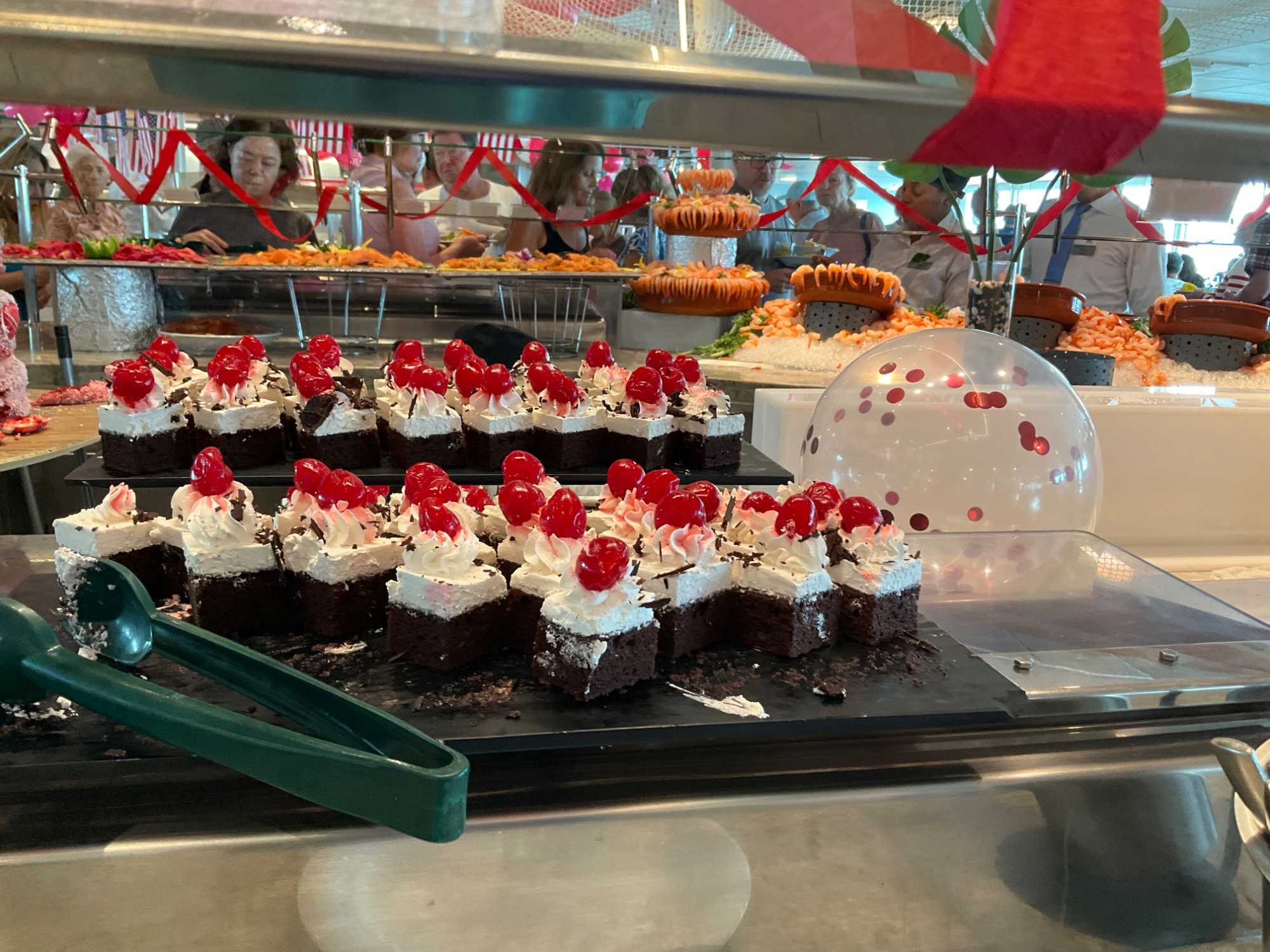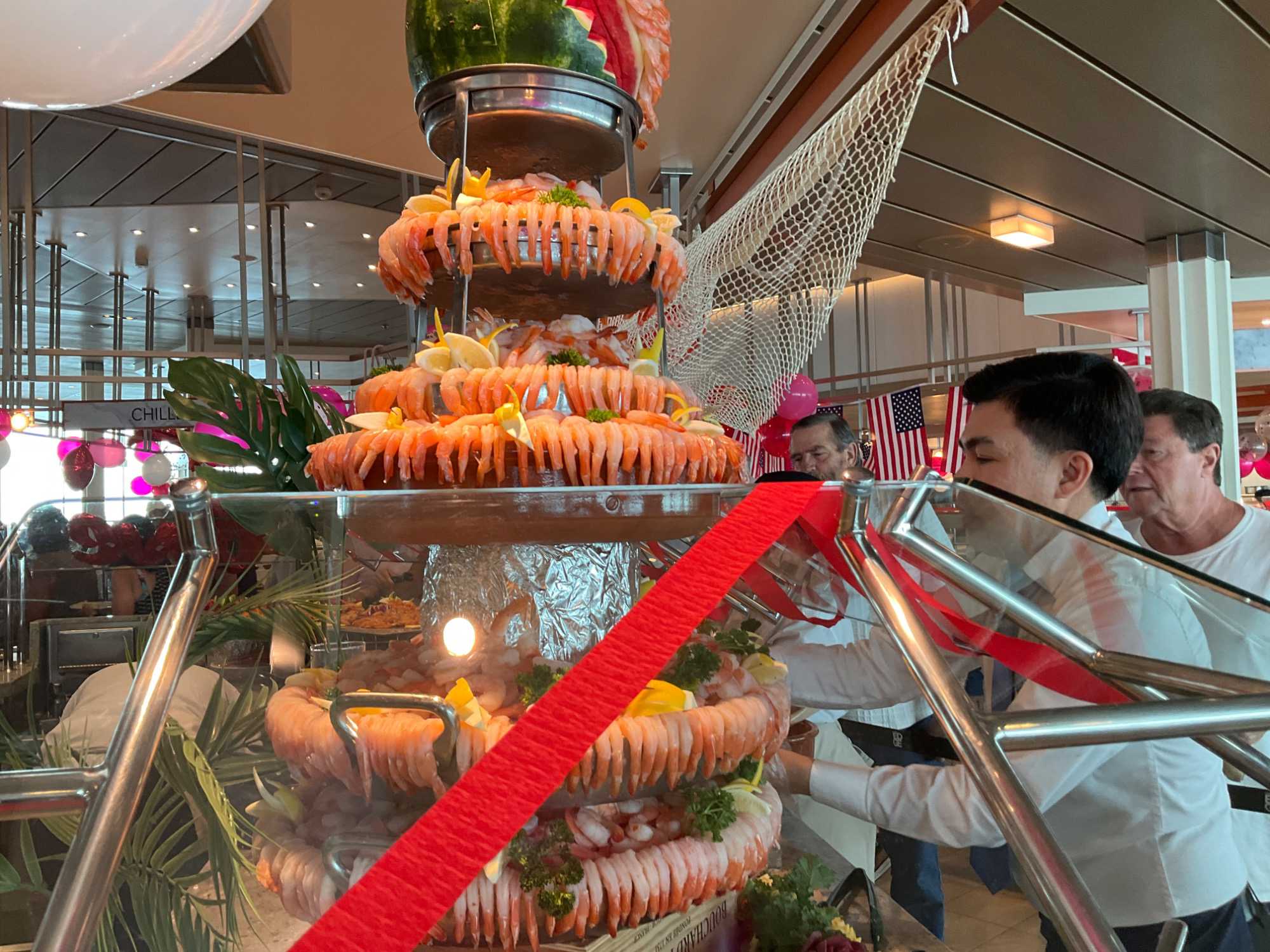 Regarder les photos du buffet du midi de l’Ocean Café. Vous avez remarqué qu’ils ont pris la Saint-Valentin « à coeur » eux aussi? Les mets présentés avaient bien souvent la forme de coeur, les couleurs typiques de la fête, le rouge, le rose. Le chefs et ses acolytes ont débordé de créativité dans la présentations de chacun des plats et plus particulièrement pour la section des desserts. Des ballons et banderoles complétaient le décor. On va prendre 5 Kilos (c'est moins pire le dire en kilos qu'en livres hihi!,,) c'est sûr. Je vous le dis; le régime, c’est pour …demain. En attendant, vive le prosecco!