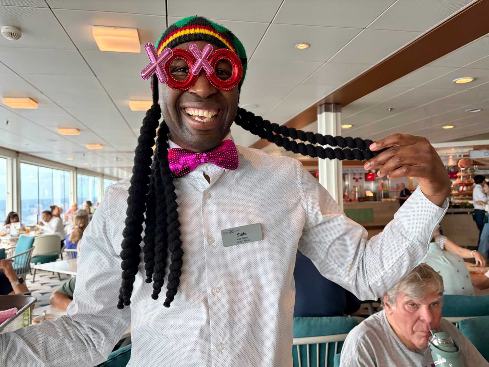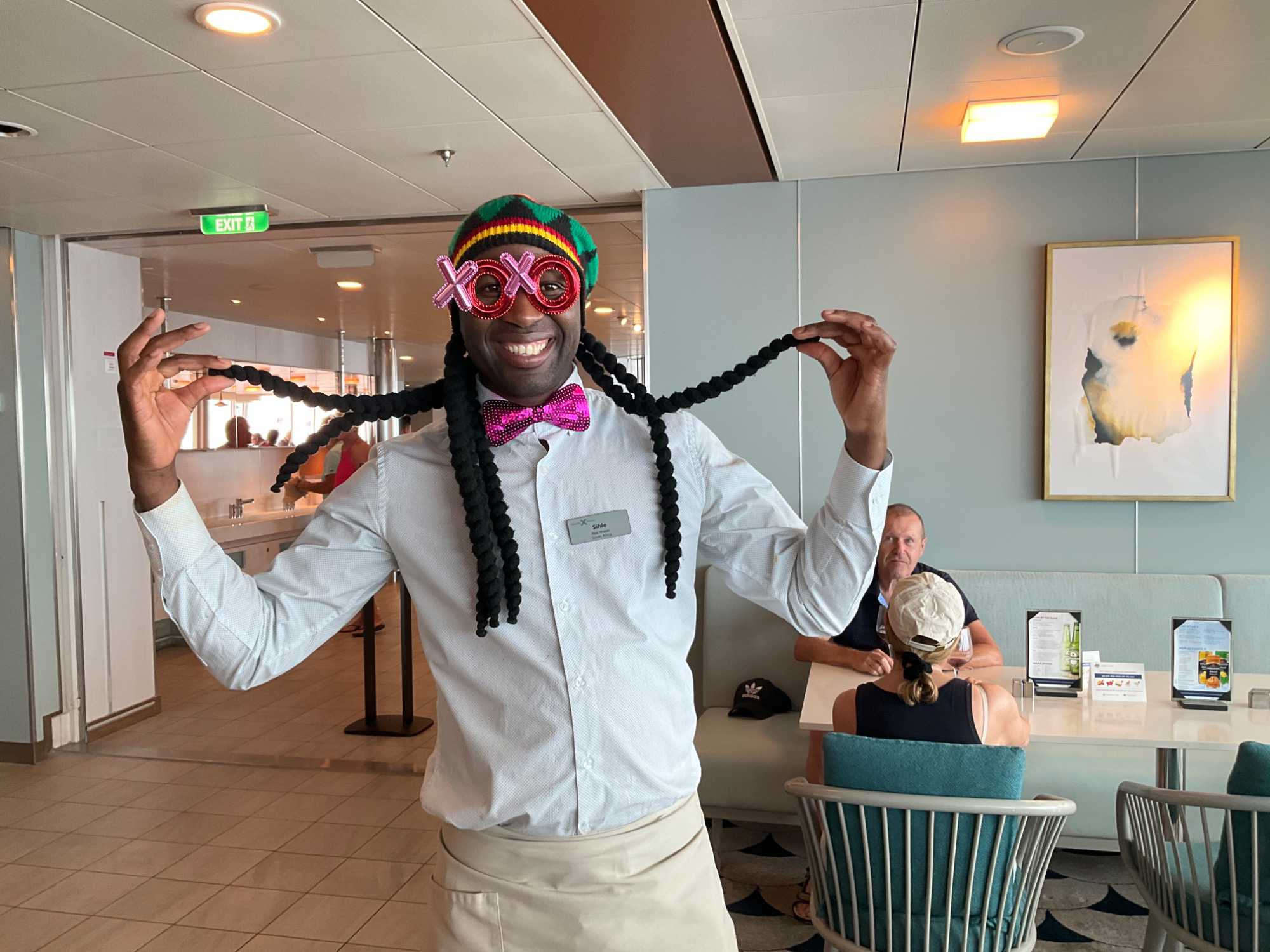 Quelle belle fantaisie d’entendre tous les croisiéristes venant des différents coins de la planète parler dans une kyrielle de langues dont certaines colorées, d’autres aux accents chantants. Il faut vous avouer que notre premier réflexe en parlant avec un membre du personnel est toujours de regarder son « tag » sur ses vêtements pour savoir quel pays ils quittent pendant quelques mois pour venir nous gâter lors de ses longues heures de travail sur le navire.