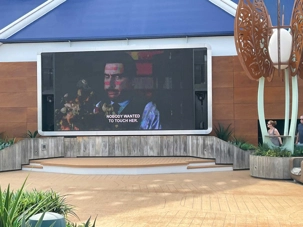 En après-midi, un écran monstre à l’extérieur présentait le film Chocolat. J’ai d’ailleurs vu des gens, pas de notre groupe bien entendu, manqués quelques petits bouts de la présentation...le vino sur l'heure du midi invite parfois les voyageurs .... à somnoler.