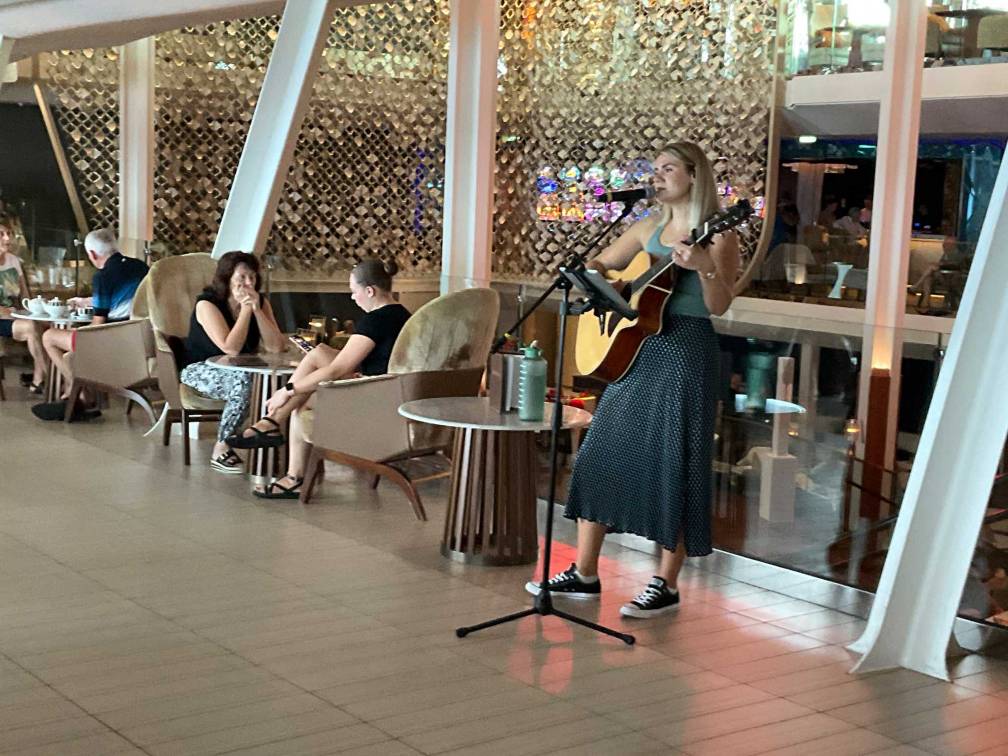 Que ce soit avant ou après le repas, plusieurs se sont rendus entendre le spectacle de Belinda Adams, ancienne candidate de La Voix. Il paraît qu’elle a donné une excellente performance. Un beau spectacle que nos voyageurs ont eu le plaisir d’assister à l’occasion de la Saint-Valentin.