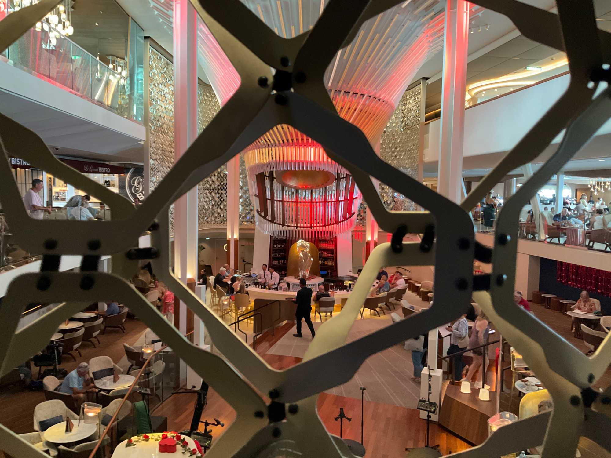 Quelle belle complicité déjà entre nous lorsqu’au cours de ces journées en mer, nous nous rencontrons ici et là près des ascenseurs ou ailleurs et, avons une foule de choses à nous raconter.