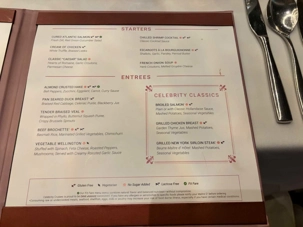 Je peux vous confirmer que certains voyageurs ont profité d'un dîner en salle à manger pour se gâter un peu. Les repas du midi y sont tout aussi bons que ceux du soir en version légère…à moins de choisir le burger!