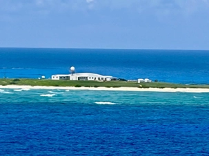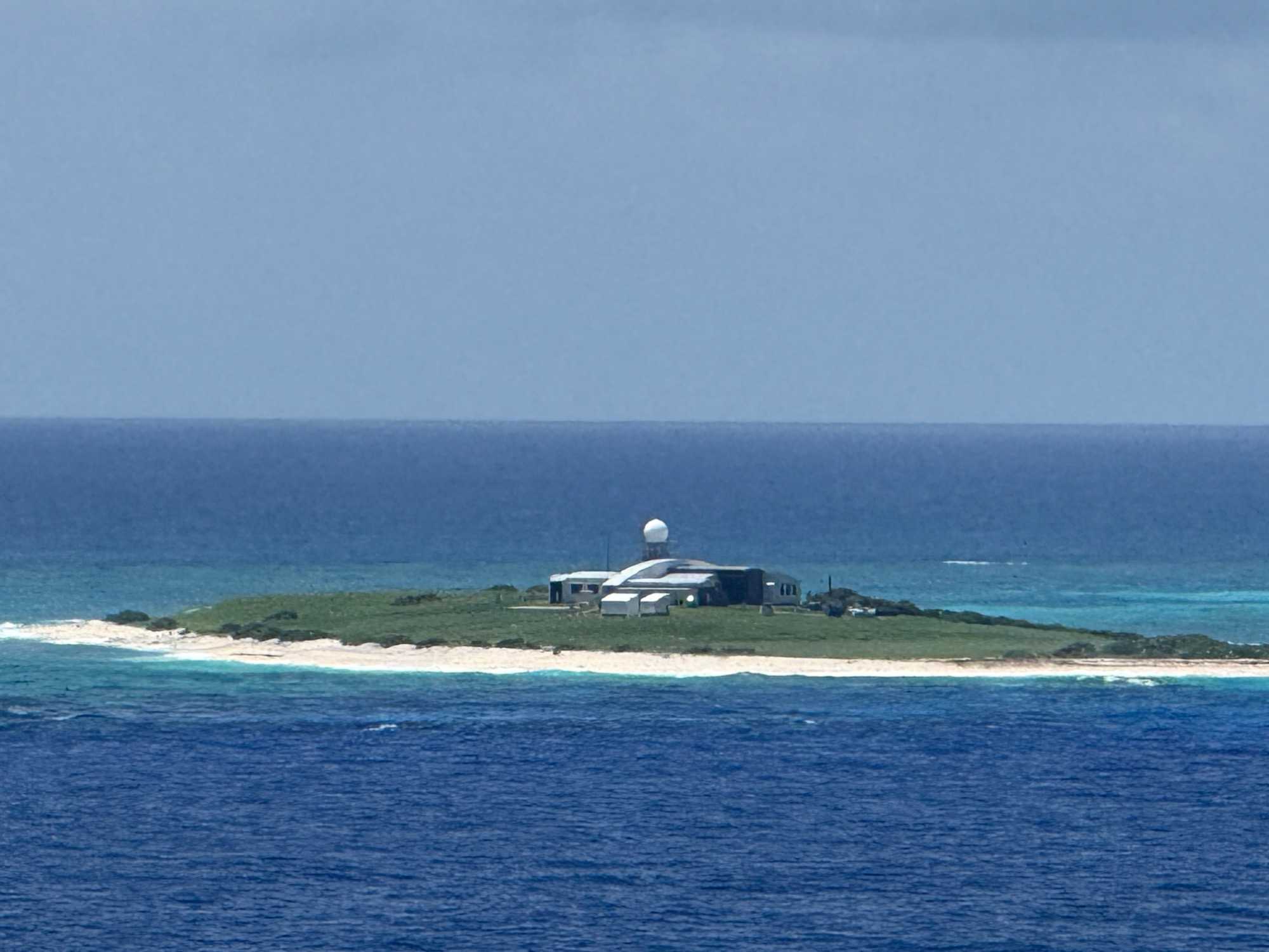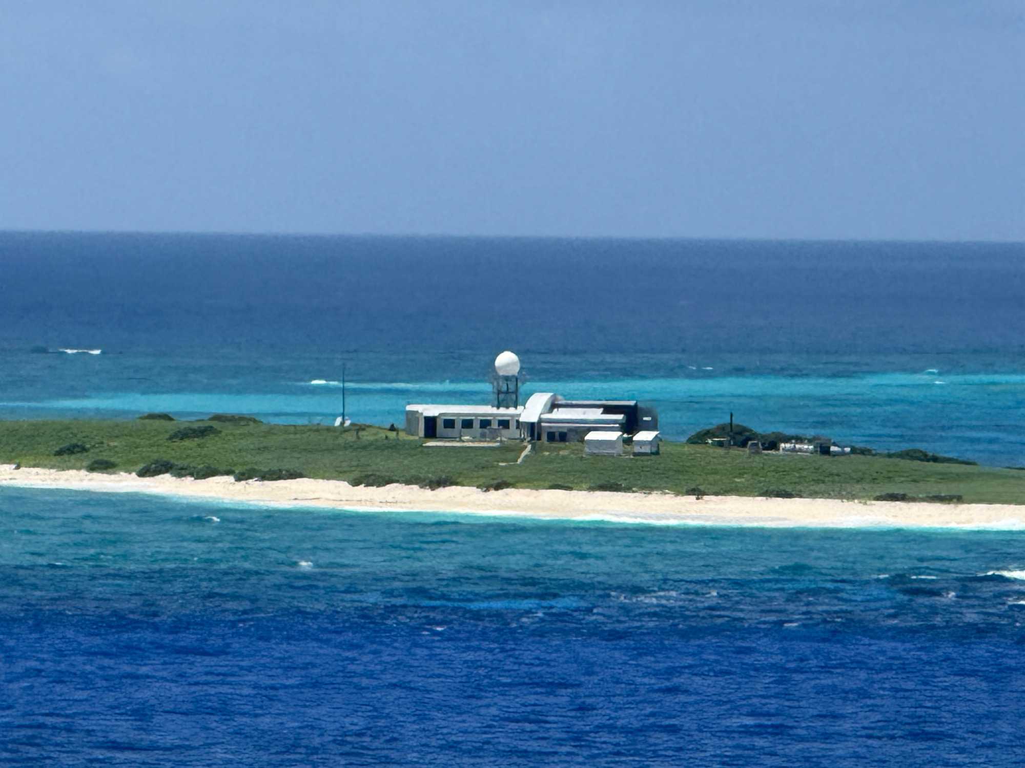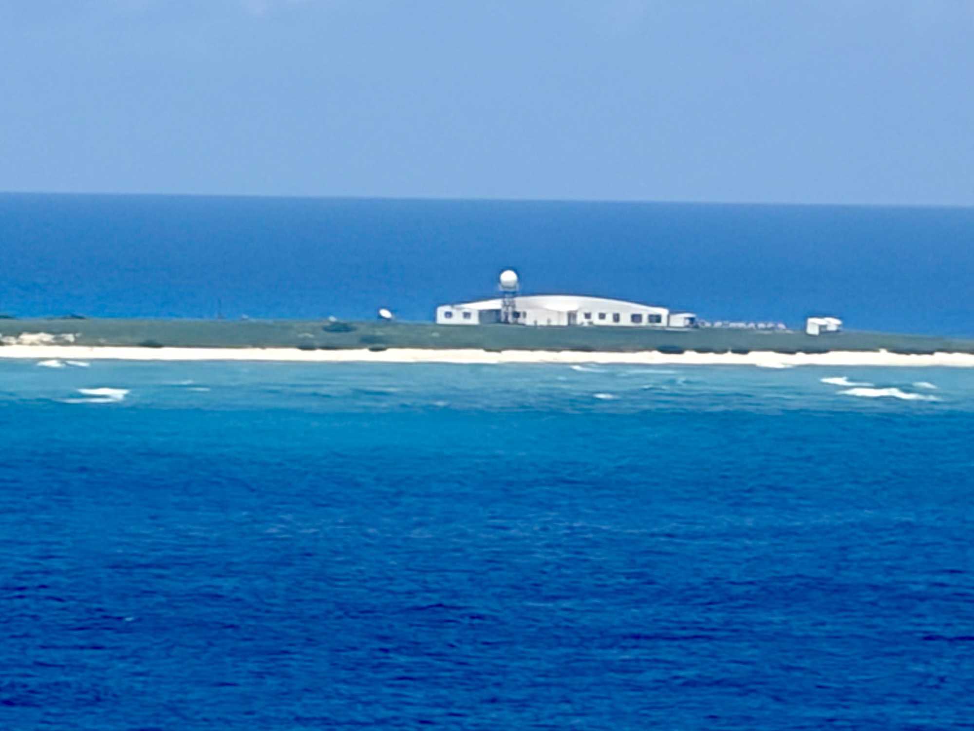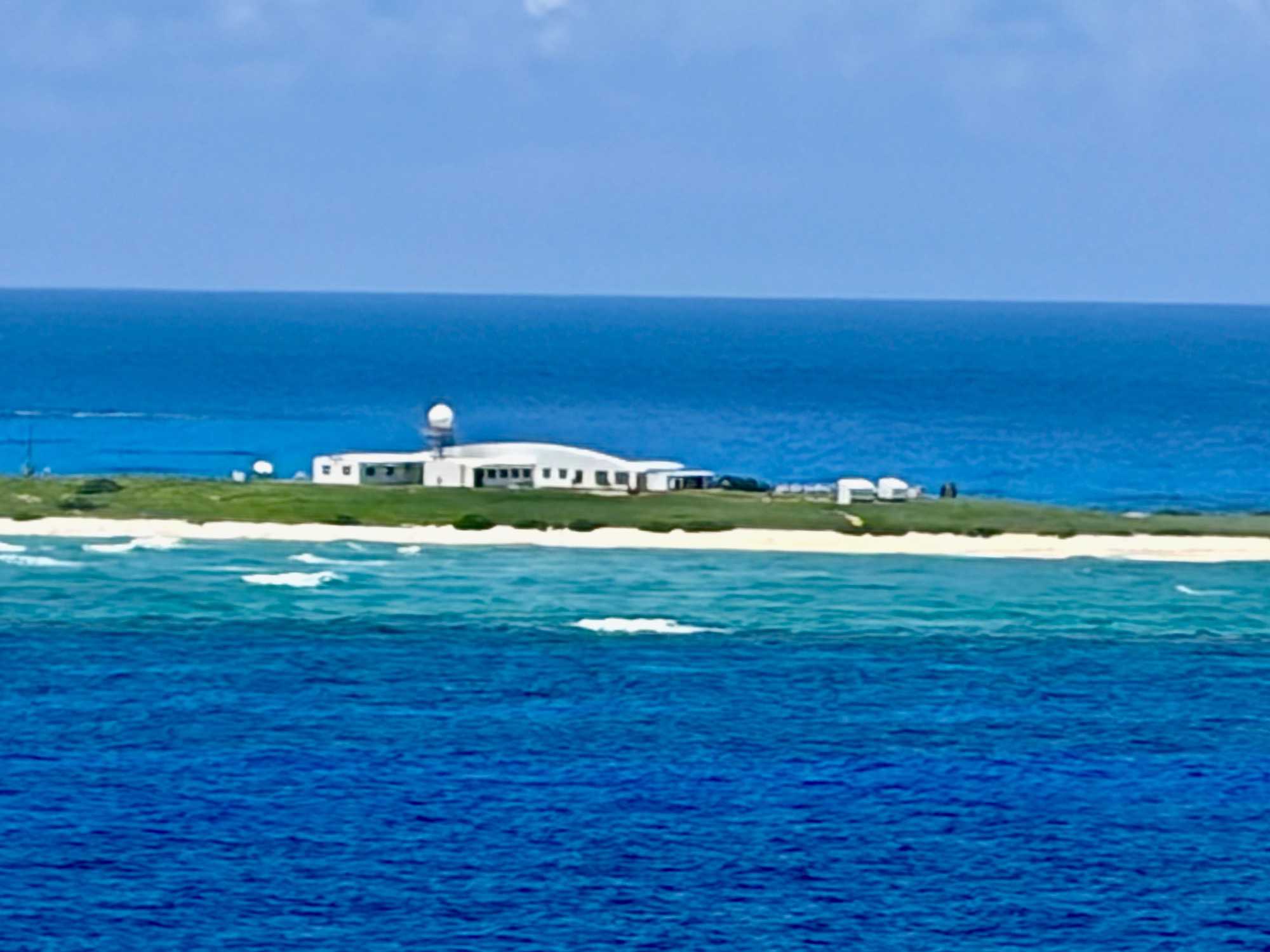Quelle ne fut pas notre surprise de voir au loin, parmi cette mer émeraude, entourée de massifs coraliens, un bâtiment plat isolé, et aucun voisin à l’horizon. Bien sûr, nous ne pouvions pas accoster sur cette réserve protégée. Les espèces de la faune aviaire qui y ont élu domicile en ont fait un lieu de nidification et de reproduction important pour chacune des nombreuses espèces d'oiseaux marins, notamment des fous.
