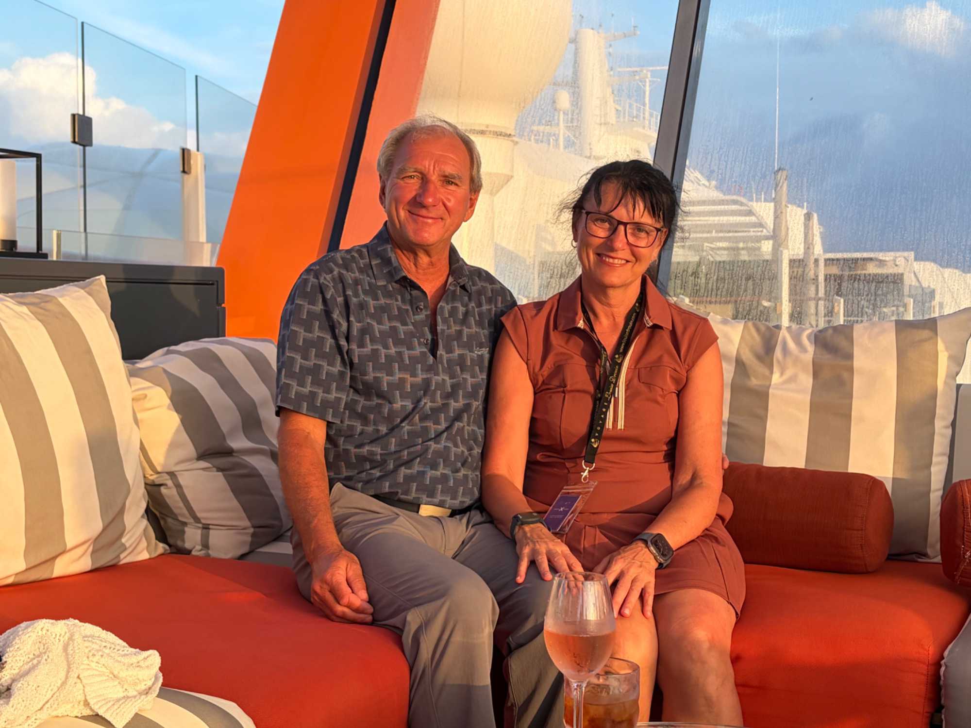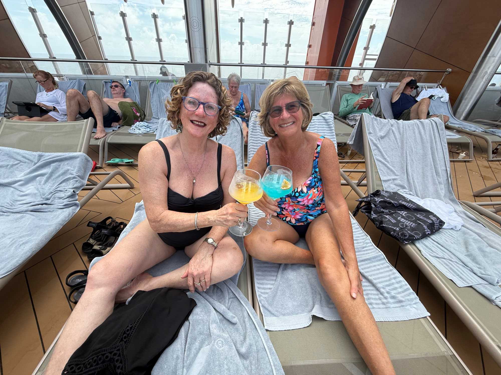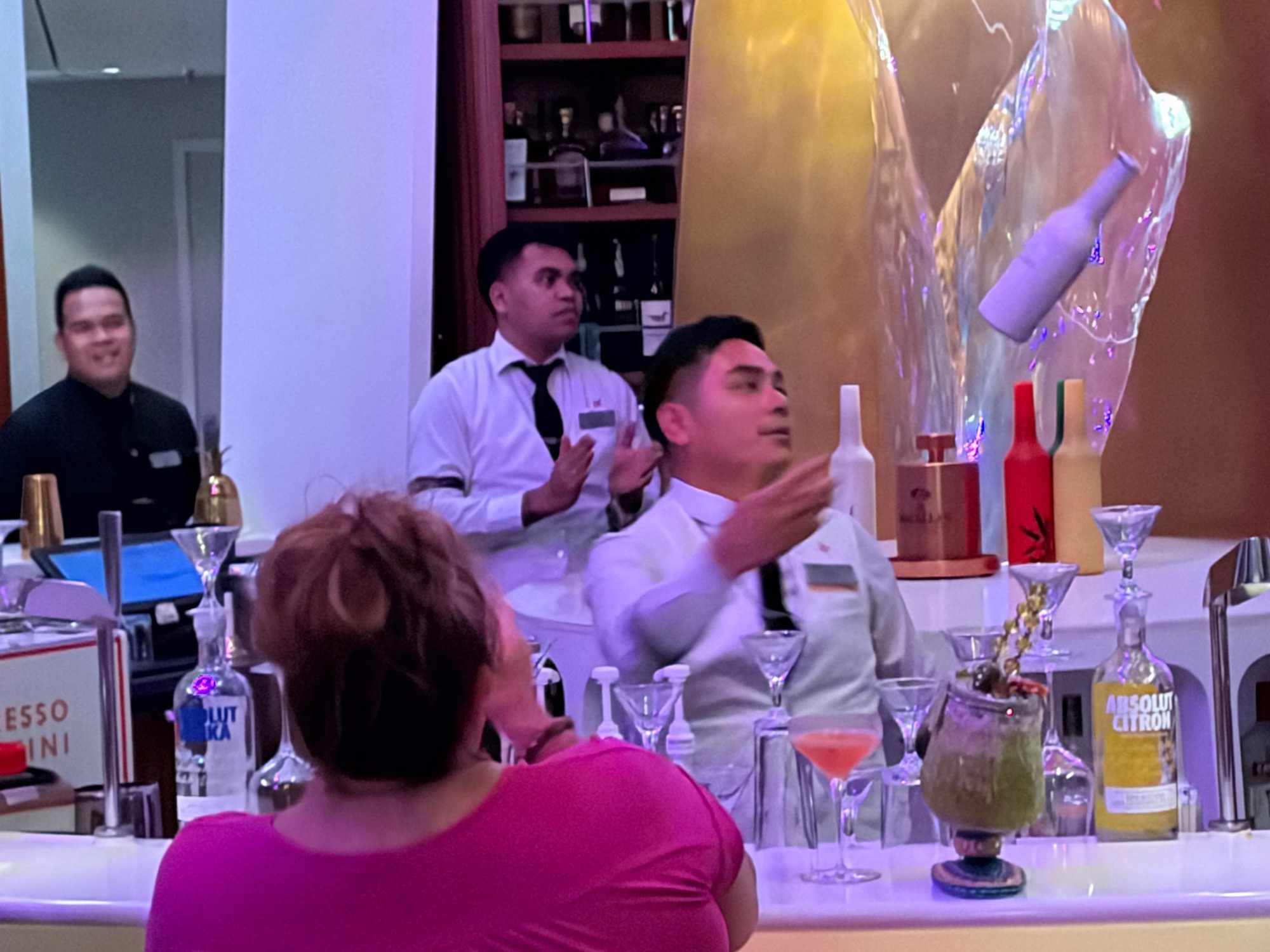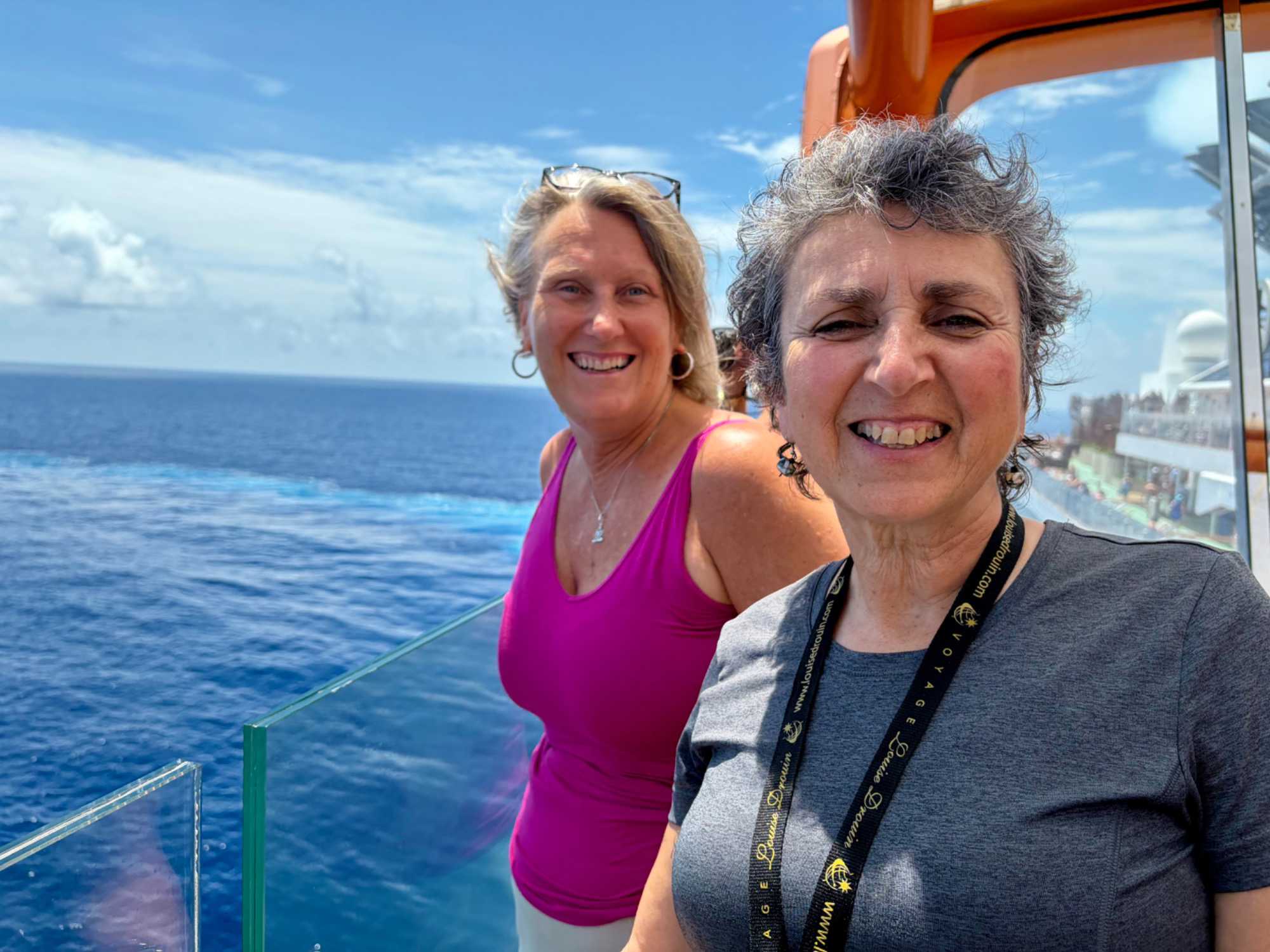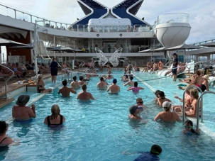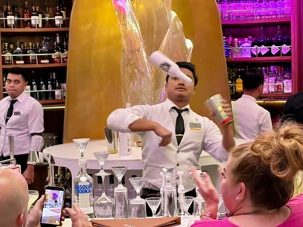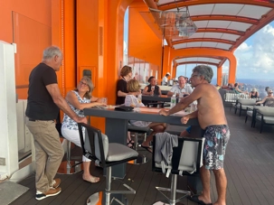 Pour les plus courageux qui acceptent de se coucher plus tard, il y a eu la célèbre discothèque silencieuse où nous portons un casque d’écoute avec un choix de trois musique différentes. Brigitte, Renée, André, Josée, moi-même sans oublier notre valeureux danseur Yvon, nous nous sommes bien amusés en alternant nos choix musicaux passant du latino, aux disco des années 70-80 et nous déhanchant également sur des musiques plus récentes mais, nous n’étions pas les seuls. La piste de danse affichait complète surtout avec ce groupe de dames aux perruques de toutes les couleurs qui avaient vraisemblablement décider de se laisser aller en suivant le rythme d’une petite dame noire ma foi fort énergique. Une expérience à vivre au moins une fois lors d‘une croisière.