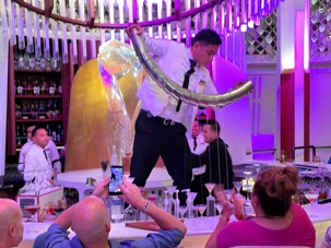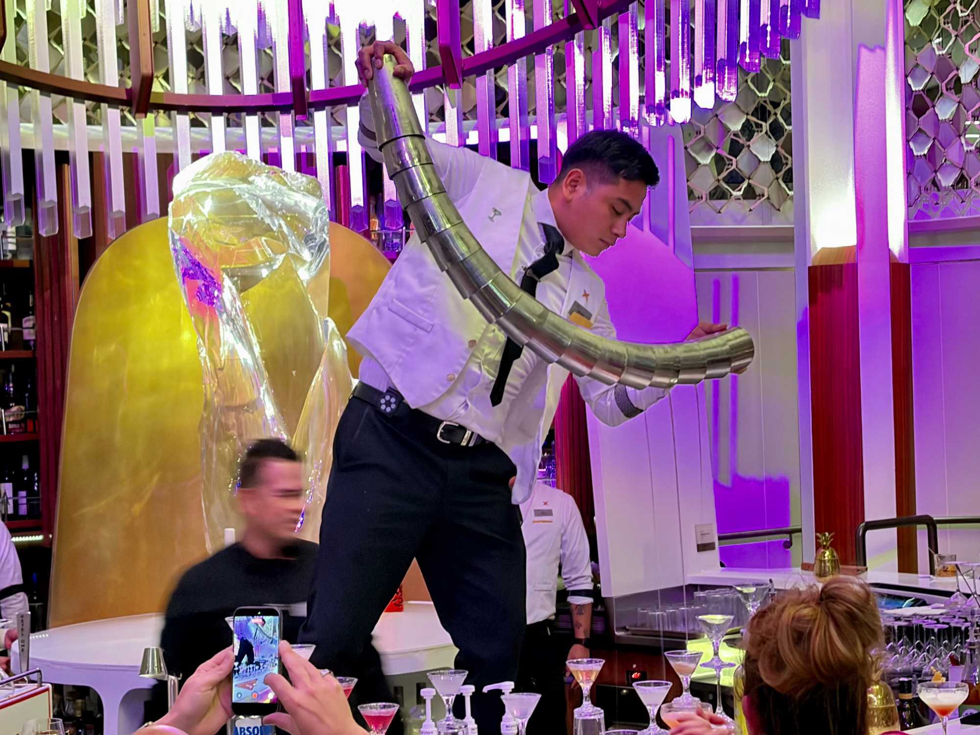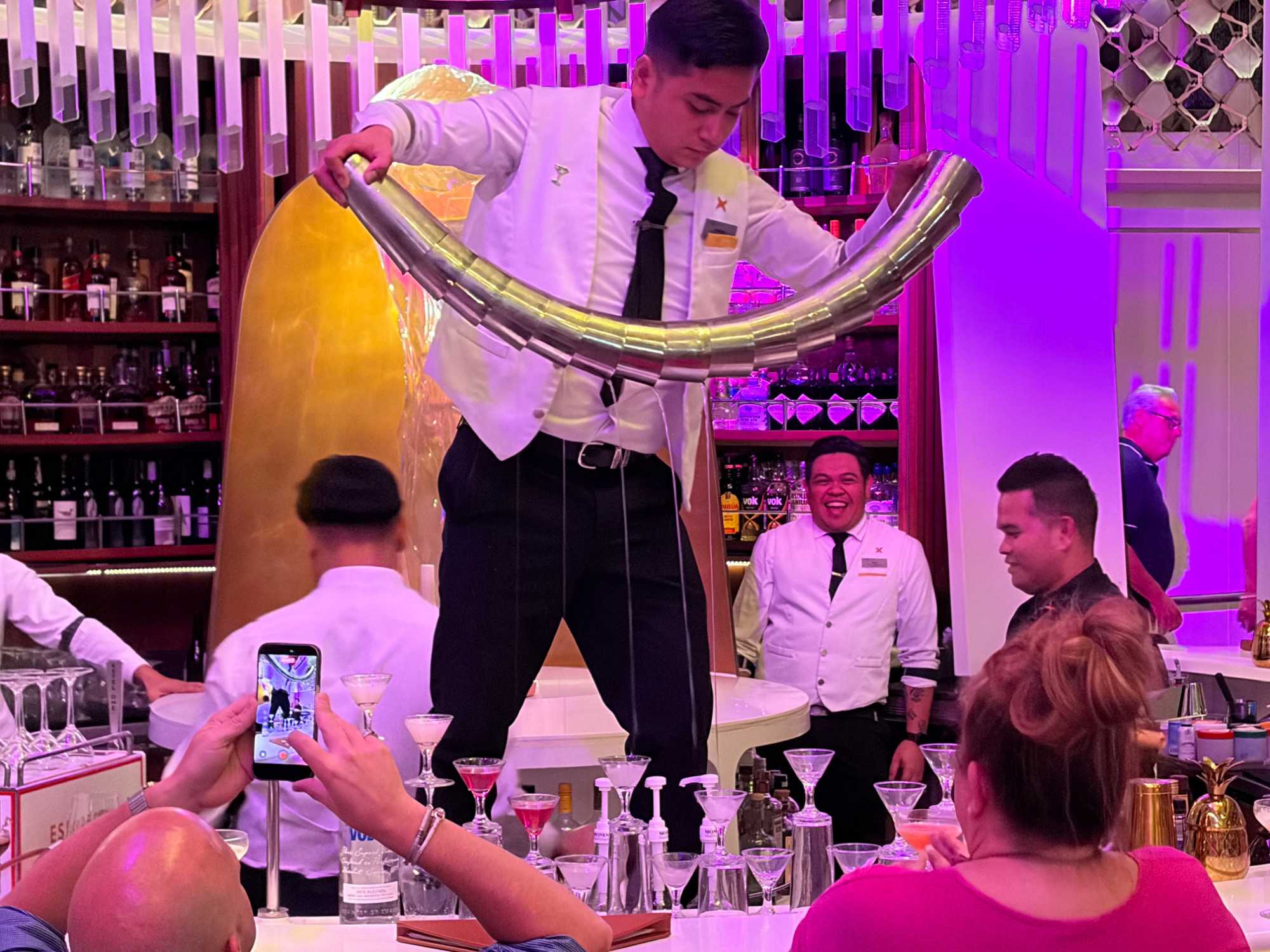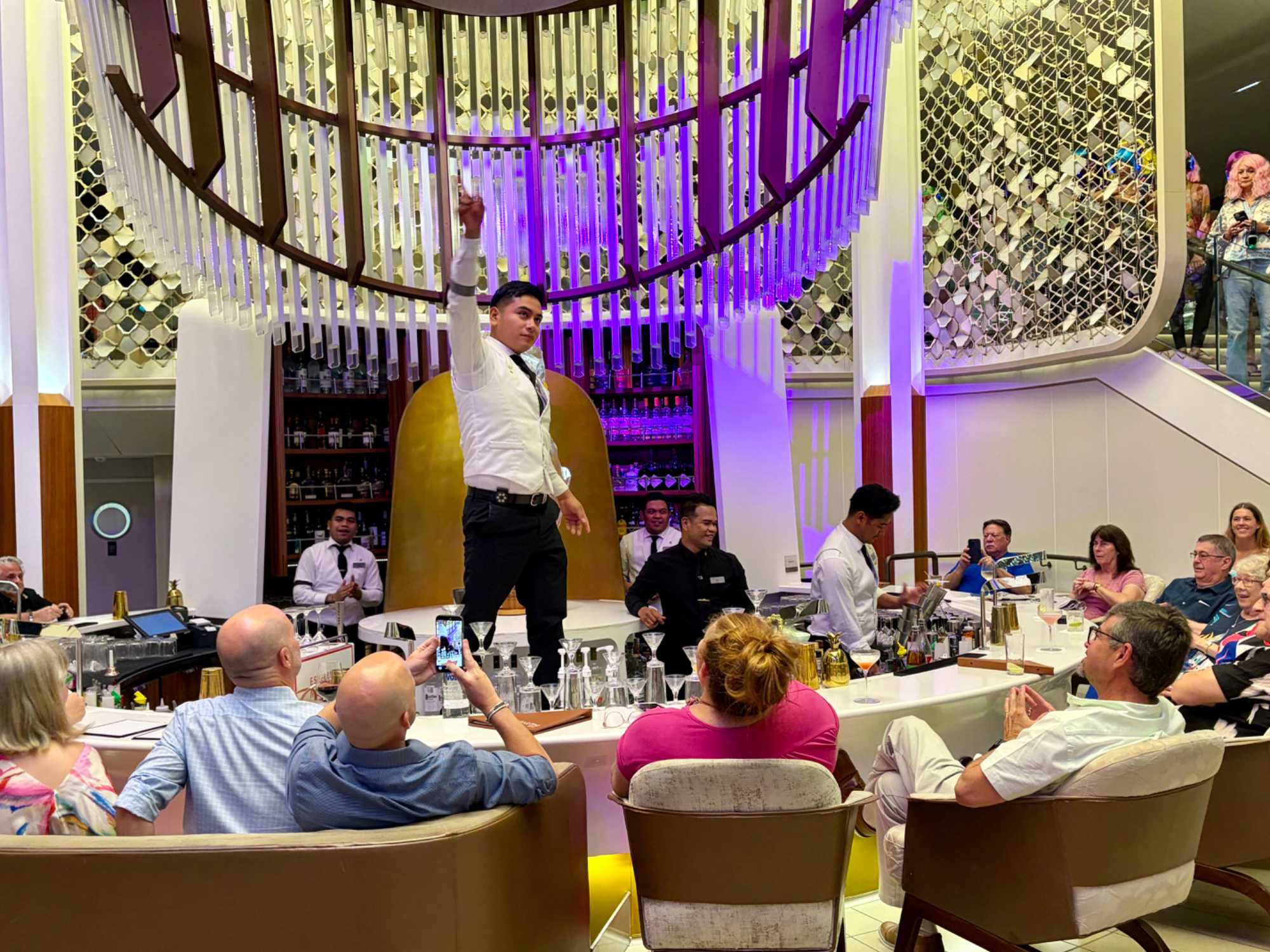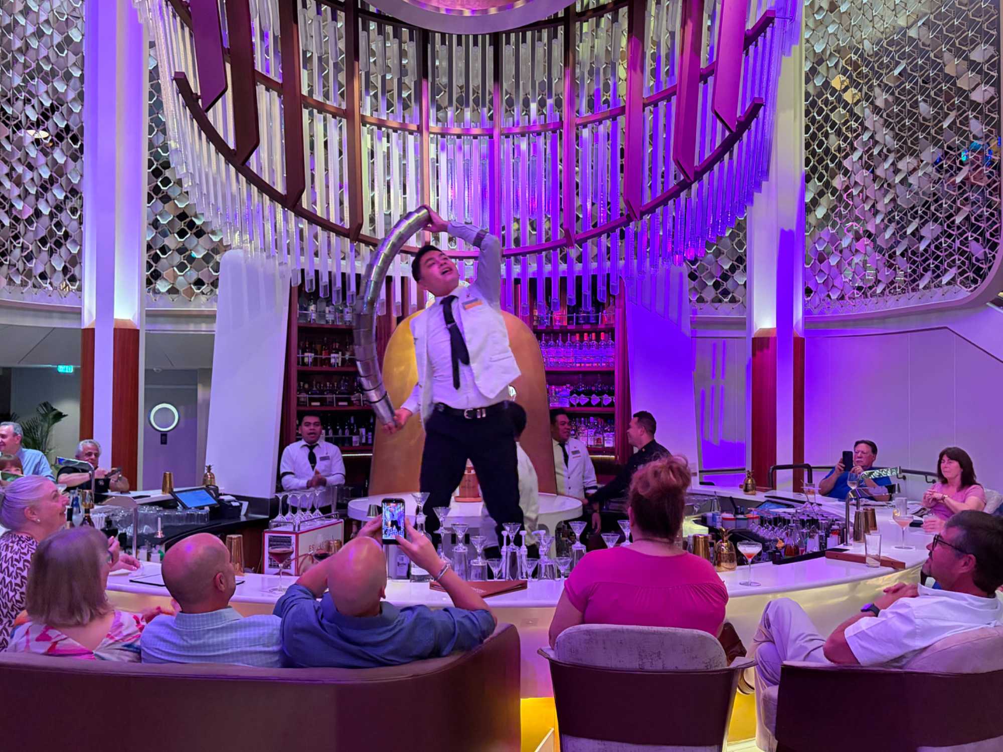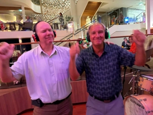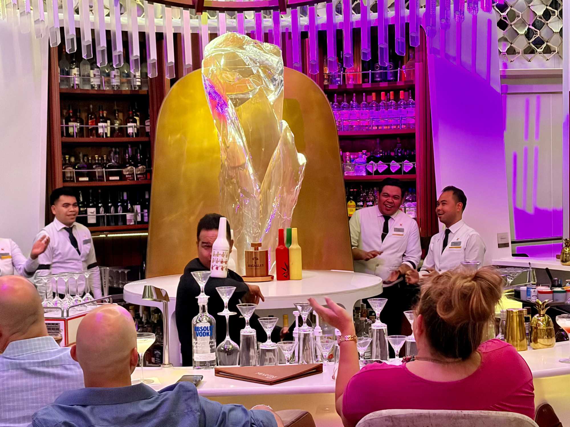 Pour les plus courageux qui acceptent de se coucher plus tard, il y a eu la célèbre discothèque silencieuse où nous portons un casque d’écoute avec un choix de trois musique différentes. Brigitte, Renée, André, Josée, moi-même sans oublier notre valeureux danseur Yvon, nous nous sommes bien amusés en alternant nos choix musicaux passant du latino, aux disco des années 70-80 et nous déhanchant également sur des musiques plus récentes mais, nous n’étions pas les seuls. La piste de danse affichait complète surtout avec ce groupe de dames aux perruques de toutes les couleurs qui avaient vraisemblablement décider de se laisser aller en suivant le rythme d’une petite dame noire ma foi fort énergique. Une expérience à vivre au moins une fois lors d‘une croisière.