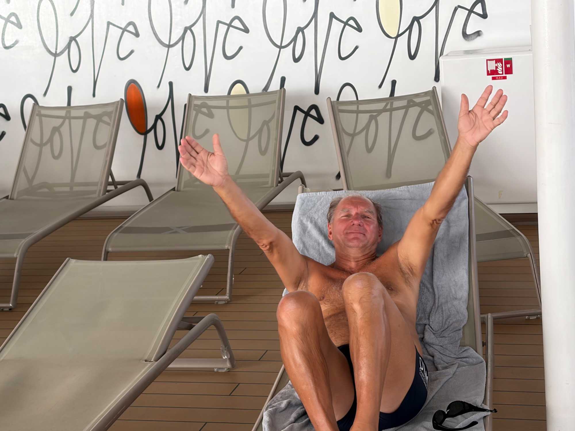 Ce matin, pas de lève-tôt à l’horizon. Ils ont bien raison nos voyageurs puisque nous restons à bord toute la journée. Alors certains débutent leur entraînement de marche et de longueurs de piscine très tôt car la journée s’annonce excessivement chaude.