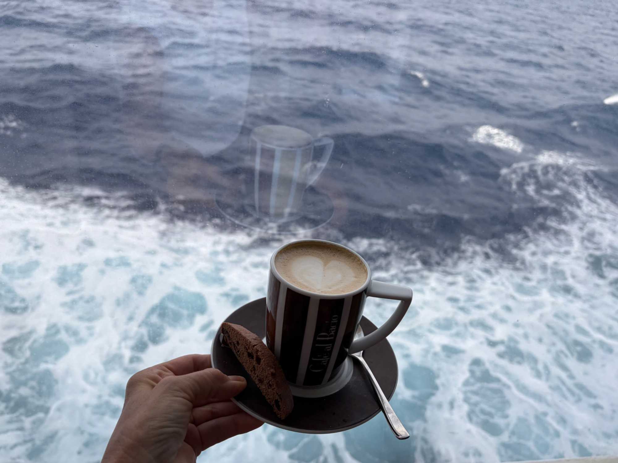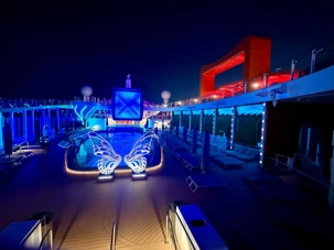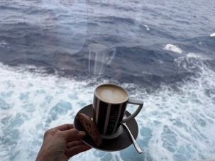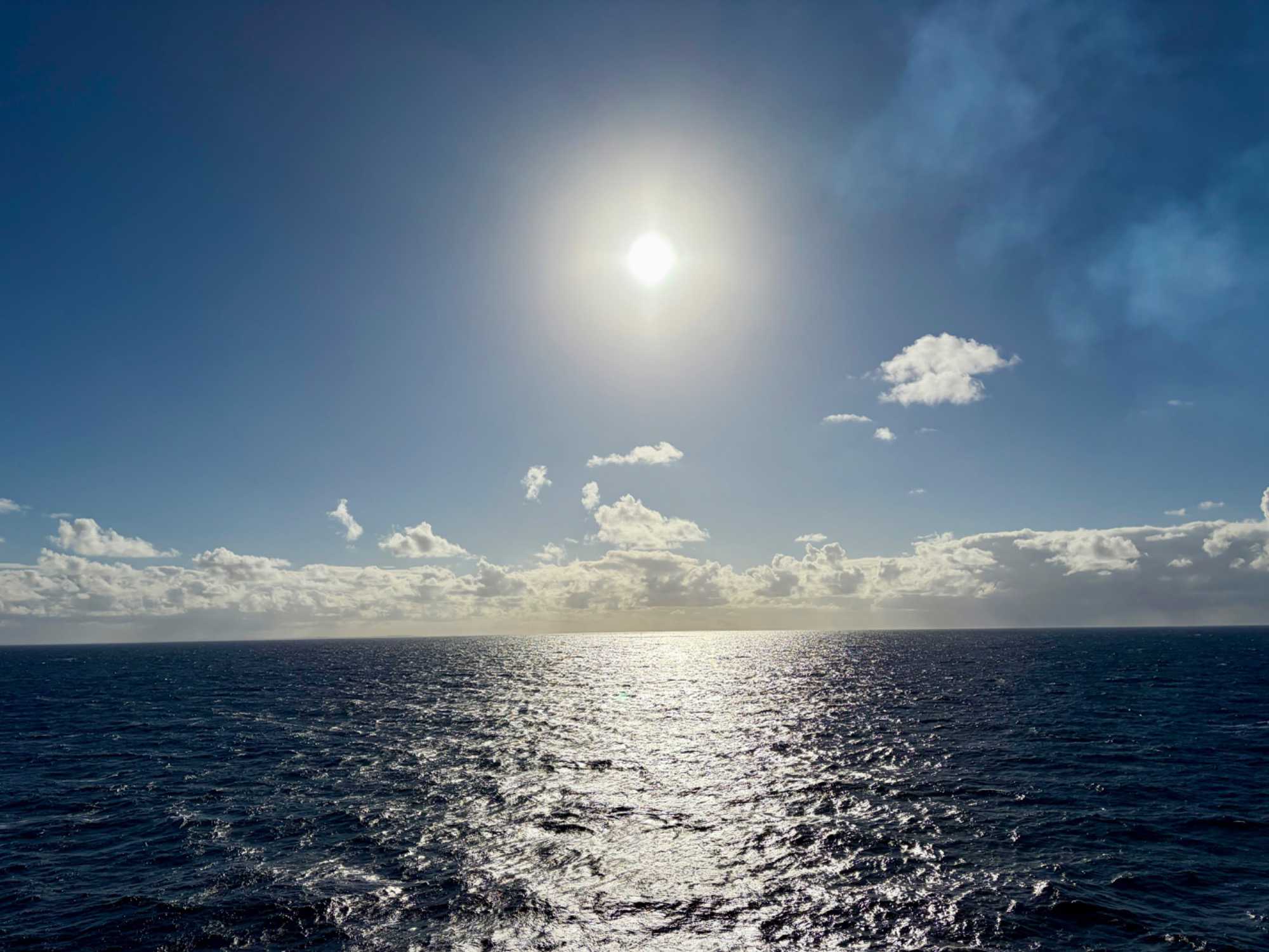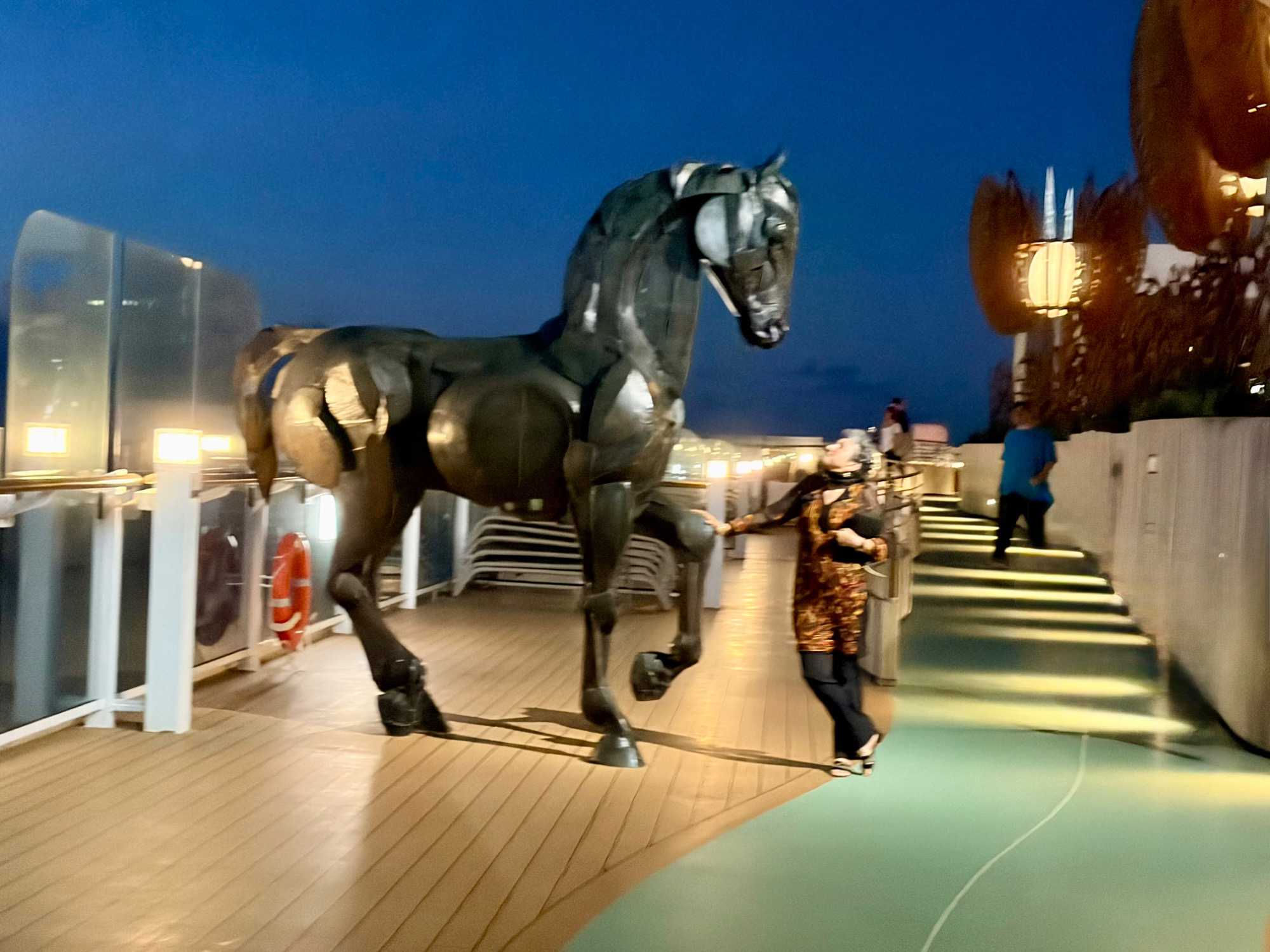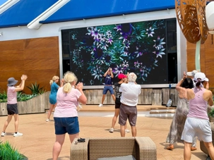 C’est notre dixième journée en mer et on s’habitue rapidement à ce rythme, ce laisser-aller, on se laisse volontiers voguer sur les flots bleus, après avoir eu un peu peur de la météo ce matin car tout était trempé sur les ponts à notre réveil, mais le soleil est réapparu au déjeuner et s’est envolé avec les gouttelettes d’eau. On profite de la vue des ponts supérieurs qui est magnifique. L’exploration en détails du navire, pour certains sur les ponts ou sur le bord de la piscine, visite hâtive aux bars pour ‘’expérimenter’’ les différents cocktails, marche active sur la piste de course du navire, lecture de bouquins personnels qu’on se promet de lire depuis des mois, jeux de cartes pour d’autres, tapis roulant pour etc., non mais quelle fierté pour une accompagnatrice d’avoir autant d’athlètes dans son groupe. À chacun sa discipline. Notre regard se tourne, et oh! il semble que ce soit un paquebot qui flotte au loin et là tout à coup, on se sent comme Rose et Jack sur le Titanic mais nous, sur le Celebrity Edge, on apprécie pleinement sa sécurité. Chacun saisi la liberté de cette journée pour découvrir ce luxueux navire.