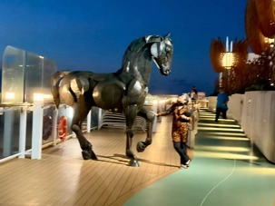 Le majestueux atrium Grande Plaza, le cœur du navire, à plusieurs étages (3-4-5), inspiré des places italiennes donnent des vues panoramiques. Il a été conçu pour être un lieu de rassemblement social et de divertissement animé tout au long de la journée. Tout au cours de notre exploration on a même observé des oeuvres d’art originales. Ne vous surprenez pas d’en avoir remarqué ici et là sur nos photos lors de certains rêcits journaliers.