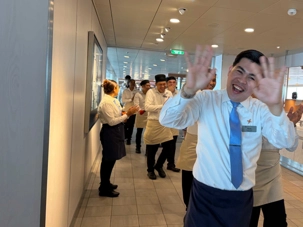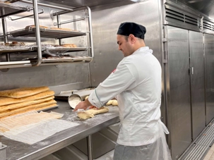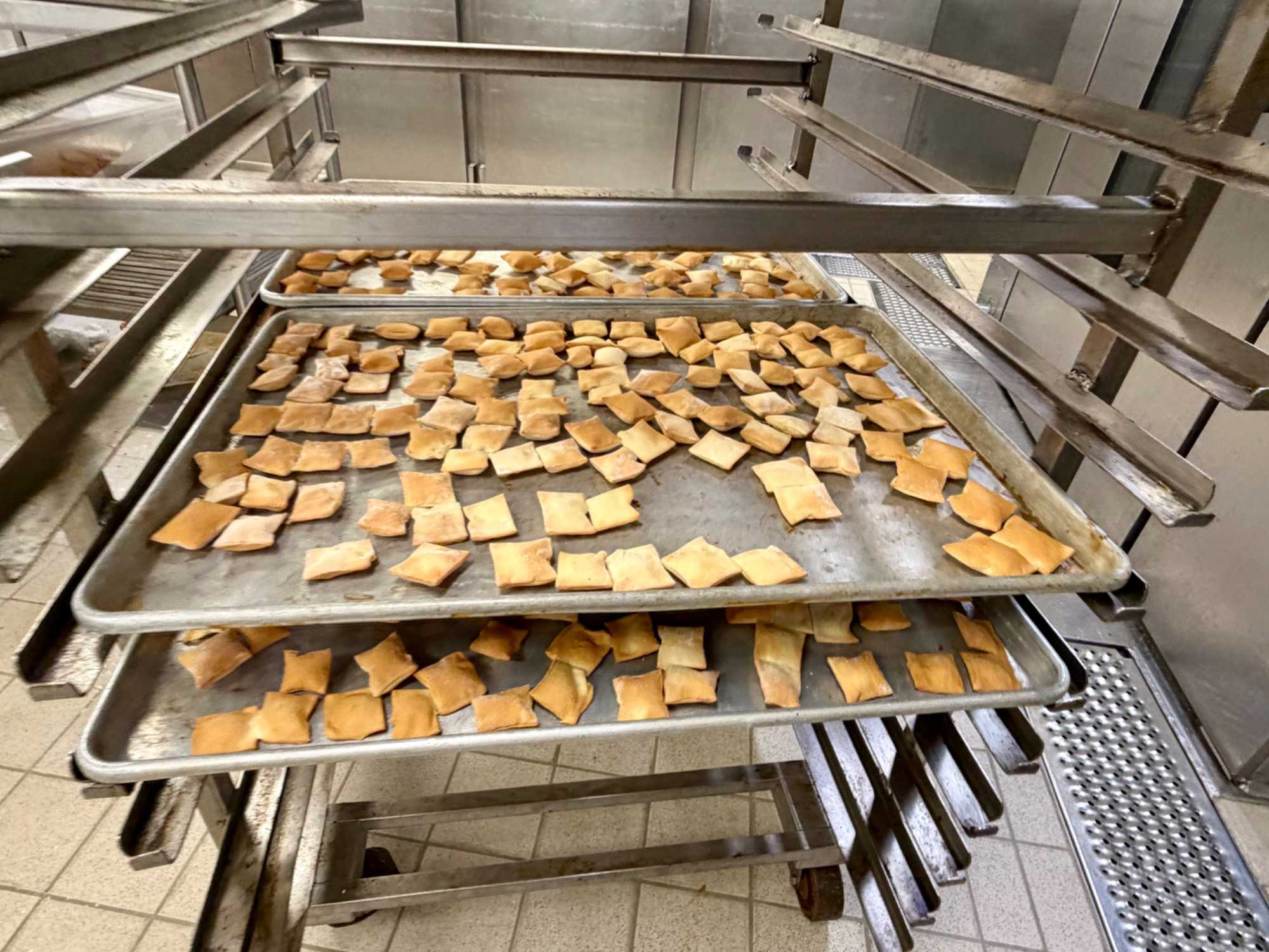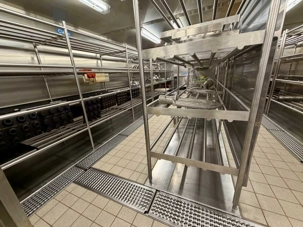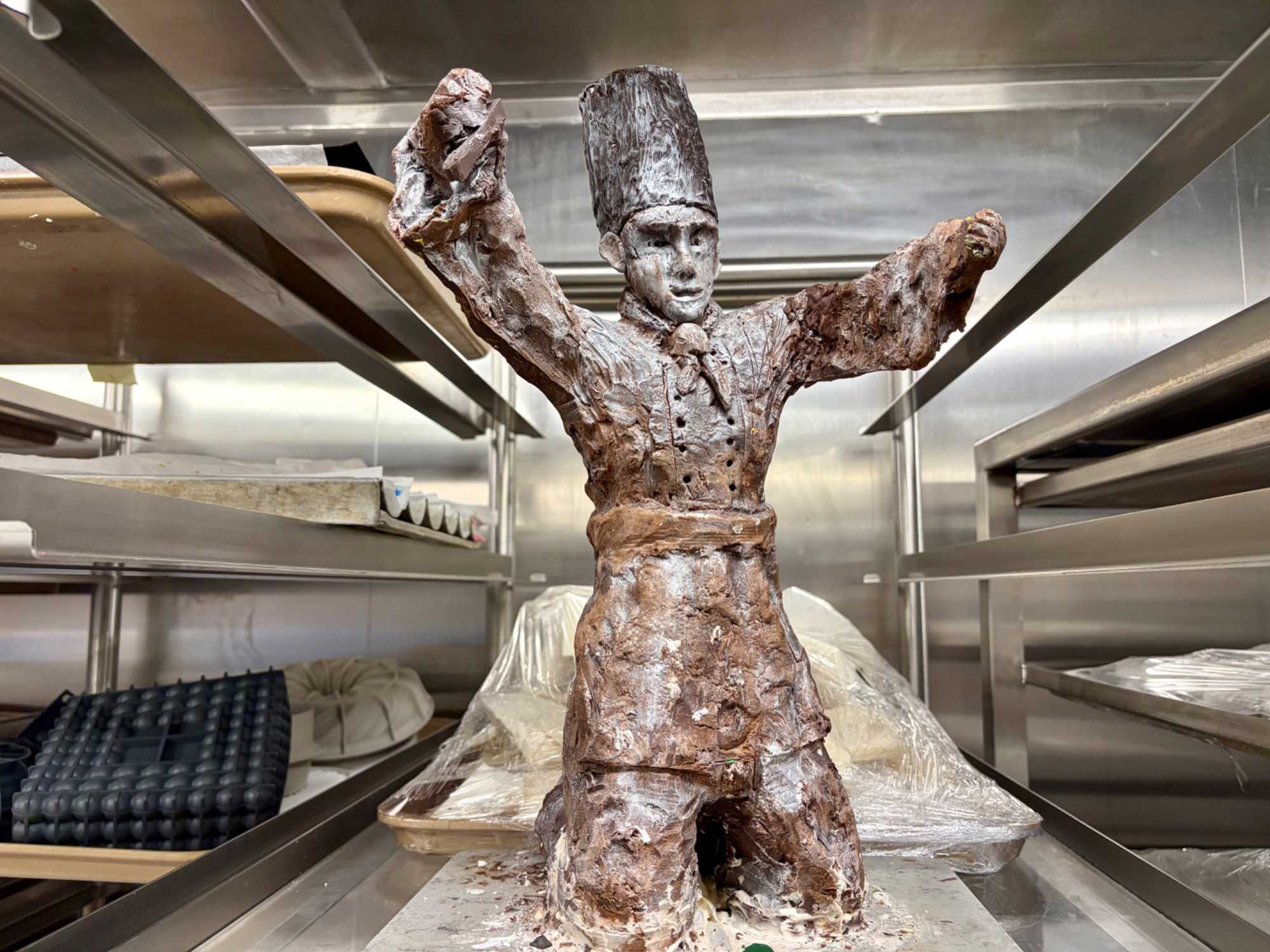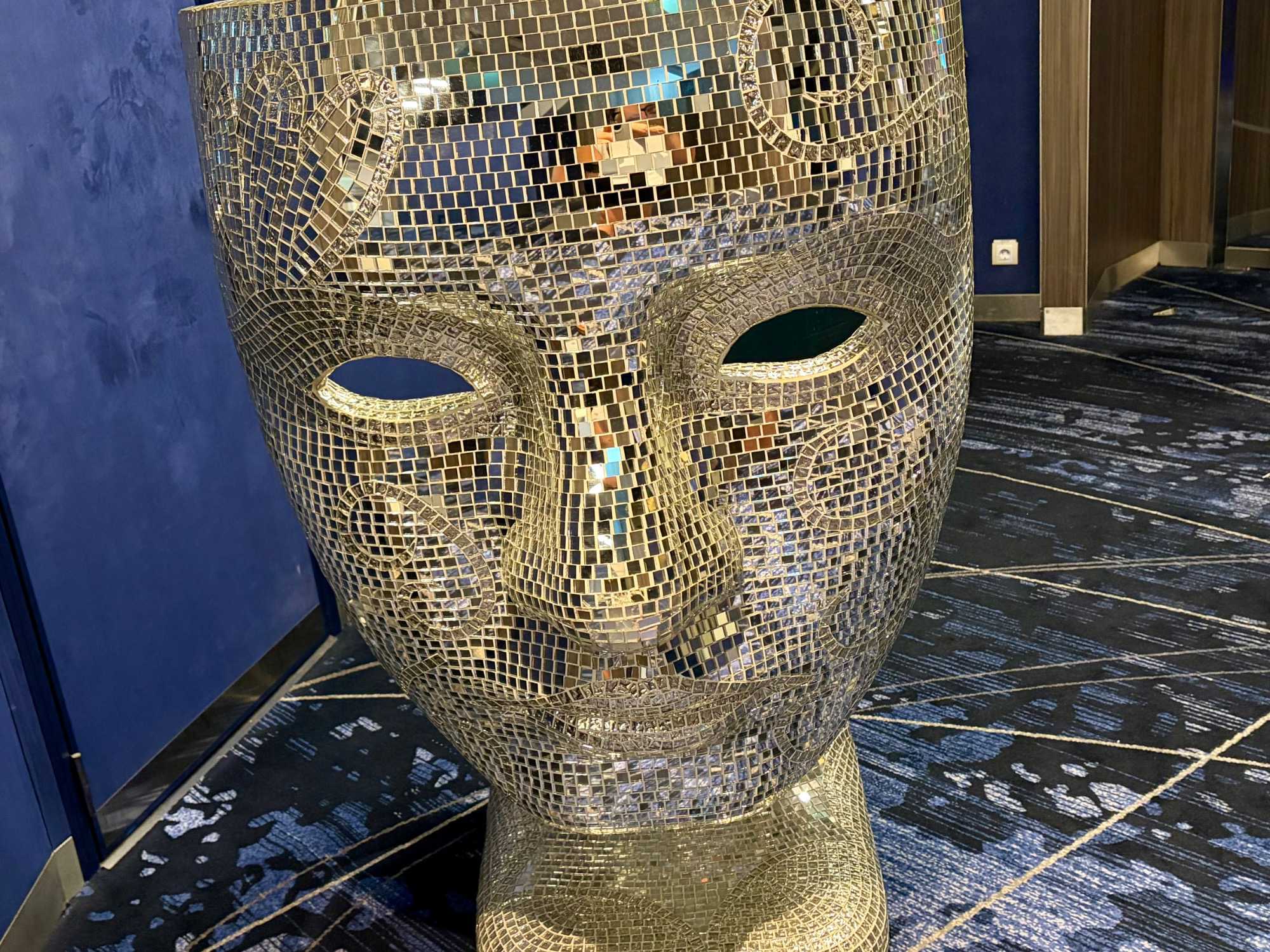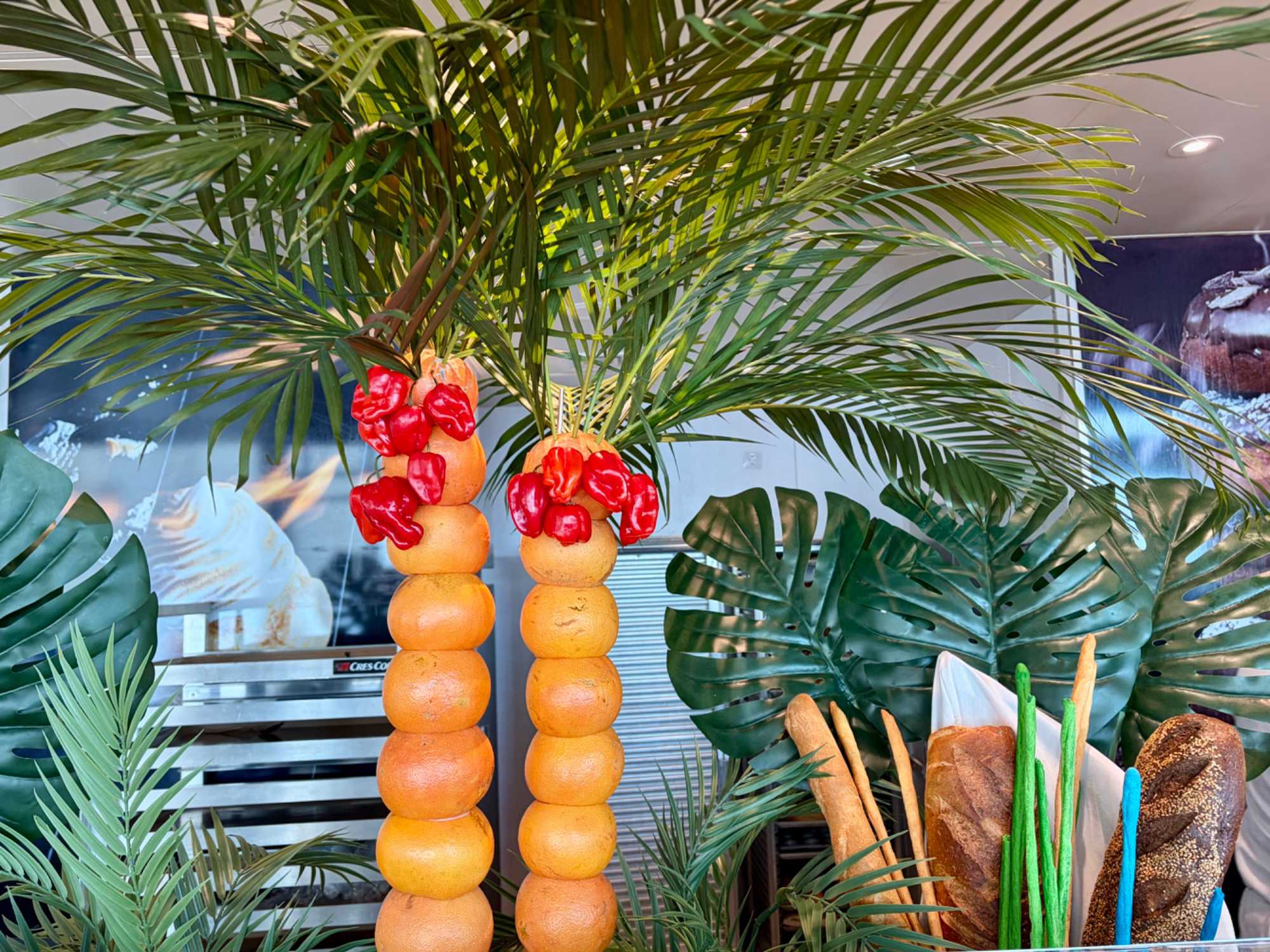 Après le dîner, notre groupe a eu la chance de faire une visite guidée spéciale des coulisses des cuisines et plus spécialement des salles à manger le Cyprus et le Cosmopolitain. Davide, l’assistant chef nous a accueilli en nous mentionnant comment la visite allait se dérouler et nous a fait passer par la porte magique En fait, il y en a deux, car pour éviter la circulation alors que les serveurs transportent d’immenses cabarets, chacune des portes se veut à sens unique, évitant ainsi des incidents. Les paniers pour recueillir la nourriture sont positionnés à l’entrée près des lave-vaisselle. Et il y a des « laveurs de pot » identifiés pour vaisselle et …pots c’est-à-dire les chaudrons. Quel monde comparé à nos petits îlots pour préparer notre pizza et notre pourding chômeur! C’est près de 10 000 repas par jour qui sont préparés dans ces cuisines soit 60 000 assiettes. Impressionnant de voir les quantités phénoménales d'ingrédients, 150 000 oeufs par jour sont utilisés pour tous les mets...y compris les omelettes. Des tonnes et des tonnes de lait par année. Les comptoirs de pâtisseries et de boulangeries étaient particulièrement intéressant de même que les odeurs. Tous les pains, pâtes à pizza, viennoiseries et « pasta » sont fait maison et à bord du navire. Une section munie d’une plaque de marbre est même réservée pour la confection des pâtes plus délicates comme la pâte à choux, la pâte brisée… Il y a des employés pour chacun des quarts de travail car les cuisines roulent 24 heures sur 24. Ici, la fraîcheur est de mise. Je préfère ne pas voir la facture de leur épicerie. Une visite qui nous a permis d'apprécier encore davantage le travail de plus de 250 cuisiniers et 112 aide-cuisiniers qui sont là jour et nuit pour nous. Nous verrons nos assiettes d'un autre oeil ce soir.