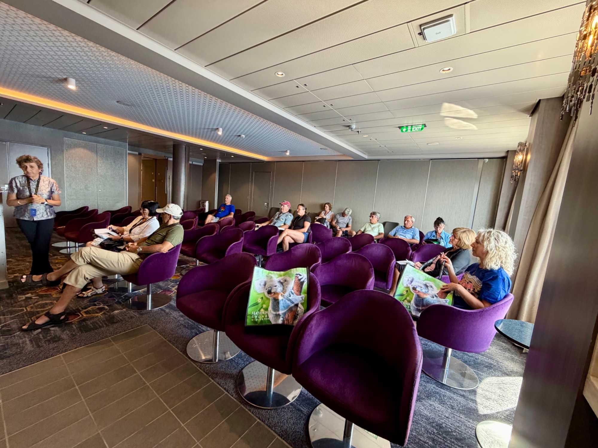 Et c’est encore une fois, bien repus de cet excellent souper que nous n’avons pas tardé à regagner nos cabines, peut-être un peu plus tôt pour laisser nos valises à la porte afin qu’elles soient transférées au terminal du port de Sydney demain.