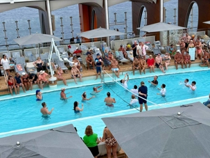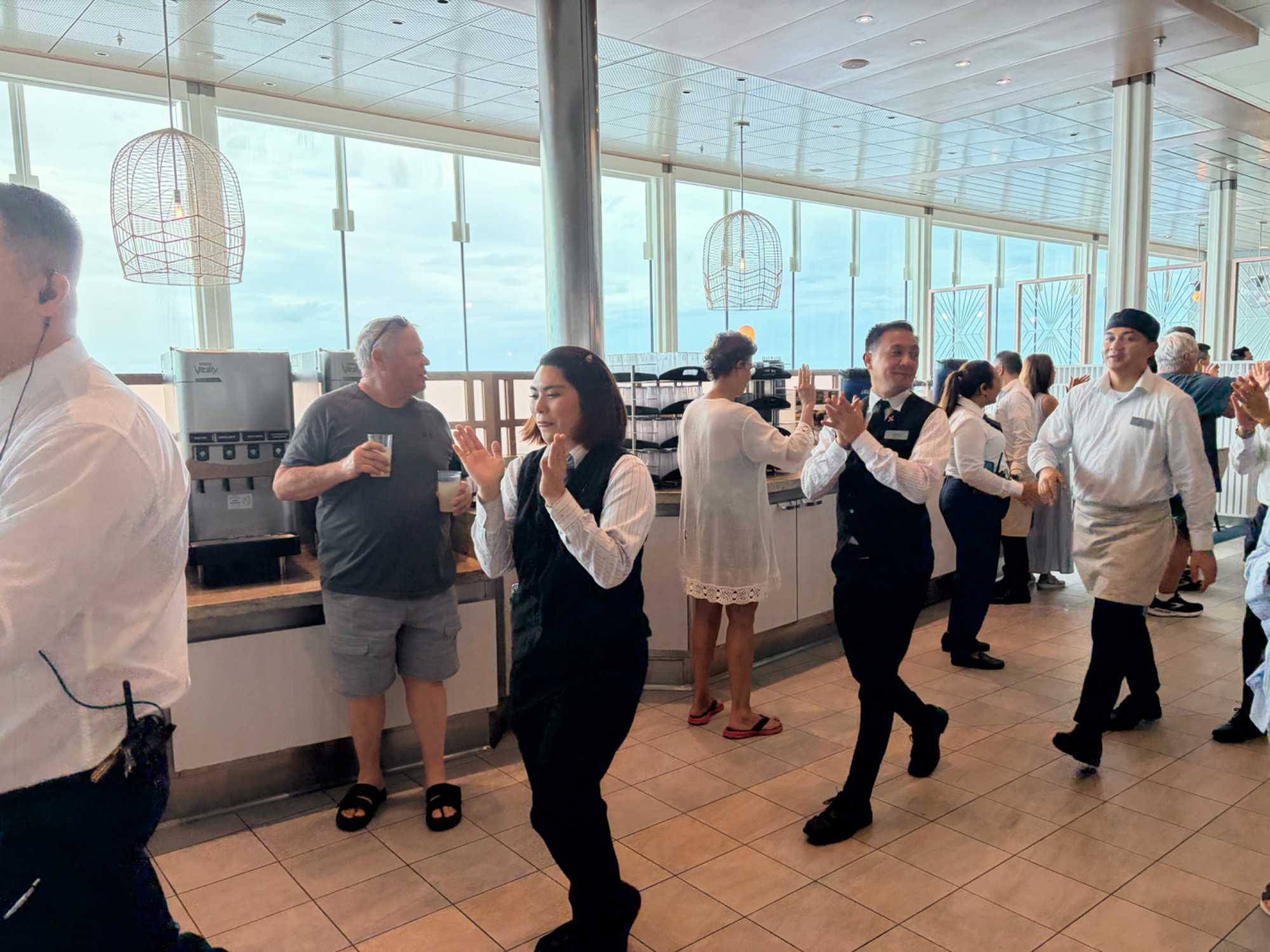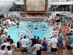 À 11:00 heures, j’ai malheureusement dû interrompre la séance de bronzage pour la traditionnelle rencontre de débarquement afin de mettre à jour les dernières consignes du navire car une sortie de 3000 passagers en même temps, doit être coordonnée et sécuritaire. Comme nos voyageurs avaient plusieurs destinations derrière la cravate, ils ont pu rapidement retourner à leur bain de soleil ou…ont pu amorcer la lourde tâche de refaire les valises, délaissées depuis onze jours et sûrement plus lourdes.