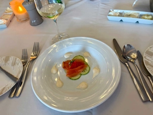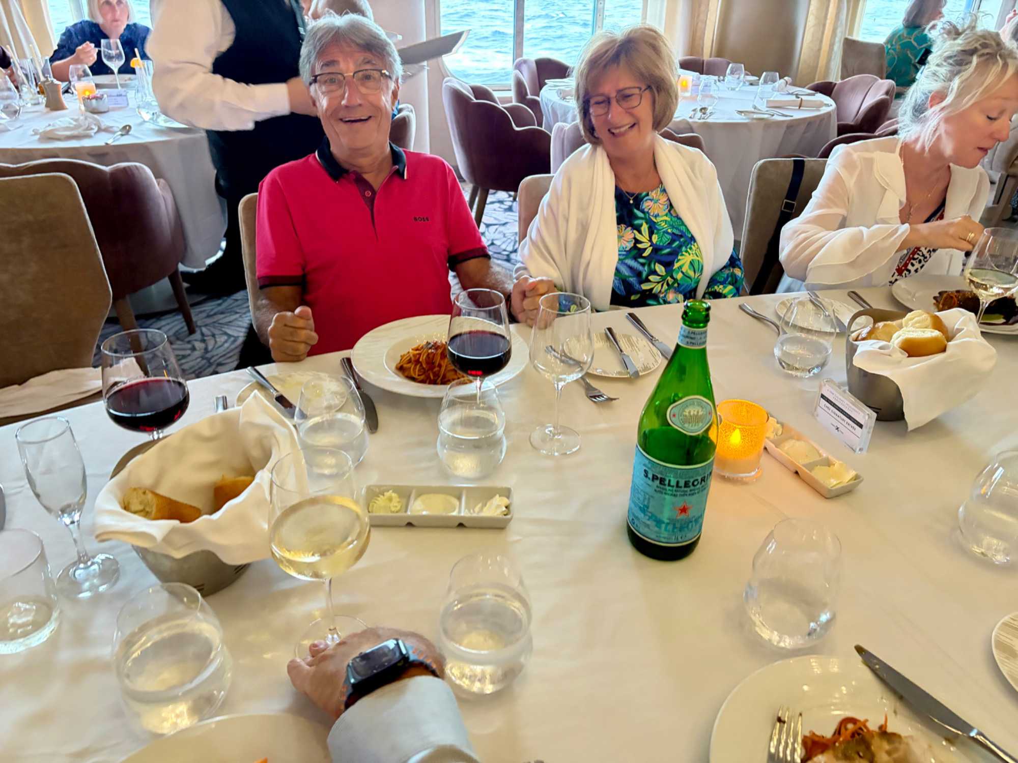 Mais nous n’allions pas manquer une dernière santé pour notre dernier 5 à 7 à l’Eden avec son décor unique, moderne et nature qui a remporté la palme pour notre appéciation du plus beau bar. Le café Il Bacio a été également très apprécié pour son calme et la musique douce en fonds de scène mais tout particulièrement pour leur délicieux …café. Après notre dernier 5 à 7 , suivait notre rendez-vous pour notre souper de groupe à la salle à manger du Cosmopolitain. Que de souvenirs de ce voyage tous frais nous avions à nous conter. Tout le petit groupe à placotter du présent mais aussi...de l'avenir et ... de voyages. De beaux échanges se sont poursuivis et nous avons remercié le personnel de la salle à manger. Merci à vous de nous faire vivre des expériences culinaires sans pareil et de vos services toujours courtois, vous qui travaillez sept jours sur sept pendant sept mois avec le même sourire et surtout en vous adressant à nous avec quelques mots en français. Un énorme merci!