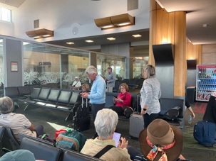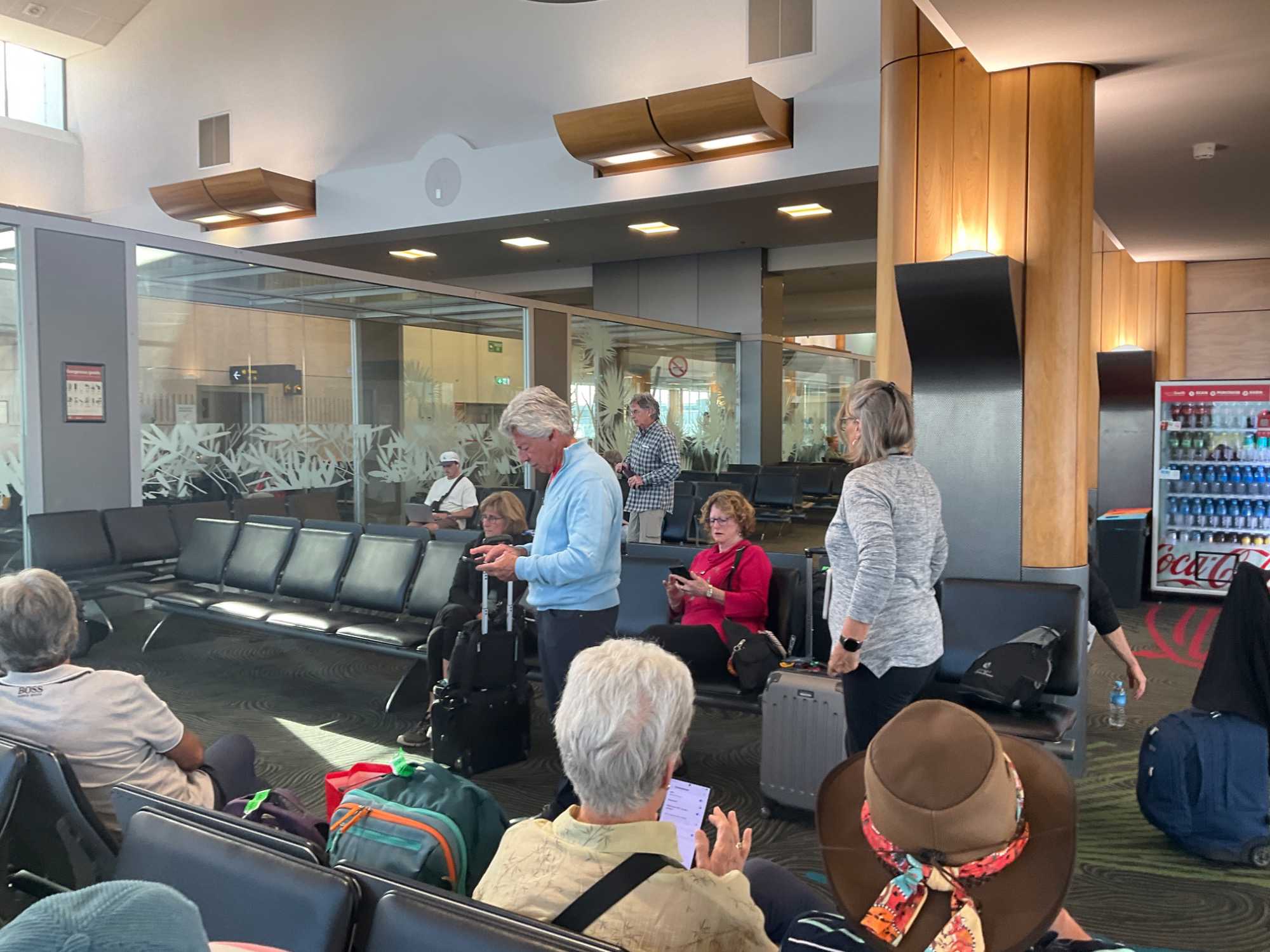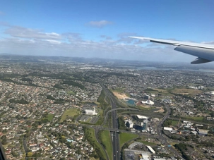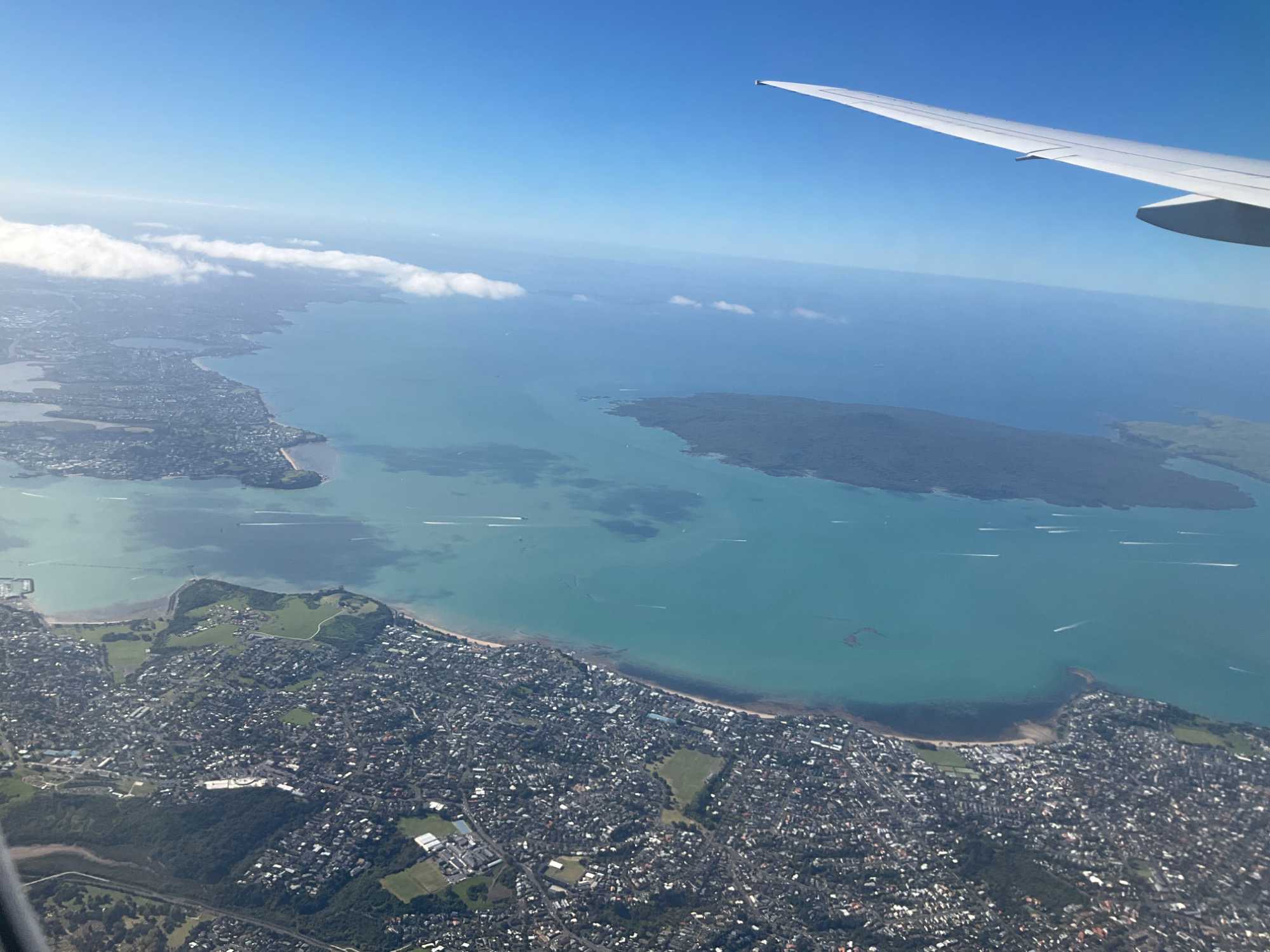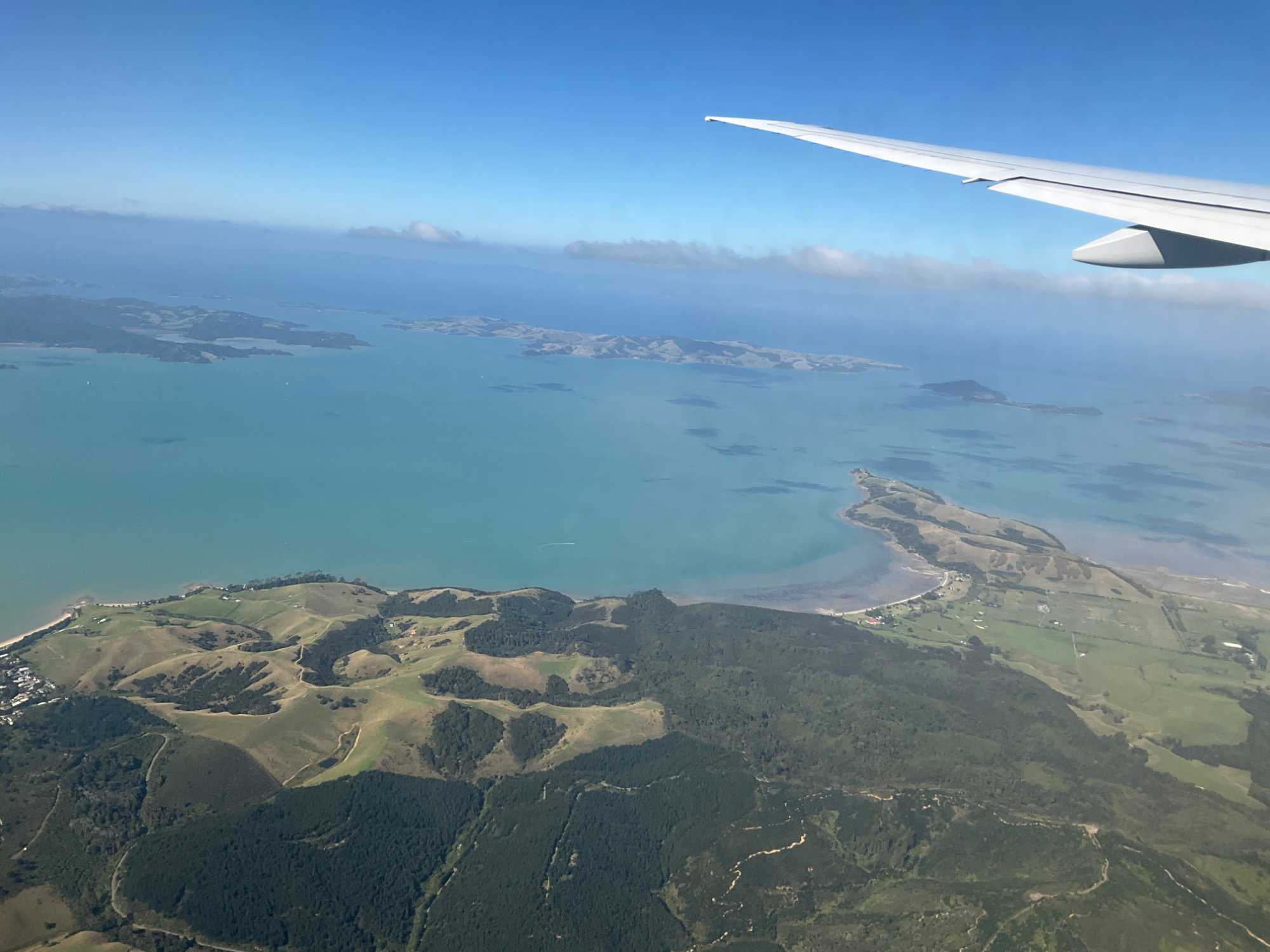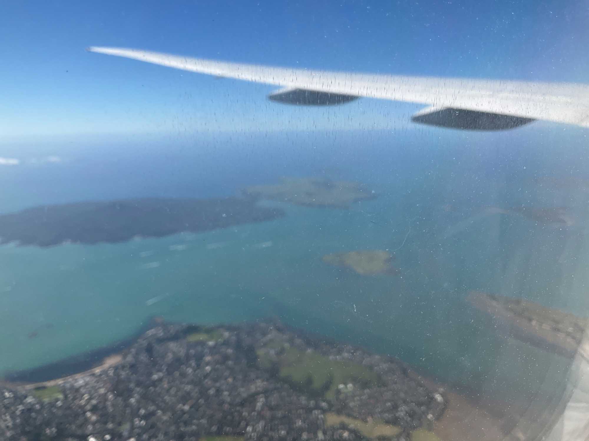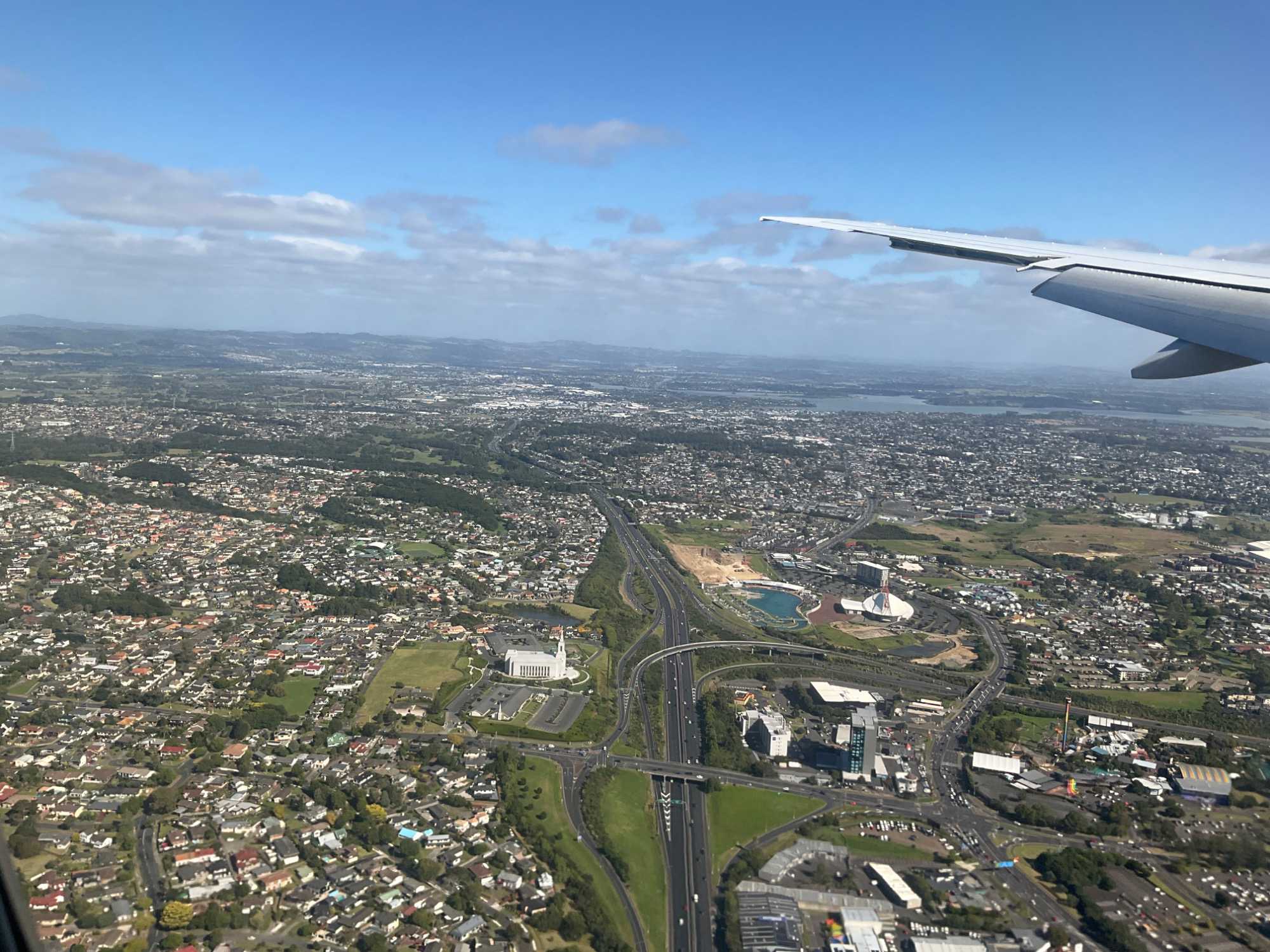 Aujourd’hui on doit quitter notre beau navire le Celebrity Edge. On délaisse la mer pour, dans un premier temps, prendre l’autocar pour se rendre à l’aéroport. Des pieds sur terre, on amorce notre retour dans les airs en deux étapes : un premier vol Sydney Australie vers Auckland Nouvelle-Zélande : 3h05 de vol avec un décalage horaire de deux heures puis, Auckland Nouvelle-Zélande vers Los Angeles : 12h05 de vol avec 2h30 entre les deux.