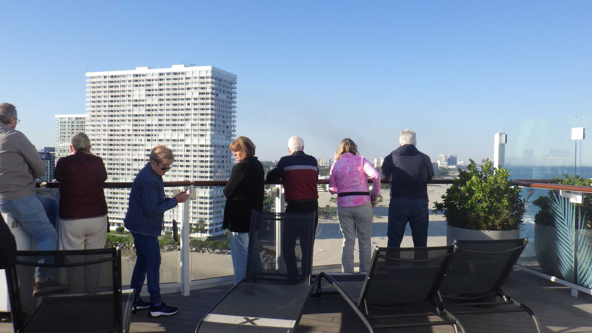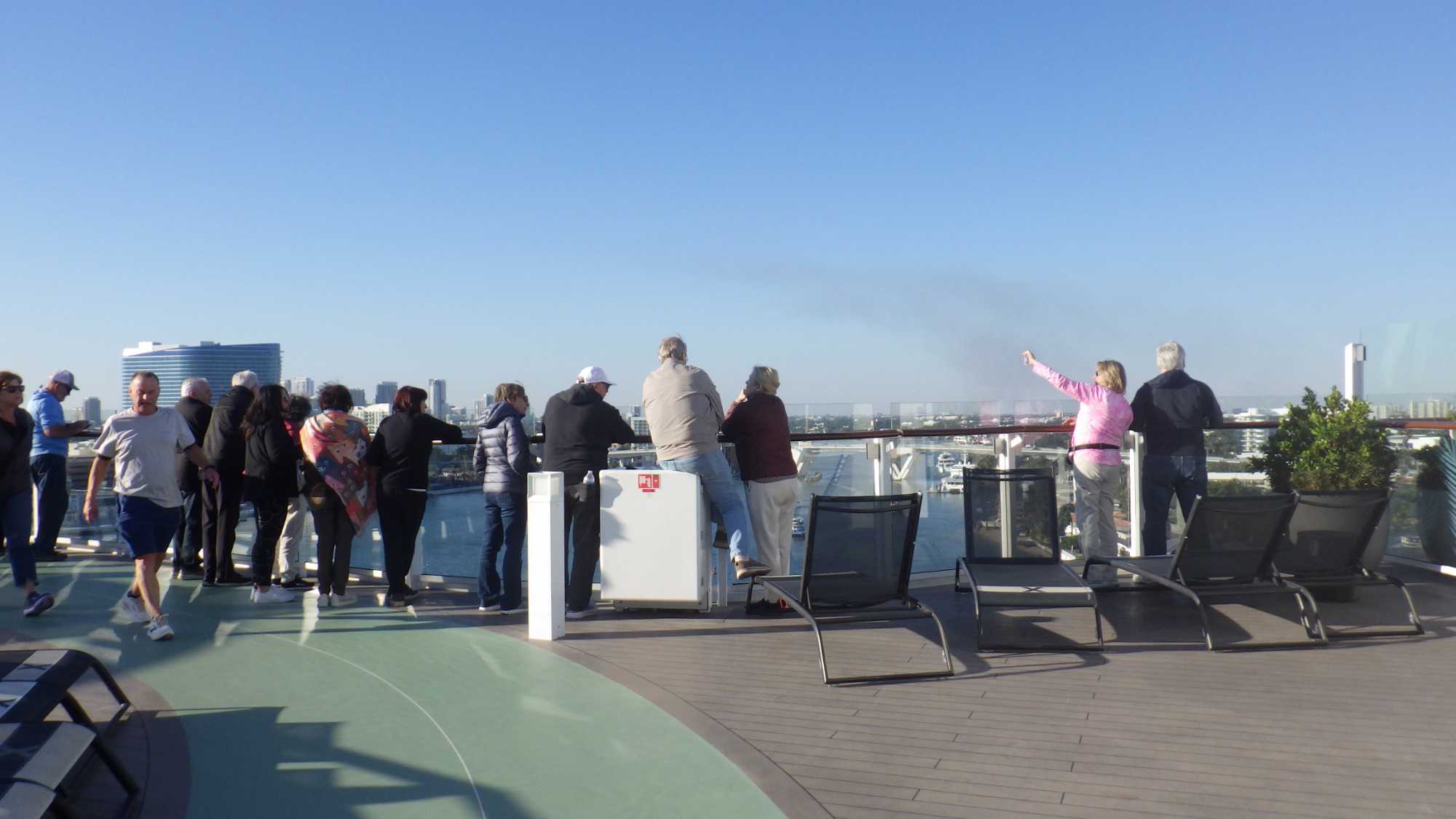 Vers 16 h 15, les membres d’équipage retirent les amarres afin de permettre au paquebot de partir en direction des Caraïbes. Nos voyageurs, installés sur les ponts, apprécient la vue panoramique sur Fort Lauderdale. Les «Oh!» les «Ah!» suivis de nombreux «wow» s’expriment à l’unisson!